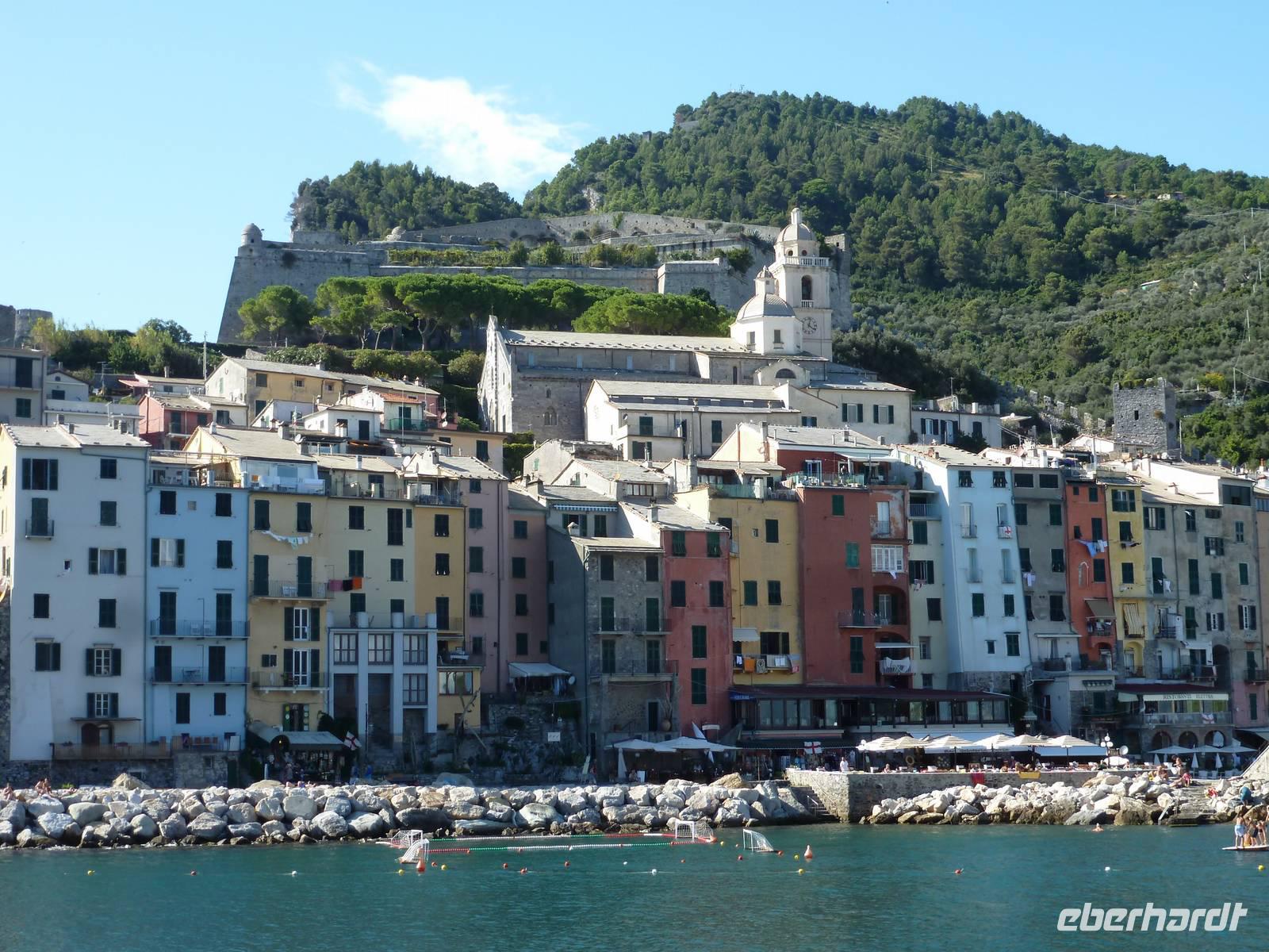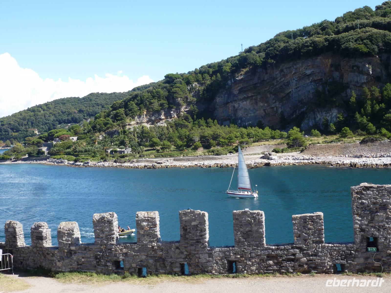 Mächtig thront das Castello „Doria" , welches im 16.Jh. zur vollendeten Burg ausgebaut wurde. Die Ausmaße der Burg sind gewaltig und somit war man immer in der Lage, den Golf von La Spezia gut zu verteidigen. Portovenere wurde in das Verzeichnis der UNESCO Weltschätze aufgenommen. Die Insel Palmira liegt verträumt in der nur 150 m breiten Meerenge und ist auch ein beliebtes Ausflugsziel.