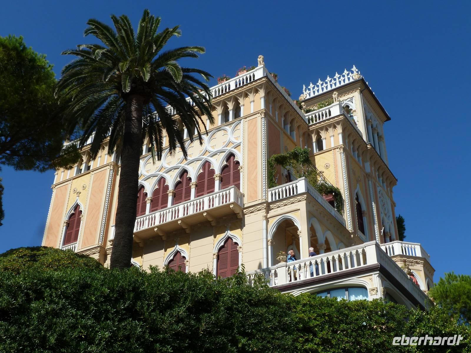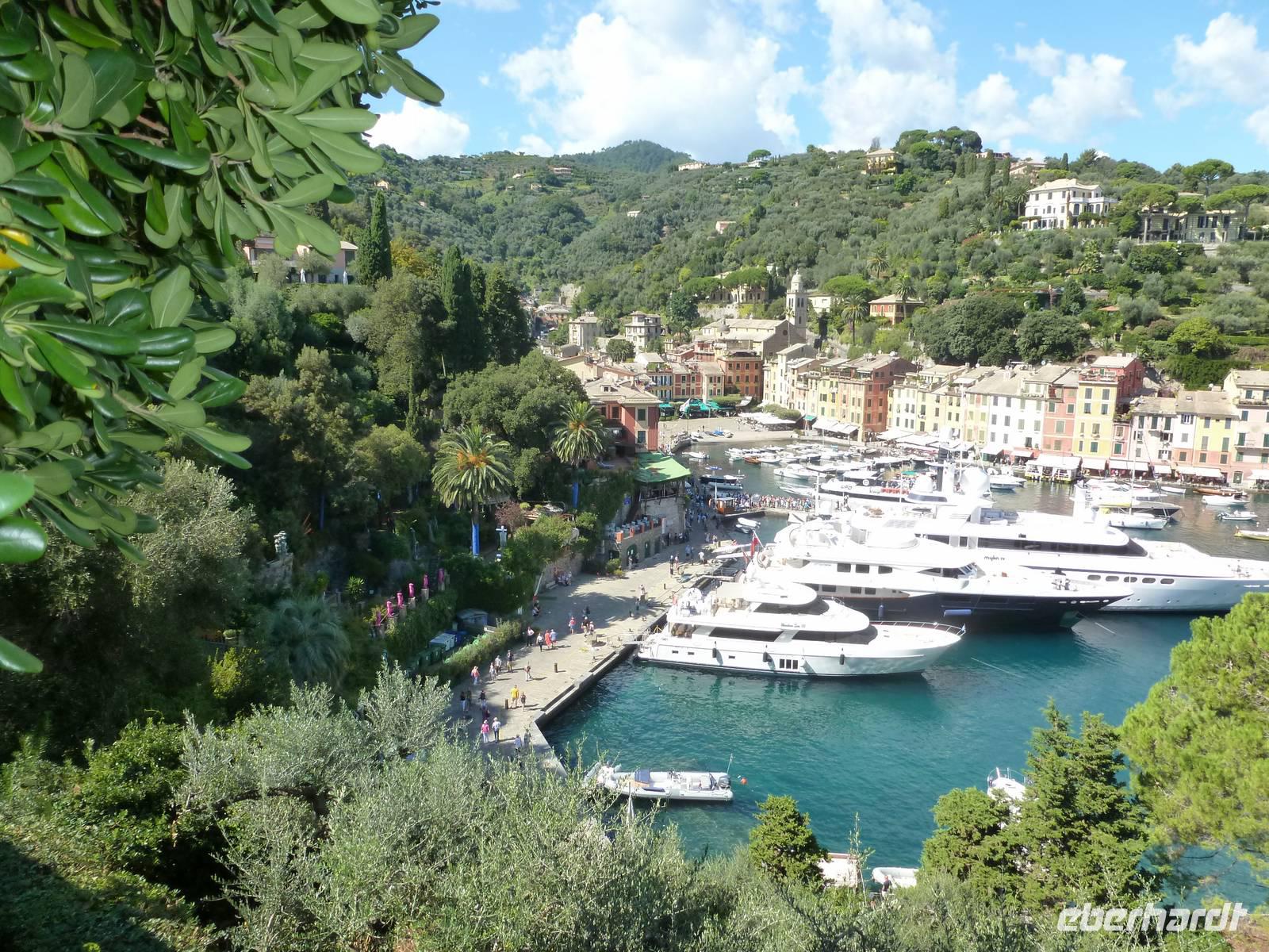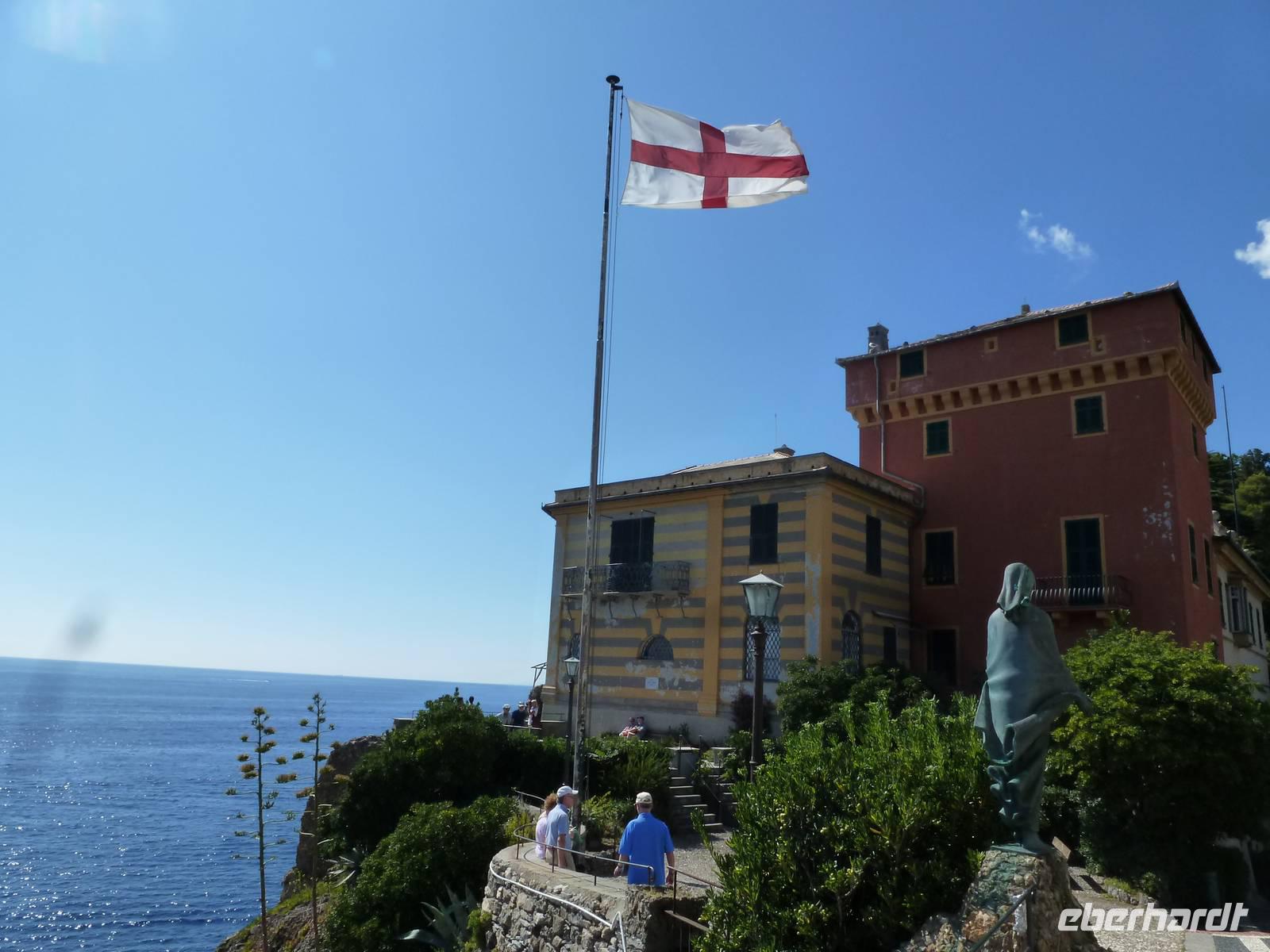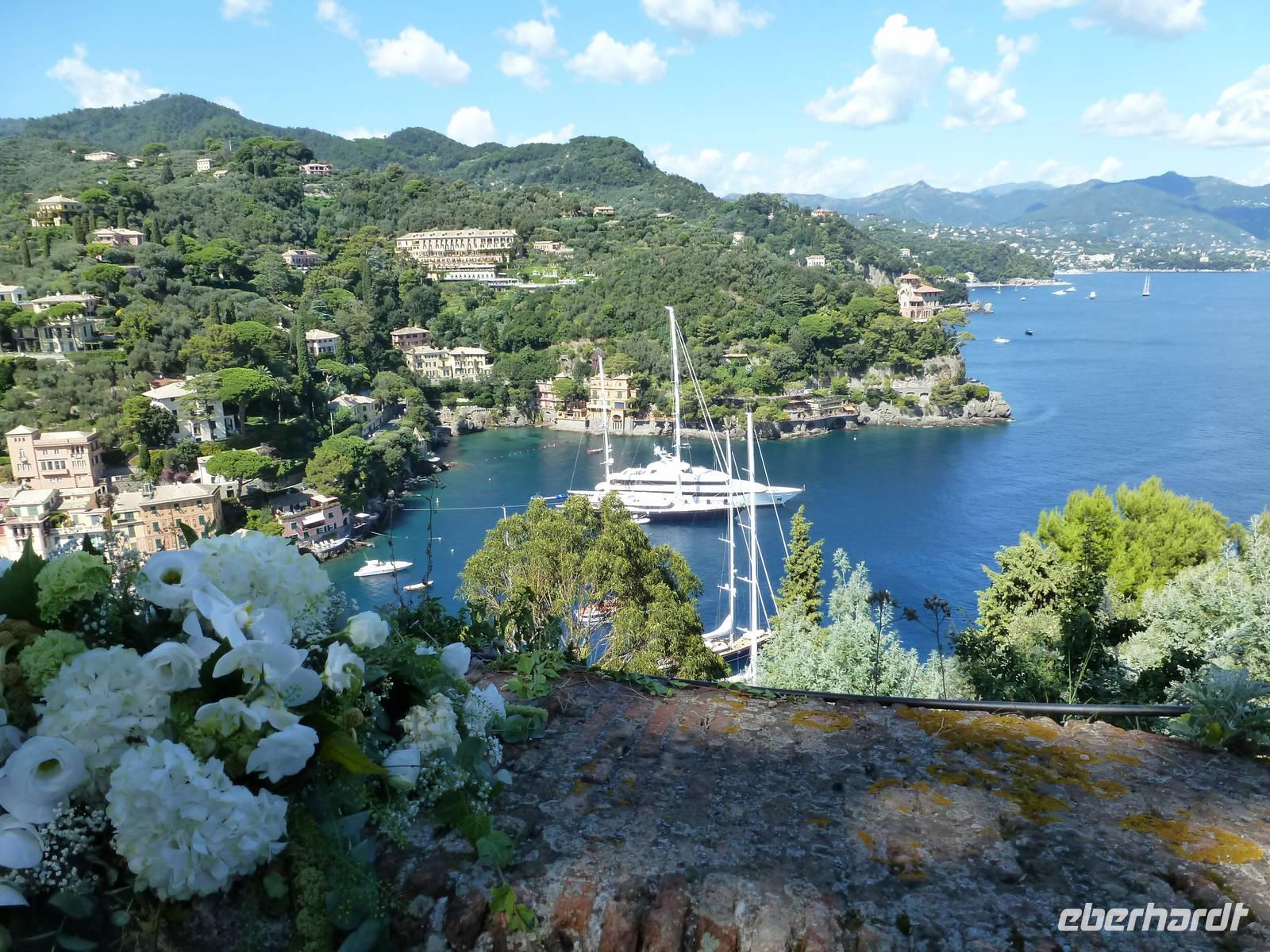 Heute steigen wir in den Zug in Richtung Genua und beginnen unseren Genießertag in Santa Margherita. Geschichtlich ist dieser Ort von großer Bedeutung, denn hier wurde im Hotel „Imperial" der „Vertrag von Rapallo" unterzeichnet. Die Columbusstatue an der Promenade weist uns den Weg und wir spazieren durch einen liebevoll angelegten Park zum Palazzo Durazzo - ein Ensemble von stilvollen Villen mit einem zauberhaften Blick auf den Ort und die weite Bucht. Der prunkvollen Barock - Kirche statten wir einen Besuch ab. Etwas aktiv wollen wir schließlich auch am Genießertag sein und wandern am Meer entlang nach Paraggi. In den Hügeln mit den gepflegten Gärten strahlt eine Villa schöner als die Andere. Zur Cappuccino Pause kehren wir in ein hübsches Strandrestaurant in Paraggi ein und sind somit gestärkt für den weiteren Weg nach Portofino. Weit auf dem Meer erblicken wir zahlreiche Segelboote. Der mondäne Ort liegt uns zu Füßen, die Häuser schmiegen sich eng an die Marina und viele Restaurants laden zum wohl teuersten Kaffee der Reise ein. Im Hafen von Portofino liegen neben zahlreichen kleinen Booten und Yachten auch kleine Fischerboote. Wir wollen hoch hinaus und spazieren durch die engen Gassen der Stadt zur kleinen Kirche und schließlich zum Castello Brown. Allein schon der Ausblick auf die gesamte Hafenbucht von Portofino ist ein Erlebnis. Die Ausstellung im Castello Braun zeigt berühmte Persönlichkeiten von Film, TV und Politik, die Anfang des 19.Jh. zu Gast in Portofino waren.