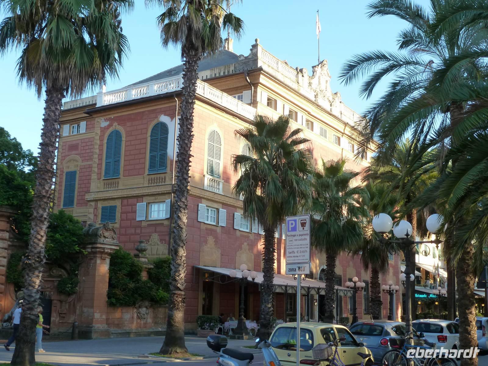 Mit dem Zug fahren wir am Nachmittag zurück nach Sestri Levante. Anschließend unternehmen wir einen Stadtrundgang. Die Fußgängerzone ist gesäumt von prächtigen Fassaden. Am Strand rauschen die Wellen in der „Stillen Bucht". Der kleine Anstieg zur Kirche „Chiesa die Cappuccini" aus dem XVII Jh. lohnt auf jedem Fall, da die Baia del Silenzio („Stille Bucht" ) komplett zu bewundern ist. In der Baia delle Favole („Märchenbucht") sehen wir ein altes Segelschiff am Fischerstrand, mit dem Anfang des 19. Jh. der abgebaute Schiefer per Schiff weiter transportiert wurde. Damals war der Schiefer ein wichtiges Exportgut. Heute ist es der Tourismus, der die Region belebt. Die prunkvollen Hotels „Villa Balbi" und das „Hotel Castello" machen uns neugierig auf einen zweiten Blick. Der Rest des Tages steht zur freien Verfügung.