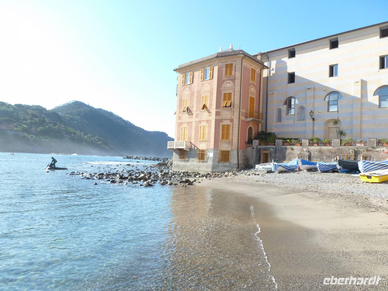 Zurück im Ort fahren wir per Bus nach Santa Margherita und von dort mit dem Zug nach Rapallo. Wir passieren die herrliche breite Strandpromenade von Rapallo und unser Weg führt wie immer zum Bahnhof. Mit Sonnenstrahlen und blauem Himmel neigt sich ein herrlicher Genießertag dem Ende entgegen.