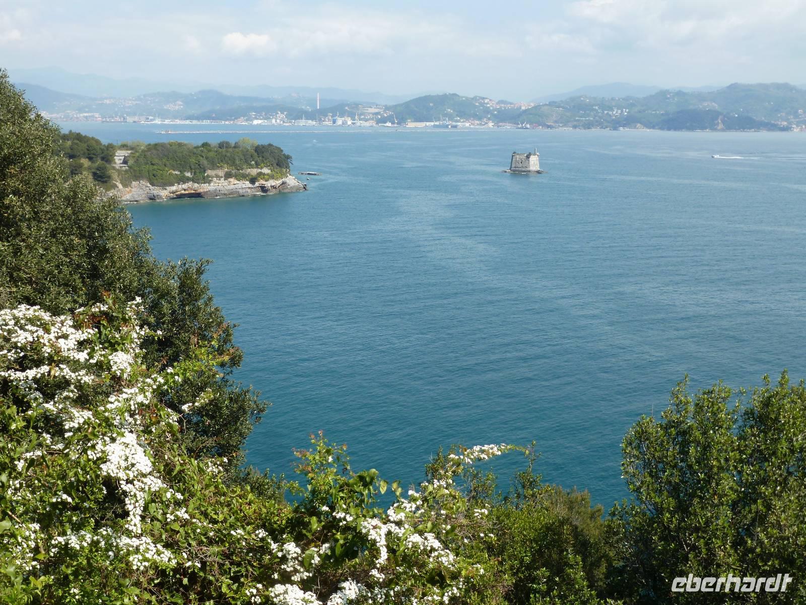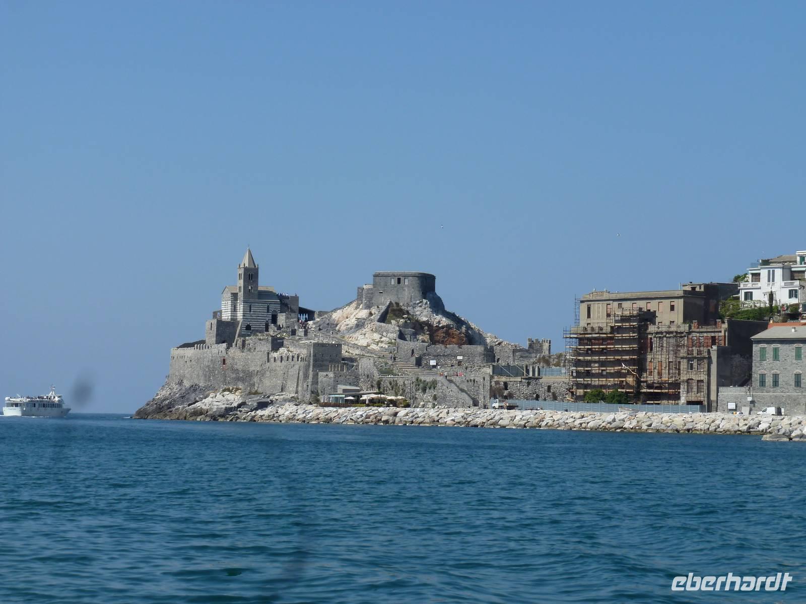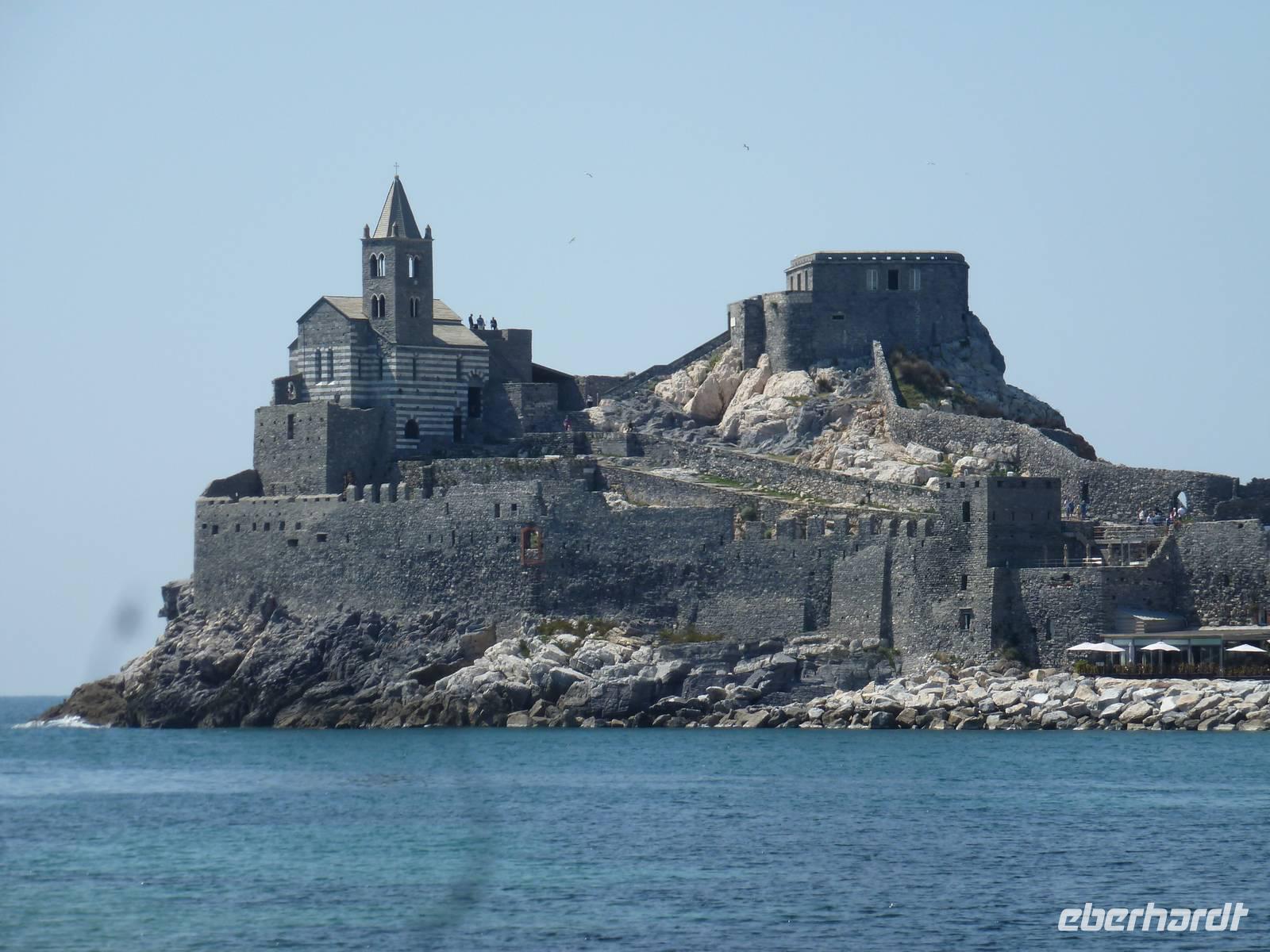 Mächtig thront das Castello „Doria" , welches im 16.Jh. zur vollendeten Burg ausgebaut wurde. Die Ausmaße der Burg sind gewaltig und somit war man immer in der Lage, den Golf von La Spezia gut zu verteidigen. Portovenere wurde in das Verzeichnis der UNESCO Weltschätze aufgenommen. Die Insel Palmira liegt verträumt in der nur 150 m breiten Meerenge und ist auch ein beliebtes Ausflugsziel. Wir umrundeten die Insel in ca. 2 Stunden. Die einstige militärische Funktion wird schnell deutlich, da bis in den 90iger Jahren diese Insel militärisches Sperrgebiet war.