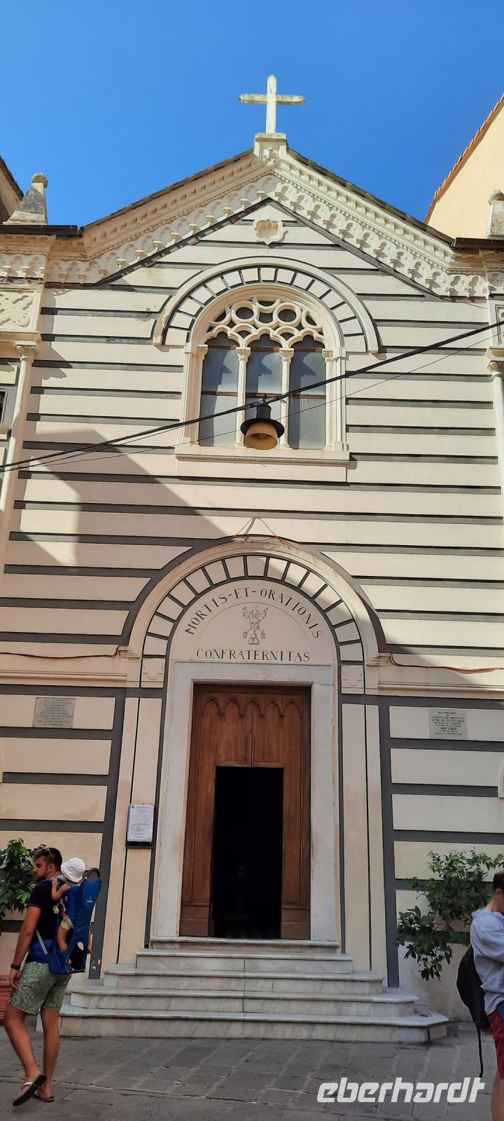 In Levanto (Einwohner 5.600) unternahmen wir erst einen Rundgang und durchqueren die „Via Garibaldi". Vorbei an dem alten Marktplatz erreichten wir die schöne Kirche „S. Andrea" XIII aus dem 13.Jh. Elegant sah die Kirche von außen und innen aus, mit dem Streifenmuster von weißem Marmor und grünem Serpentin, ein gutes Beispiel der ligurischen Gotik. Eine elegante Rosette aus weißem Marmor schmückt das Eingangsportal. Dort begann schließlich der Wanderweg nach Monterosso. Über Stufen und einen gut ausgebauten Pfad bahnten wir uns den Weg nach oben. Die Vegetation ist äußerst abwechslungsreich: Baumheide, Erdbeerbäume, Feigenbäume, Lorbeer, Terpentinpistazie und vieles mehr entdecken wir. Der weitere Weg führt durch alten Steineichenwald bis wir schließlich hoch über dem Meer entlang liefen mit einem wunderbaren Blick auf die Küste! Die Tour war anstrengend bis zum höchsten Punkt: Punta Mesco 319 m. Die Belohnung war der fantastische Blick auf Monterosso und die weiteren Dörfchen der Cinque Terre. Unsere Picknick Pause an der Ruine Sant'Antonio tat allen gut. Der Abstieg war beschwerlich, da die Stufen teilweise hoch und uneben waren. Durch die herrliche Vegetation und die Ausblicke fiel uns der Abstieg nicht so schwer. In Monterosso hatten wir Zeit für unseren Mittagsimbiss, den wir direkt am Strand genießen konnten.