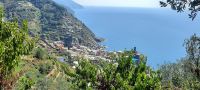 Von Sestri Levante aus fuhren wir mit dem Zug nach Vernazza - hier startete unsere Tour nach Corniglia. (Einwohner 245). Durch akkurat angelegte Weinstöcke schlängelte sich der Weg stetig bergauf mit Blick auf das azurblaue Meer. Es sind alte Pass Wege, die die Dörfchen miteinander verbinden. Die Aussichtspunkte entlang des Weges waren fantastisch. Nach ca. 1 Std. erfreuten wir uns am Anblick von den vielen ineinander geschachtelten Häuser und die Anstrengung war wie verflogen. Wir durchquerten einen weiteren Anstieg bis ganz malerisch die farbenfrohen Häuser auf dem kleinen Plateau zu erkennen waren. Auf der Aussichtsterrasse von Corniglia schweifte unser Blick bis Monterosso in westlicher und nach Manarola in östliche Richtung. Ein wenig schlenderten wir durch die Gassen von Corniglia, die wahrhaftig ihren alten Charme bewahrt haben. Die 234 Stufen abwärts zum Bahnhof meisterten wir in Windeseile, denn wir wollten den nächsten Zug nach Manarola nicht verpassen. Nur 2 Minuten dauerte die Fahrt nach Manarola (Einwohner 210) und wir erreichten das vierte Dörfchen der Cinque Terre. Am Bahnhof angekommen, kreuzten auch viele Touristen unseren Weg. Erst an unserem Picknick Platz, oberhalb der Bucht mit Blick auf Manarola, konnten wir im Schatten schnell wieder unsere Kräfte sammeln und dem lebhaften Trubel aus dem Weg gehen. Ein Platz zum Genießen und fast für uns Alleine, da schmeckte unser Picknick umso besser! Die Felsen direkt im Hafen von Manarola waren für Jugendliche das Highlight, die einen guten Sprung von ca. 3 - 4 Meter Höhe ins Meer riskierten. Der Applaus war ihnen gewiss... Im Anschluss fuhren wir nach Sestri Levante zurück, um den Tag in Ruhe ausklingen zu lassen.