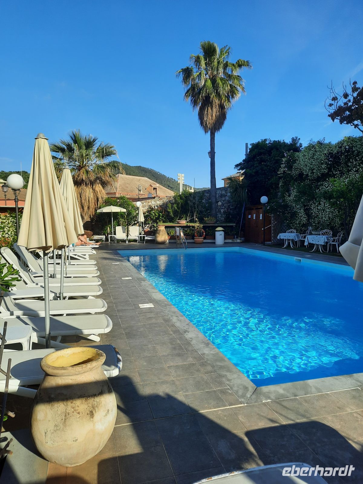 Mit LH starteten wir in Dresden und landeten pünktlich in München. Dort sammelte sich unsere Gruppe und gemeinsam flogen wir nach Genua. Italien begrüßt uns mit Sonnenschein und so streiften unsere Blicke die Küste von Portofino, bevor der Landeanflug auf den Airport Genua begann. Auf der Fahrt nach Sestri Levante konnten wir schon einen ersten Eindruck von der malerischen Landschaft bekommen: die Städte und Dörfer Liguriens machen Lust auf mehr... Wie sich die Dörfchen in die Landschaft einpassen und harmonisch verschmelzen, das wollten wir uns genauer ansehen. Unser Hotel „Due Mari" lag direkt an der Stillen Bucht. Den Nachmittag nutzten wir für einen Spaziergang an der Strandpromenade und ein erstes italienisches Eis wurde probiert. Die Fußgängerzone war gesäumt von prächtigen Palästen, z.B. die „Villa Balbi", das Rathaus auf dem Platz „Matteotti" und das Gebäude von Don Luigi (Restaurant), um nur einige zu nennen.
