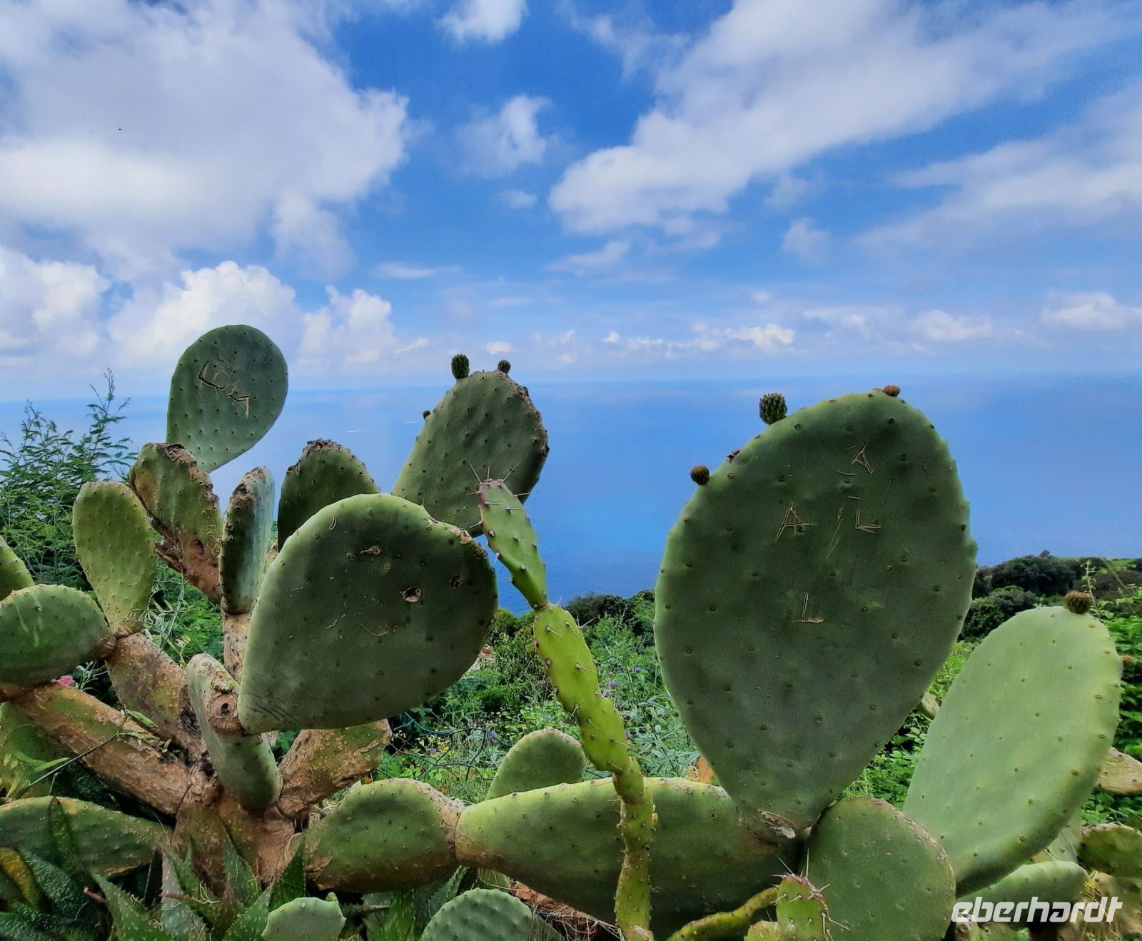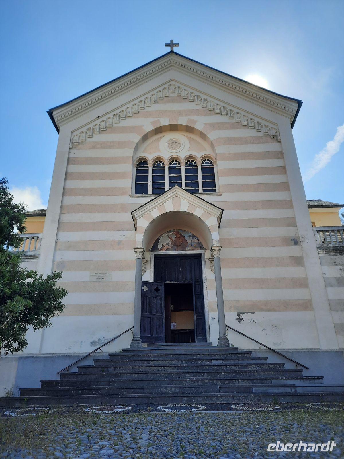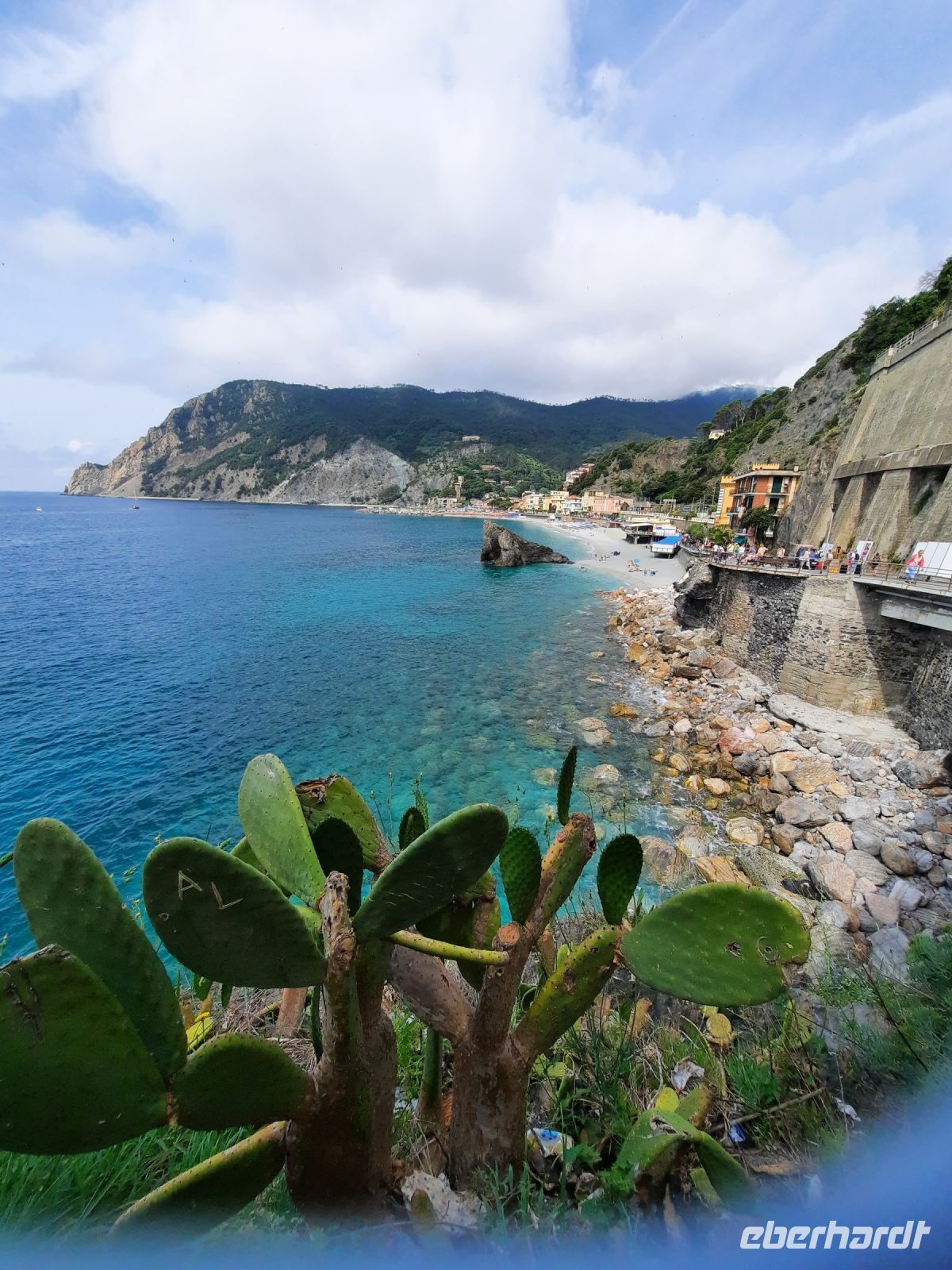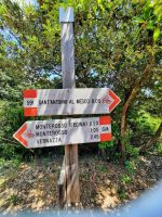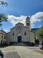 In Levanto (Einwohner 5.600) unternahmen wir erst einen Rundgang und durchqueren die „Via Garibaldi". Vorbei an dem alten Marktplatz erreichten wir die schöne Kirche „S. Andrea" XIII aus dem 13.Jh. Elegant sah die Kirche von außen und innen aus, mit dem Streifenmuster von weißem Marmor und grünem Serpentin, ein gutes Beispiel der ligurischen Gotik. Eine elegante Rosette aus weißem Marmor schmückt das Eingangsportal. Dort begann unser Wanderweg stetig bergauf nach Monterosso. Über Stufen und einen gut ausgebauten Pfad bahnten wir uns den Weg nach oben. Die Vegetation ist äußerst abwechslungsreich: Baumheide, Erdbeerbäume, Feigenbäume, Lorbeer, Terpentinpistazie und vieles mehr entdecken wir. Der weitere Weg führt durch alten Steineichenwald bis wir schließlich hoch über dem Meer entlang liefen mit einem wunderbaren Blick auf die Küste! Die Tour war anstrengend bis zum höchsten Punkt: Punta Mesco 319 m. Die Belohnung war der fantastische Blick auf Monterosso und die weiteren Dörfchen der Cinque Terre. Unsere Picknick Pause an der Ruine Sant'Antonio tat allen gut. Beim Abstieg, da die Stufen teilweise hoch und uneben waren, mussten wir schon sehr aufpassen. Durch die herrliche Vegetation und die Ausblicke fiel uns der Abstieg nicht so schwer. In Monterosso hatten wir Zeit für unseren Mittagsimbiss, den wir direkt am Strand genießen konnten.
