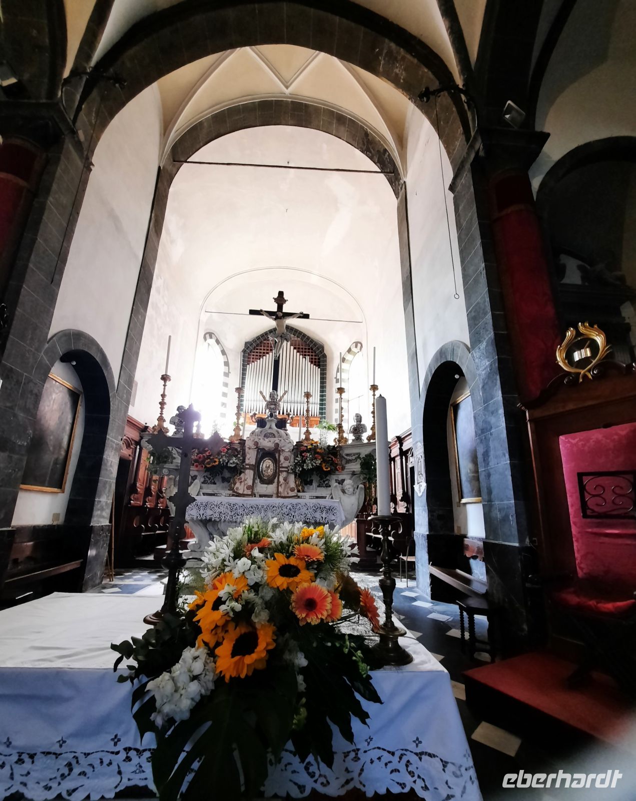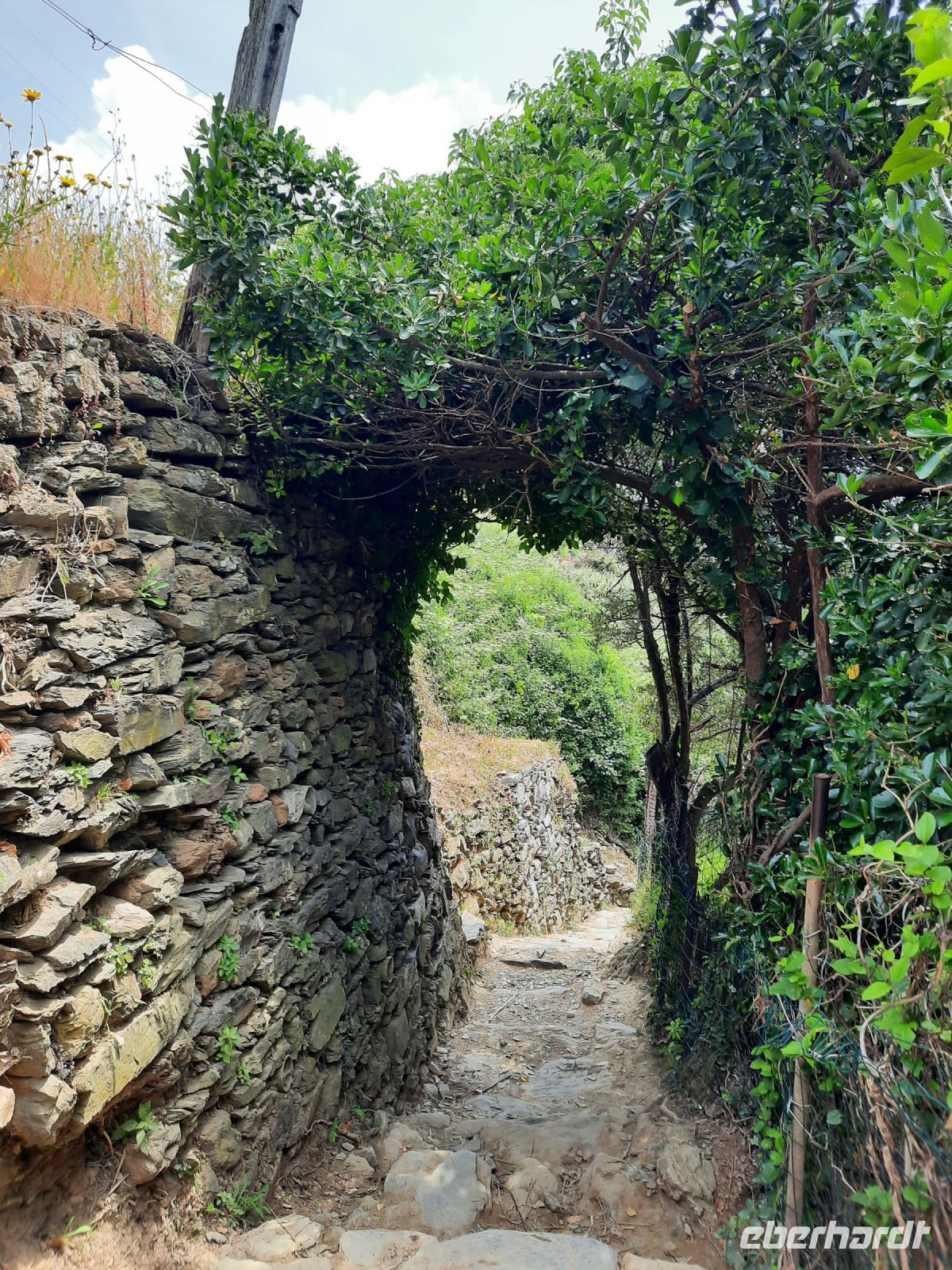 Von Sestri Levante fuhren wir mit dem Zug nach Monterosso (Einwohner 1.500) - hier startet unsere Tour nach Vernazza (Einwohner 1.080). Nach einem kurzen Bummel durch die Altstadt schlängelte sich der Weg stetig bergauf mit Blick auf das Meer. Es sind alte Pass Wege, die die Dörfchen miteinander verbinden. Die Aussichtspunkte entlang des Weges waren fantastisch. Wir durchquerten einen weiteren Anstieg bis ganz malerisch die farbenfrohen Häuser in der Bucht zu erkennen waren. Der Abstieg durch die Häuserfront von Vernazza, mit seinen unzählig schmalen Gässchen, bereitete uns keine Schwierigkeiten. So facettenreich wie die Piazza mit den Fischerbooten auch war, das Gewimmel von Menschen bot kaum ein Durchkommen. Das Castello thronte über dem Städtchen - ein Anblick wie aus einem Bilderbuch entsprungen. Wir bummelten ein wenig durch Vernazza, der alte Charme war deutlich zu spüren. Beim Rundgang durch das Dörfchen waren die unzähligen Weinstöcke nicht zu übersehen, die sich sanft ins Tal hinab schlängelten. In mühevoller Handarbeit wurden die Trockenmauern erhalten, die der Erosion jahraus - jahrein standhalten müssen. Im Anschluss fuhren wir nach Sestri Levante zurück, aber unsere Gedanken waren immer noch in schmalen Gassen von Vernazza.