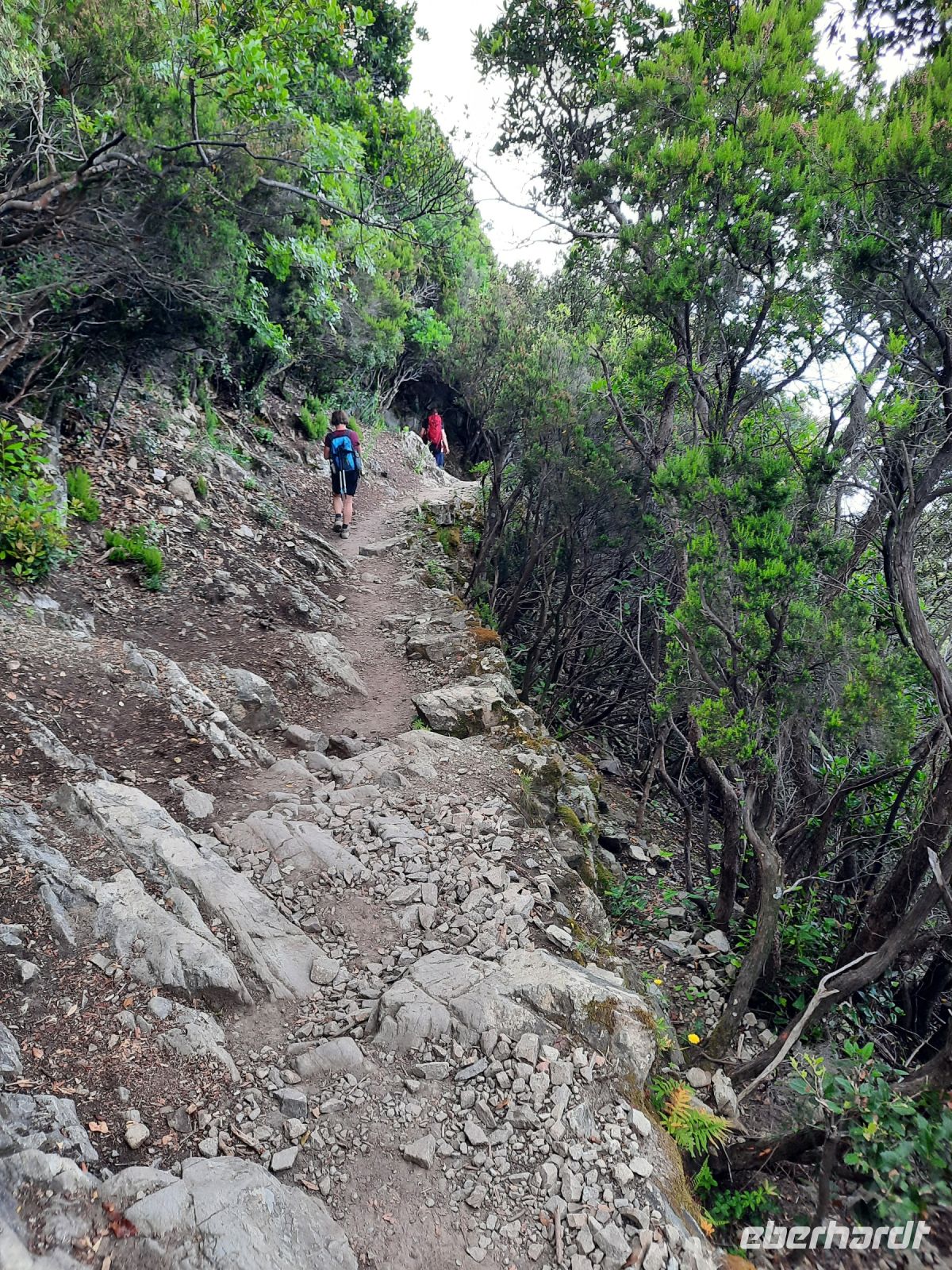 Mit dem Zug ging es nach La Spezia und weiter per Fähre nach Portovenere. Allein schon die Hafeneinfahrt von Portovenere war überwältigend. In römischen Zeiten „Portus veneris" - Hafen der Venus - genannt, wurde der Ort ab 1113 als genuesische Hafenfestung ausgebaut. Auf einem Felsvorsprung erhebt sich die Kirche San Pietro, die auf den Resten eines römischen Venustempels errichtet wurde (4.-5.Jh.). Mächtig thront das Castello „Doria", welches im 16.Jh. zur vollendeten Burg ausgebaut wurde. Die Ausmaße der Burg sind gewaltig und somit war man immer in der Lage, den Golf von La Spezia gut zu verteidigen. Portovenere wurde in das Verzeichnis der UNESCO Weltschätze aufgenommen. Die Insel Palmaria liegt verträumt in der nur 150 m breiten Meerenge und ist auch ein beliebtes Ausflugsziel. Mit dem Wassertaxi erreichten wir in wenigen Minuten unser Wanderziel. Die einstige militärische Funktion wurde schnell deutlich, da bis in den 90iger Jahren diese Insel militärisches Sperrgebiet war. Jetzt wird sie durch Wanderer erobert und es geht recht beschaulich zu. Unser Rundweg zum Leuchtturm war schon etwas anstrengend, da wir auf diesem Anstieg keinen Schatten hatten. Aber unsere Mühe wurde belohnt, der Picknick Platz lag im Schatten und freilaufende Ziegen gesellte sich zu uns. Die Insel Palmaria, sowie die Insel Tino sind begehrte Brutgebiete der Meeresvögel. Der Abstieg zu unserem Ausgangspunkt verlief ohne Anstrengung durch Laub- und Nadelwälder und überwiegend im Schatten.