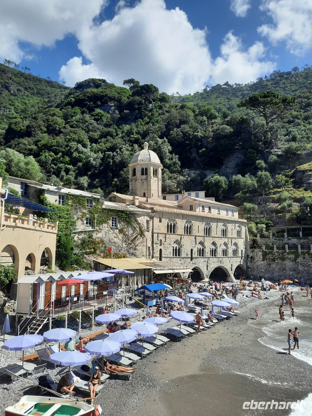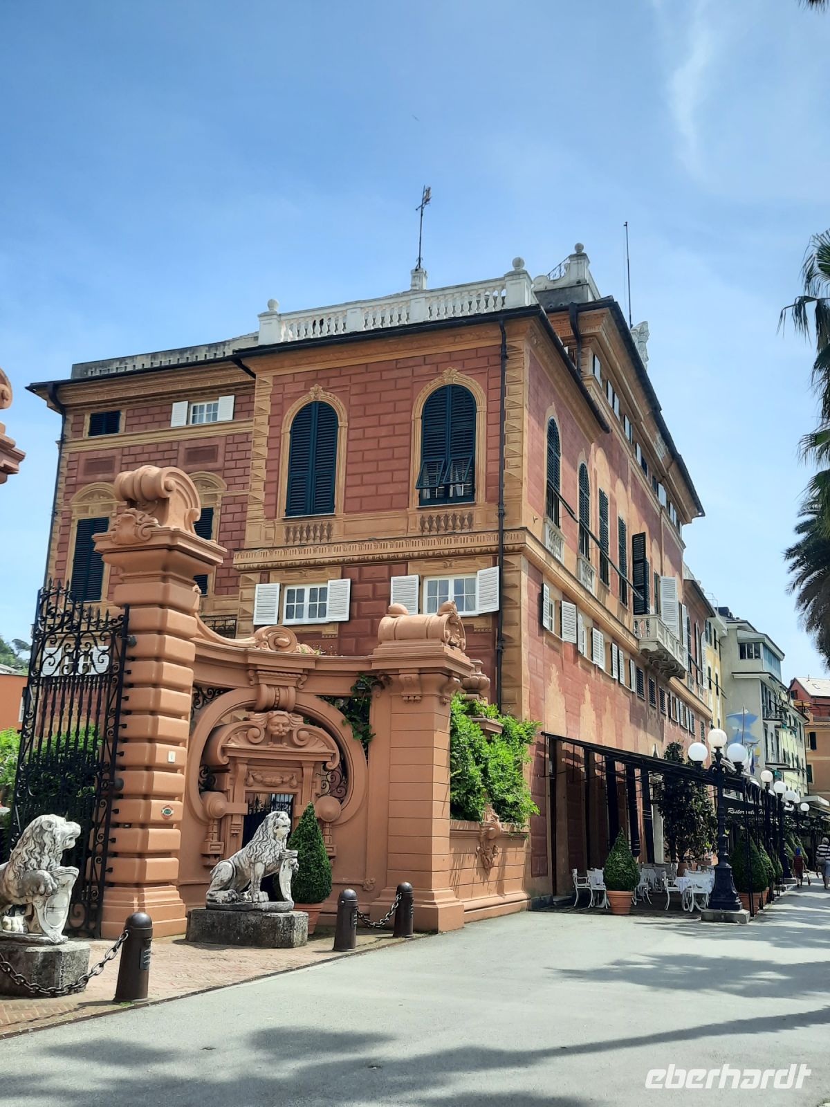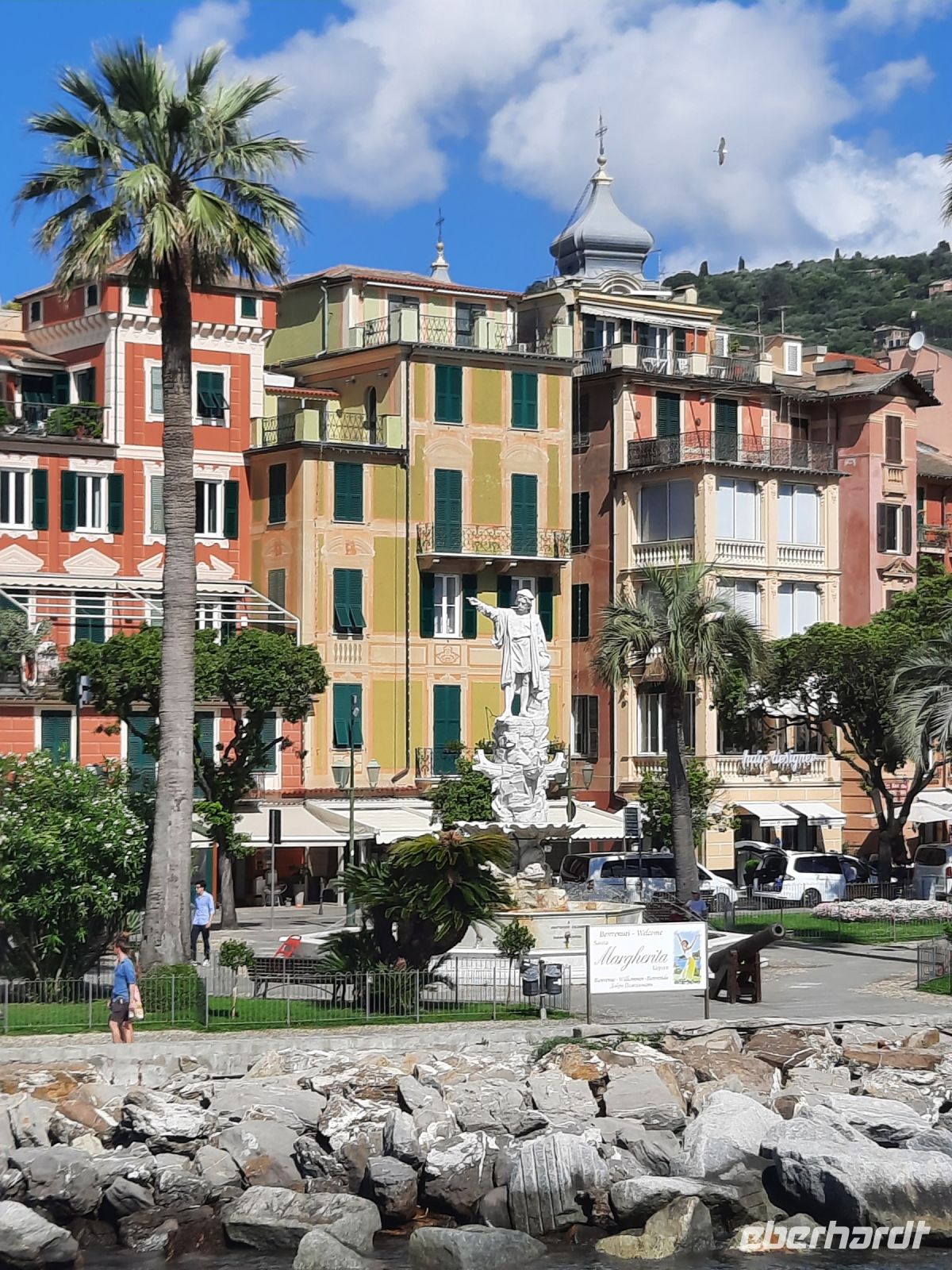 Unser letzter Tag führte uns mit dem Zug in Richtung Genua. In Santa Margherita angekommen bestaunten wir die herrliche Strandpromenade mit ihren herrschaftlichen Häusern aus dem 17./18. Jahrhundert. Geschichtlich ist dieser Ort von großer Bedeutung, denn hier wurde im Hotel „Imperial" der „Vertrag von Rapallo" 1922 unterzeichnet. Damals gehörte Santa Margherita noch zu Rapallo. Die Columbus Statur an der Promenade weist uns den Weg zur Fähre, die uns nach San Fruttuoso brachte. Der Klosterkomplex in San Fruttuoso entstand im frühen 10. Jahrhundert und war Stammsitz der Familie Doria. Es führt keine Straße dort entlang. Lediglich die Fähren oder der Wanderweg des Monte di Portofino ermöglichen der Benediktinerabtei einen Zugang. Nach einem Rundgang durch die Abtei schenkten wir unsere Aufmerksamkeit nur noch dem stetig steigenden Wanderweg des Monte di Portofino. Eingebettet in den Golfo Paradiso blickten wir von oben auf den gewaltigen Klosterkomplex. Fast immer im Schatten schlängelten wir uns Meter um Meter hinauf im National Park von Portofino. Die herrliche Vegetation mit ihren unzähligen Grüntönen tat Geist und Seele richtig gut. So meisterten wir die 460 Höhenmeter . An einer schönen Picknickstelle war die Anstrengung schnell verflogen und wir setzten unseren Weg in Richtung Portofino fort. Später lag uns der mondäne Ort zu Füßen, die Häuser schmiegten sich eng an die Marina und viele Restaurants luden zum wohl teuersten Cappuccino der Reise ein. Im Hafen von Portofino liegen neben zahlreichen Booten und Yachten auch kleine Fischerboote. Allein schon der Ausblick auf die gesamte Hafenbucht von Portofino ist ein Erlebnis. Es waren einfach nur zu viele Menschen in dieser kleinen Bucht, die wir gar nicht richtig genießen konnten. Im Anschluss fuhren wir per Schiff nach Santa Margherita und von dort weiter nach Rapallo. Wir passieren die herrliche breite Strandpromenade von Rapallo und unser Weg führt wie immer zum Bahnhof. Mit Sonnenstrahlen und blauem Himmel neigt sich unser herrlicher Genießertag dem Ende entgegen.