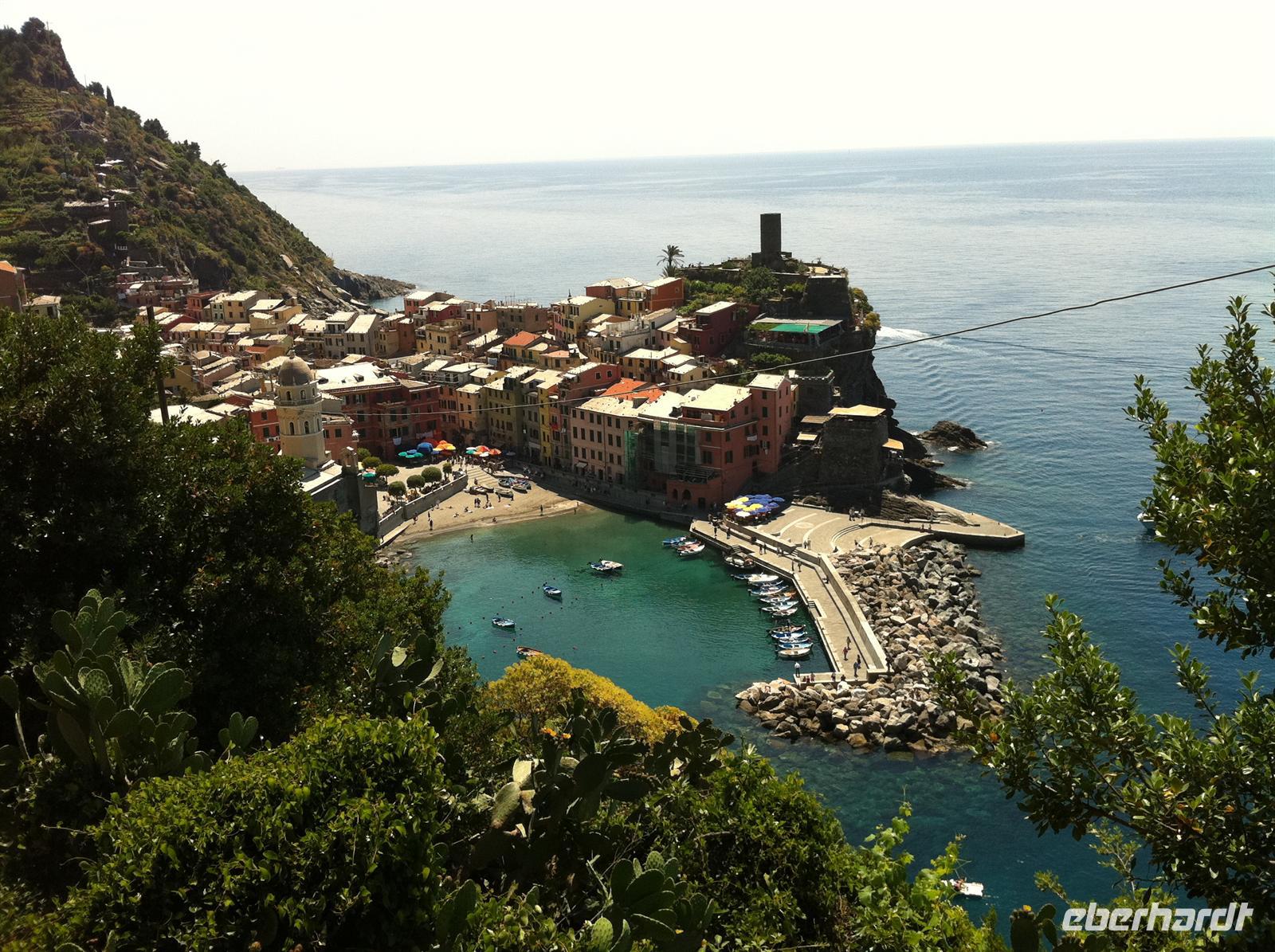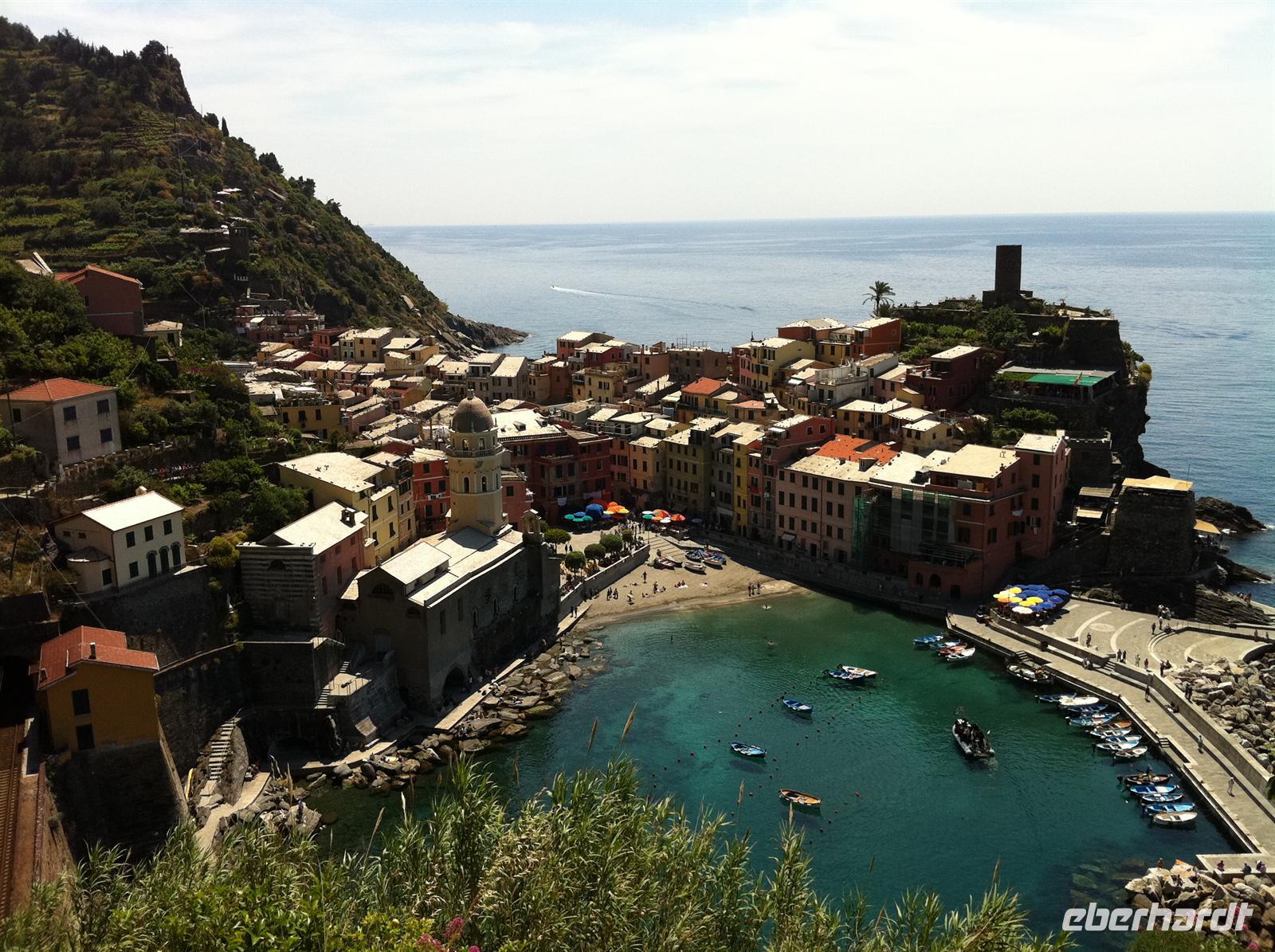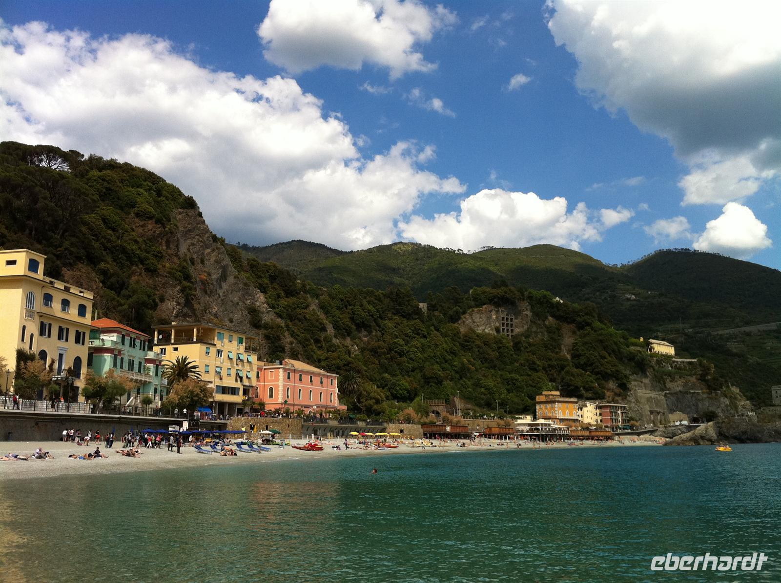 In Vernazza bleibt wieder genügend Freizeit um etwas zu essen und zu entspannen. Fast alle gehen mit Betina und mir auf den Aussichtsturm. Auch hier können wir wunderschöne Blicke auf die Stadt und die Umgebung genießen. Fast schon eine Tradition geworden ist die Rast am Strand. Entspannung am Meer, Füße im Wasser, einfach herrlich.