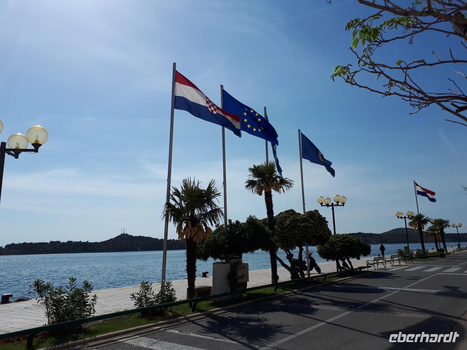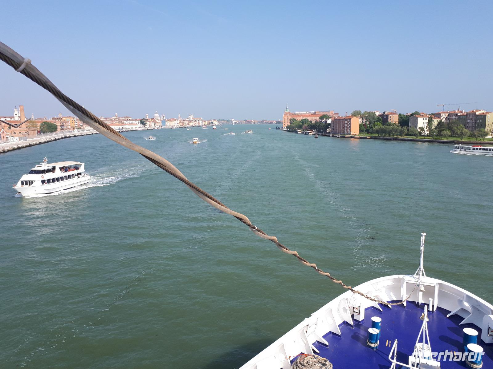 Mit Vorfreude auf die Wanderkreuzfahrt um den italienischen Stiefel trafen wir uns am Morgen auf dem Dresdner Flughafen. Bevor wir in Venedig ankamen, legten wir einen Zwischenstopp in München ein und trafen dort auf die Gäste aus Berlin und Leipzig. Nun war unsere kleine Wandergruppe vollzählig und wir flogen mit Air Dolomiti nach Italien. Nach unserem Transfer zum Hafen Venedigs erblickten wir die weiße MS Berlin. Die Gästebetreuerin Mona empfing uns freundlich am Terminal und wir checkten auf der alten Dame, wie die Berlin liebevoll genannt wird, ein. Nach der Seenotrettungsübung, die für alle Passagiere Pflicht ist, legte das Schiff pünktlich 16 Uhr ab und fuhr vorbei am Stadtteil Zattere, dem Canalae Grande und dem berühmten Markusplatz. Wir alle standen auf den oberen Decks, genossen das warme Sonnenwetter und bestaunten die vorbeiziehenden Paläste, winkten anderen Touristen zu und machten schon jetzt unzählige Fotos vom wunderschönen Venedig. Nachdem wir aus der Lagune von Venedig gefahren waren, trafen wir uns zu einer kleinen Kennenlernrunde in der YachtBar. Nach unserem ersten Abendessen erkundeten wir noch ein wenig unser schwimmendes Hotel, schauten uns die erste Show an und gingen dann ein wenig erschöpft vom Anreisetag in die Kajüten. Währenddessen fuhren wir nach Kroatien.