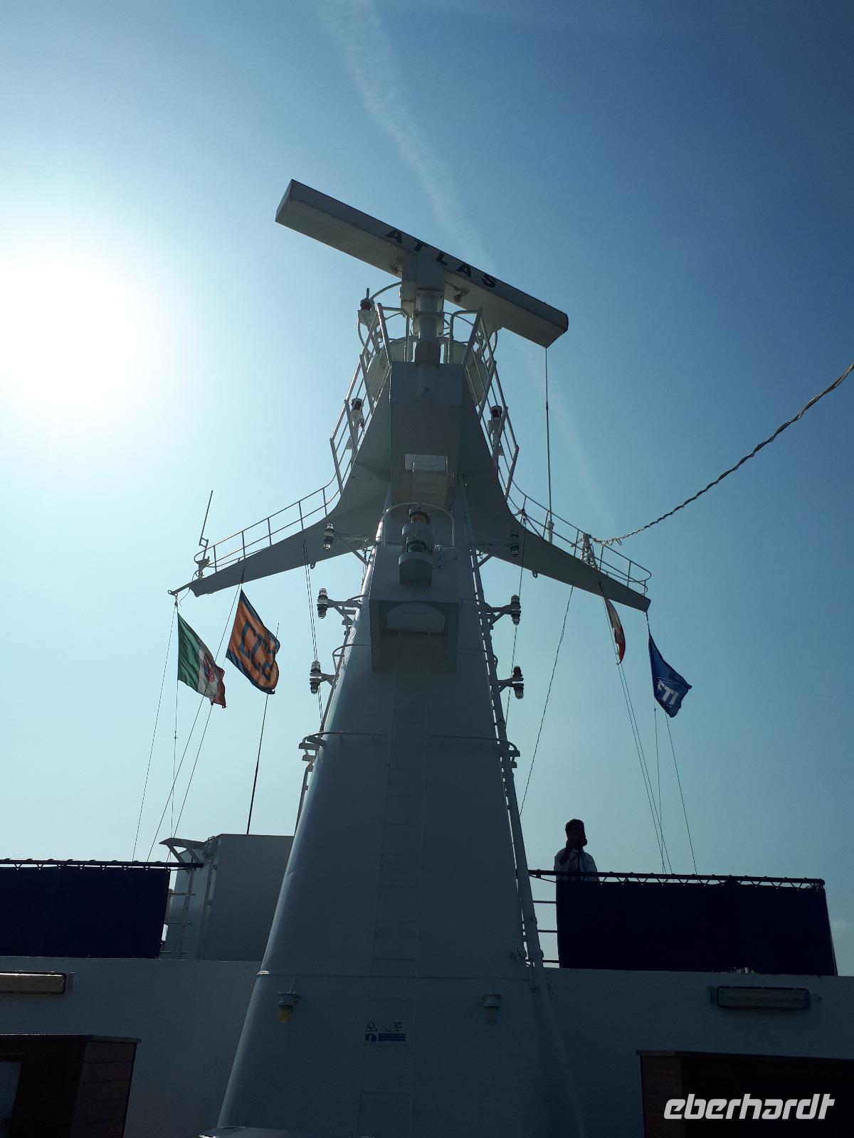 Den heutigen Tag genossen wir ganz entspannt auf See. Am Vormittag erlebten wir eine interessante Führung auf der Brücke, bei der wir in die Geheimnisse der Seefahrt eingeweiht wurden. Anschließend besuchten einige die Frühschoppen-Veranstaltung des Tiroler-Stadl, spielten eine Runde Karten oder genossen das sonnige Wetter an Bord, während unser Schiff von der Adria ins Mittelmeer schipperte.