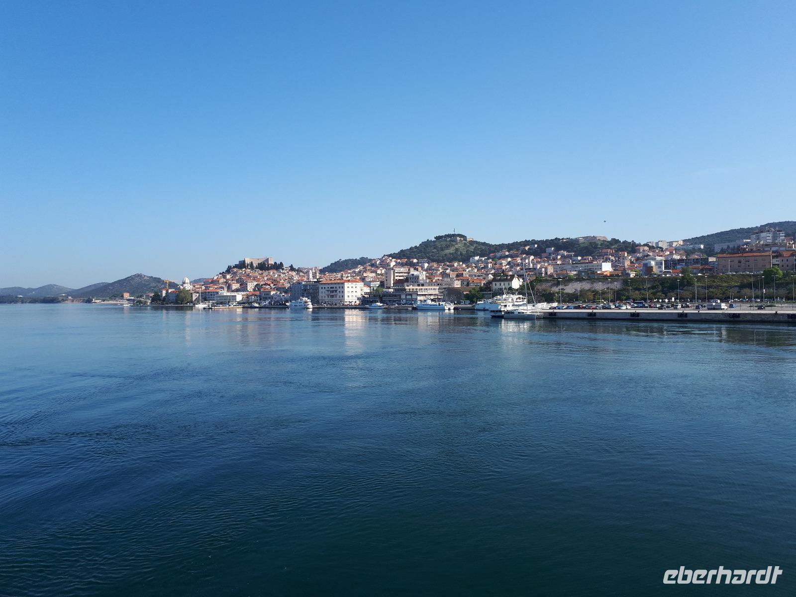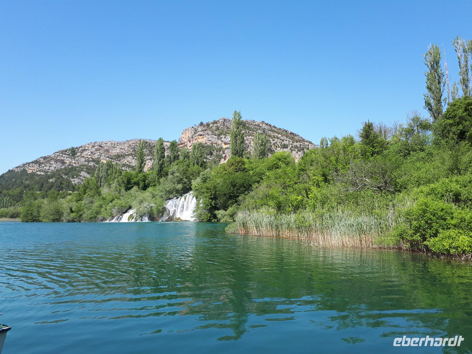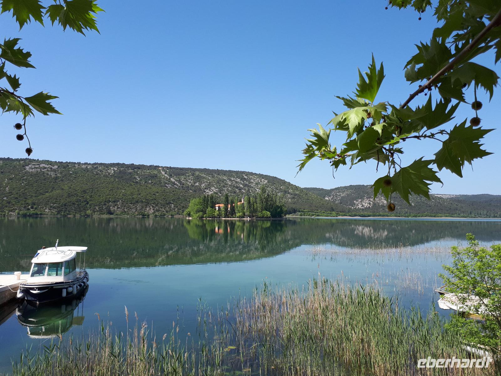 Früh am Morgen erreichten wir den Hafen von Sibenik in Kroatien. Ein erstes Frühstück auf der Terrasse des Oberdecks ließ schon die ersten warmen Temperaturen erahnen, welche heute auf uns warteten. Wir holten unsere Lunchpakete in der Sirocco-Lounge und trafen uns vor dem Schiff. Unsere Wanderführer Jürgen und Maria vom Deutschen Wanderverein erwarteten uns bereits. Die heutige Wanderung sollte uns in den bekannten Krka-Nationalpark führen. Schon Winnetou und Old Shatterhand erblickten die vielfältige Schönheit des Nationalparks, durch den die Krka mit ihren 7 Wasserfällen läuft. Nach einer ca. einstündigen Busfahrt begann unsere Wanderung am See Visovackim an der Kapelle Bristane mit Blick auf die Klosterinsel Visovac. Die Insel mit ihrem Franziskanerkloster ist ein wichtiger Wallfahrtsort und nur per Boot zu erreichen. Wir liefen einen historischen Weg entlang, der in der wasserarmen Gegend um den See genutzt wurde, um den Fluss zu erreichen und in den Trockenperioden wurde mit Eseln das Wasser in die Dörfer gebracht. Anfänglich war der Weg flach, doch nach einer kleinen Abbiegung war verständlich, warum man Esel zum Wassertransport nutzte. Der Anstieg wurde mit einer wirklich beeindruckenden Aussicht über die Weite des Nationalparks und der Klosterinsel im smaragdgrünen See belohnt. Da wir auf ein paar Nachzügler warten mussten, nutzten wir diese Auszeit für eine kleine Stärkungspause. Anschließend wanderten wir noch ein kleines Stück und kamen auf einem Plateau bei unserem Reisebus an. Dieser fuhr uns zum Wasserfall von Rosky Slap. Wir spazierten zur alten Wassermühle, stöberten in den kleinen Geschäften, entspannten uns im Schatten und bestaunten den Wasserfall von einem Steg aus. Zurück beim Schiff hatten wir noch ein wenig Zeit, einen kleinen Spaziergang in Sibenik zu unternehmen, bevor es hieß „Alle Mann an Bord". Für den heutigen Gala-Abend konnten wir uns so richtig schick machen, schließlich wollten wir alle ein tolles Bild mit unserem Kapitän Oleg zum Cocktail-Empfang. Nach einem hervorragenden Abendessen schauten wir gespannt die Gala-Show in der Sirocco-Lounge.