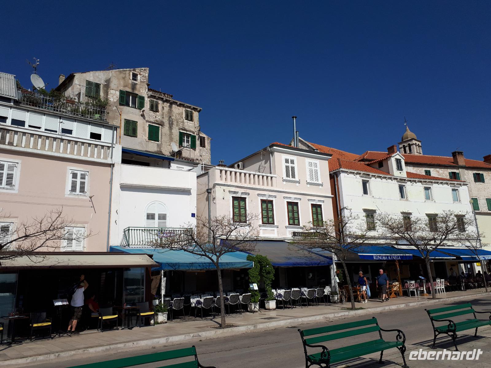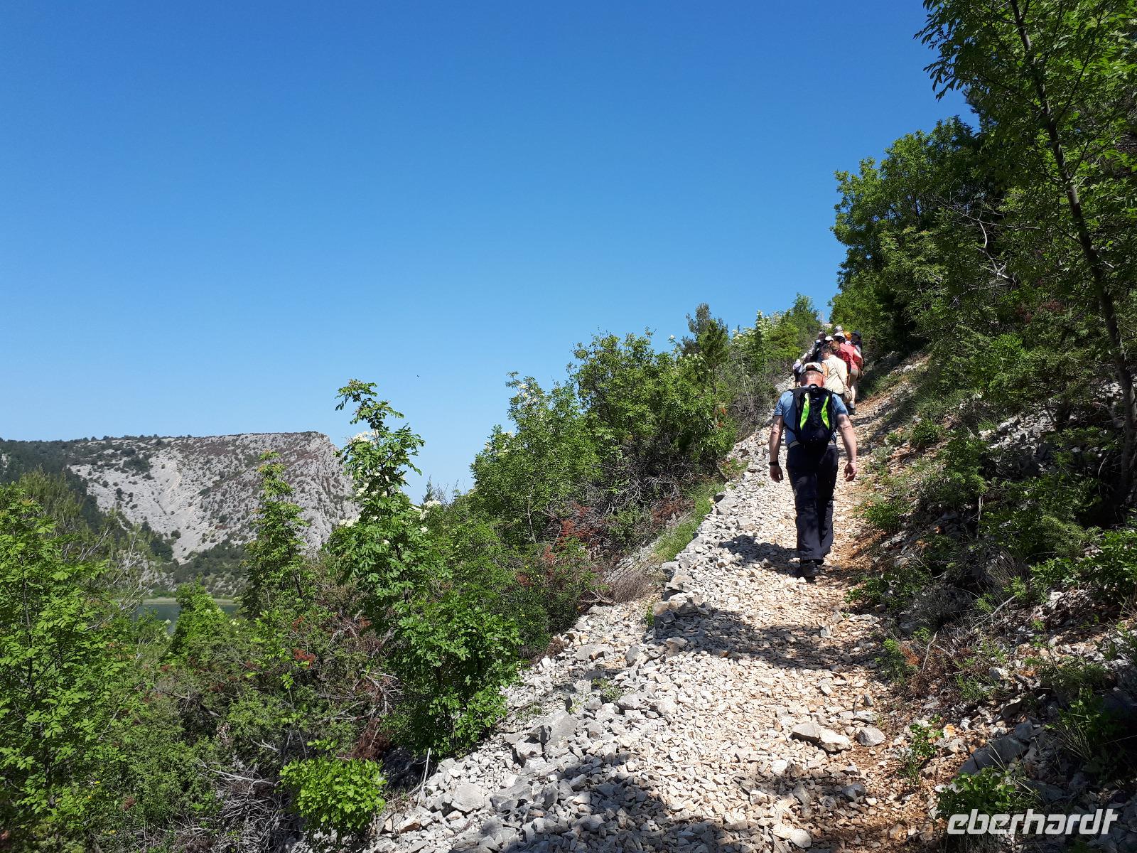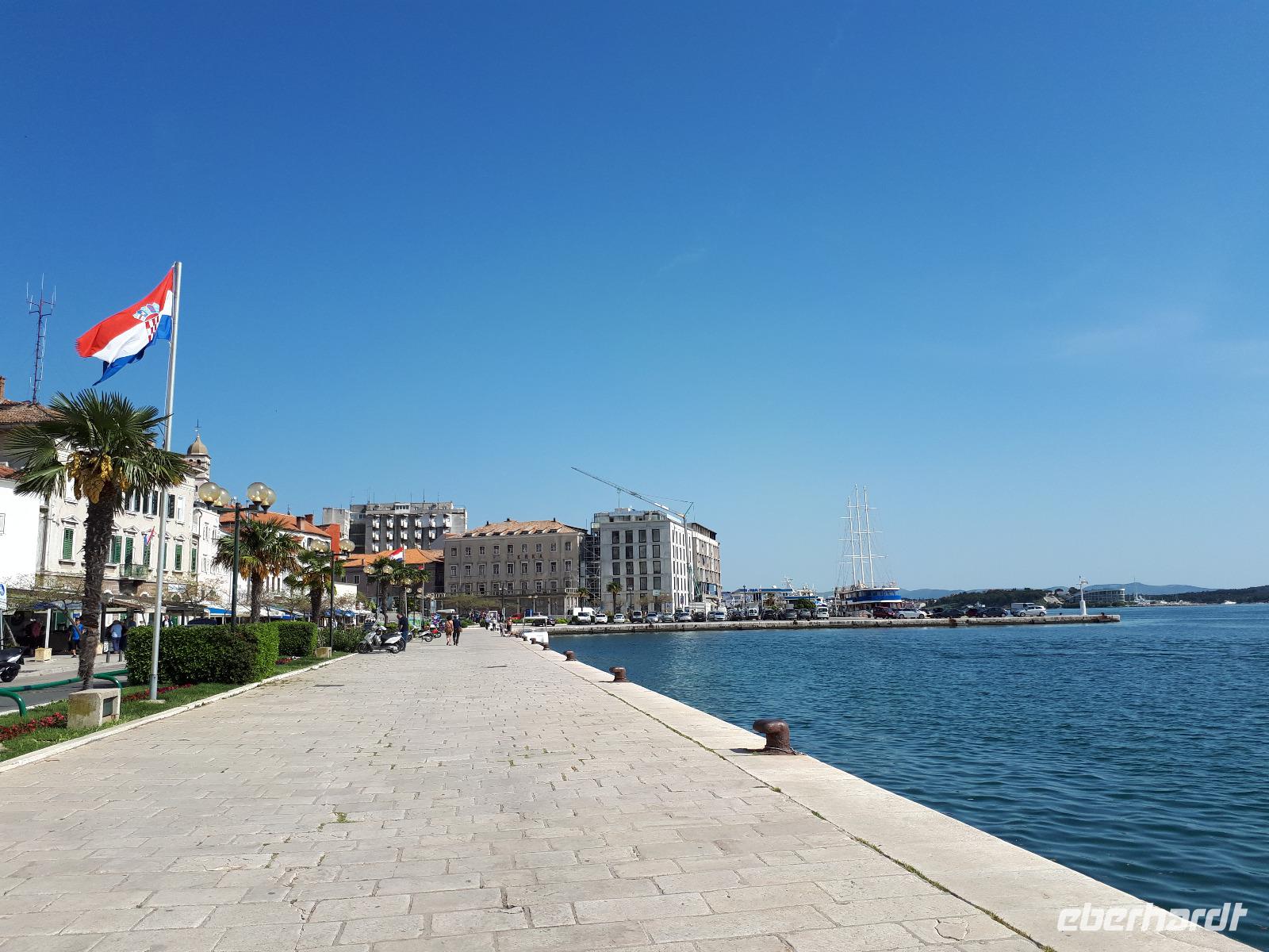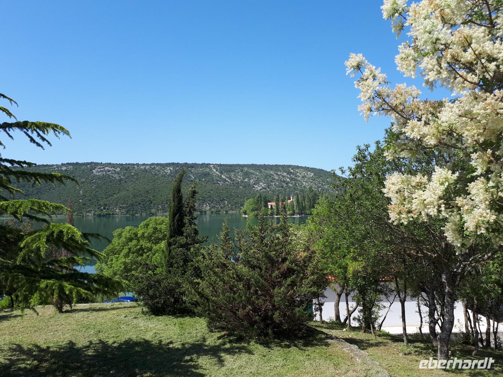 Früh am Morgen erreichten wir den Hafen von Sibenik in Kroatien. Ein erstes Frühstück auf der Terrasse des Oberdecks ließ schon die ersten warmen Temperaturen erahnen, welche heute auf uns warteten. Wir holten unsere Lunchpakete in der Sirocco-Lounge und trafen uns vor dem Schiff. Unsere Wanderführer Jürgen und Maria vom Deutschen Wanderverein erwarteten uns bereits. Die heutige Wanderung sollte uns in den bekannten Krka-Nationalpark führen. Schon Winnetou und Old Shatterhand erblickten die vielfältige Schönheit des Nationalparks, durch den die Krka mit ihren 7 Wasserfällen läuft. Nach einer ca. einstündigen Busfahrt begann unsere Wanderung am See Visovackim an der Kapelle Bristane mit Blick auf die Klosterinsel Visovac. Die Insel mit ihrem Franziskanerkloster ist ein wichtiger Wallfahrtsort und nur per Boot zu erreichen. Wir liefen einen historischen Weg entlang, der in der wasserarmen Gegend um den See genutzt wurde, um den Fluss zu erreichen und in den Trockenperioden wurde mit Eseln das Wasser in die Dörfer gebracht. Anfänglich war der Weg flach, doch nach einer kleinen Abbiegung war verständlich, warum man Esel zum Wassertransport nutzte. Der Anstieg wurde mit einer wirklich beeindruckenden Aussicht über die Weite des Nationalparks und der Klosterinsel im smaragdgrünen See belohnt. Da wir auf ein paar Nachzügler warten mussten, nutzten wir diese Auszeit für eine kleine Stärkungspause. Anschließend wanderten wir noch ein kleines Stück und kamen auf einem Plateau bei unserem Reisebus an. Dieser fuhr uns zum Wasserfall von Rosky Slap. Wir spazierten zur alten Wassermühle, stöberten in den kleinen Geschäften, entspannten uns im Schatten und bestaunten den Wasserfall von einem Steg aus. Zurück beim Schiff hatten wir noch ein wenig Zeit, einen kleinen Spaziergang in Sibenik zu unternehmen, bevor es hieß „Alle Mann an Bord". Für den heutigen Gala-Abend konnten wir uns so richtig schick machen, schließlich wollten wir alle ein tolles Bild mit unserem Kapitän Oleg zum Cocktail-Empfang. Nach einem hervorragenden Abendessen schauten wir gespannt die Gala-Show in der Sirocco-Lounge.
