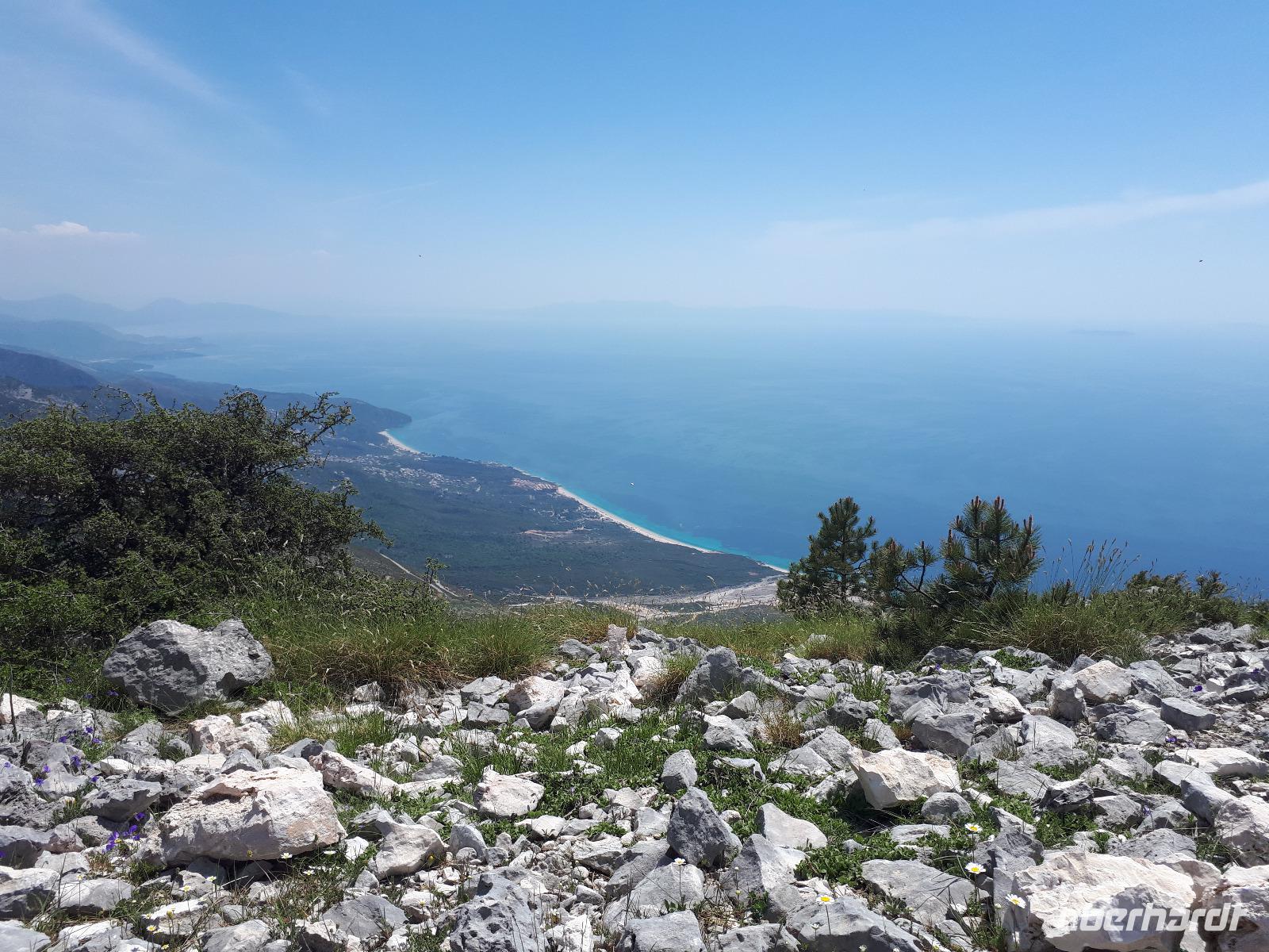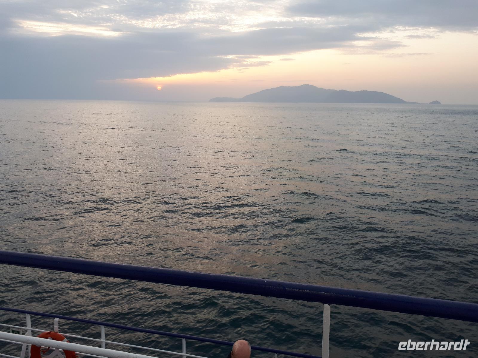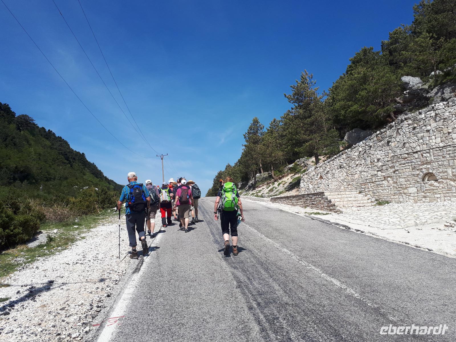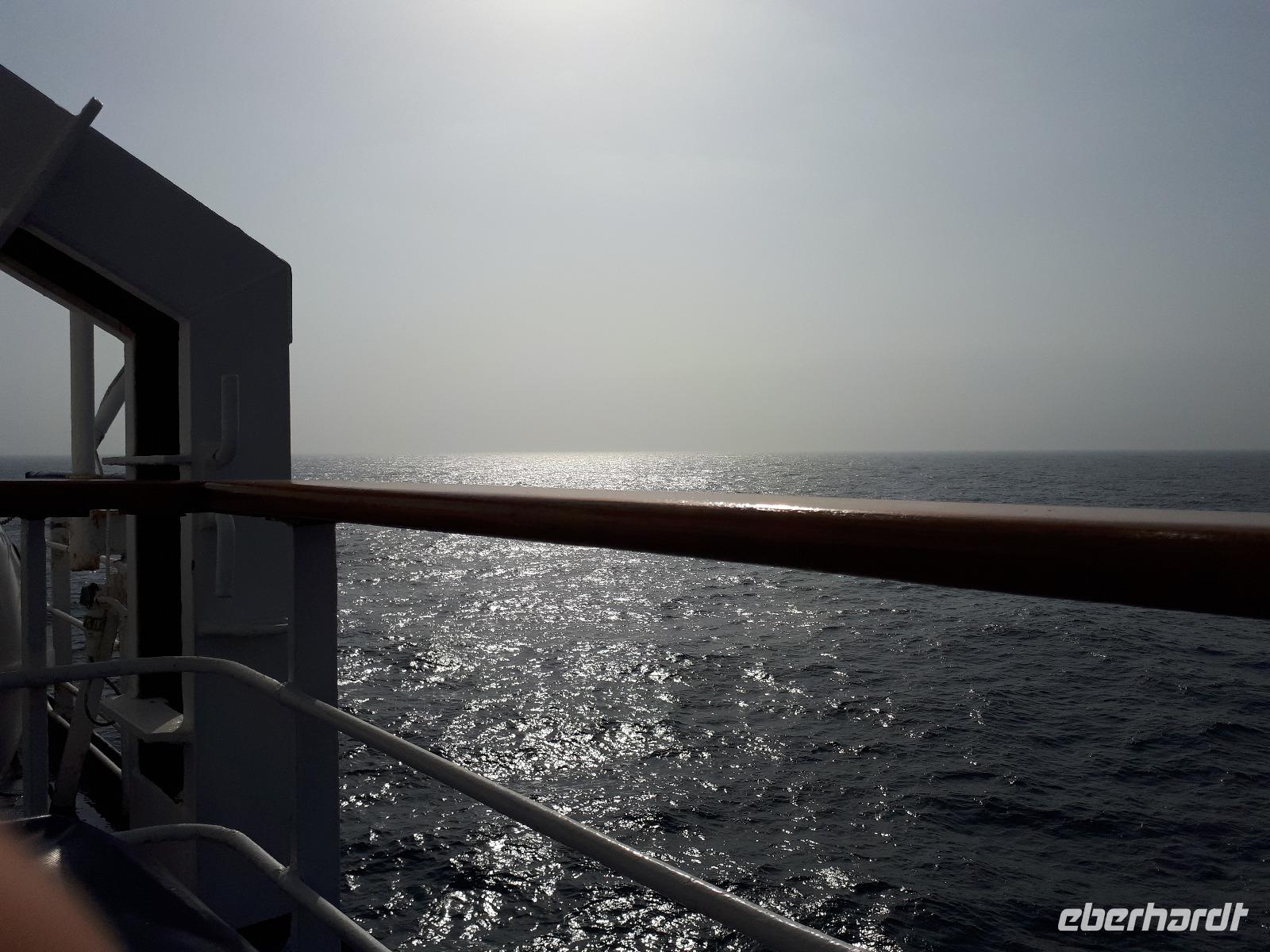 Wieder erwartete uns heute perfektes Wetter für unsere Eberhardt-Inklusiv-Wanderung im Llogara-Nationalpark. Unser Bus holte uns pünktlich vom Schiff ab und fuhr zuerst entlang der kurvenreichen Küste. Jürgen erzählte uns die ersten Infos über Albanien und den 1966 gegründeten Nationalpark. Unterwegs erlebten wir mitten in den kurvenreichen Serpentinenstraßen im Gebirge einen Stau und die albanische Art, damit umzugehen. Überall stiegen die Leute aus dem Auto, Musik wurde angeschaltet und die Situation glich eher einem kleinen spontanen Volksfest als einem Verkehrsstau. Schließlich konnten wir weiter fahren und wir kamen gut im Nationalpark an. Dort starteten wir die Wanderung mit fantastischen Ausblicken auf das blaue Meer und die Bergwälder des Nationalparks, die vor allem aus Pinien und Sträuchern, aber auch aus Kiefern, Tannen und Eschen bestehen. Bei einer Picknickpause entspannten wir in den schattigen Plätzen, schauten uns die beeindruckende Gegend ein und einige Wanderer ließen es sich nicht nehmen, noch ein kleines Stückchen hoher zu wandern. Mit einer kleinen Sporteinlage und Konzentrationsübungen bereitete uns Jürgen und Maria auf den Rückweg vor. Belustigt liefen wir wieder zum Ausgangspunkt zurück und kehrten in einem kleinen Restaurant auf der Terrasse ein. Kurzerhand stellten wir eine Tafel zusammen, probierten albanisches Bier bei einer atemberaubenden Aussicht auf die Bucht und den Nationalpark. Wieder an Bord bereiteten wir uns auf den Black & White-Abend vor, freuten uns auf den kommenden Seetag und schwangen am Abend das Tanzbein auf dem Veranda-Deck.