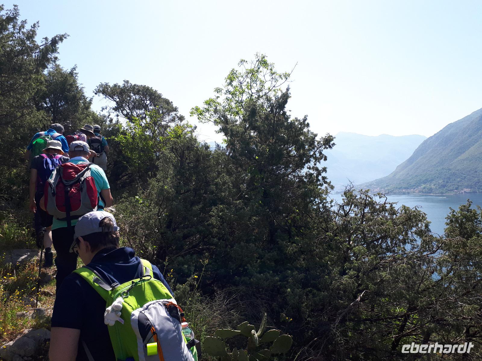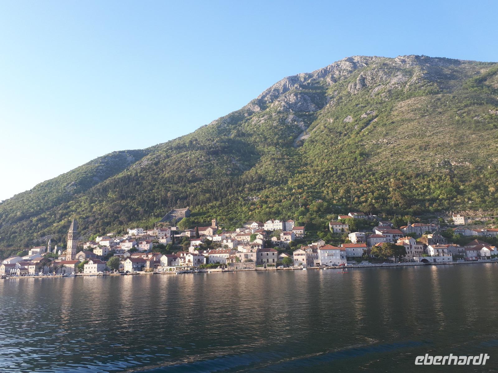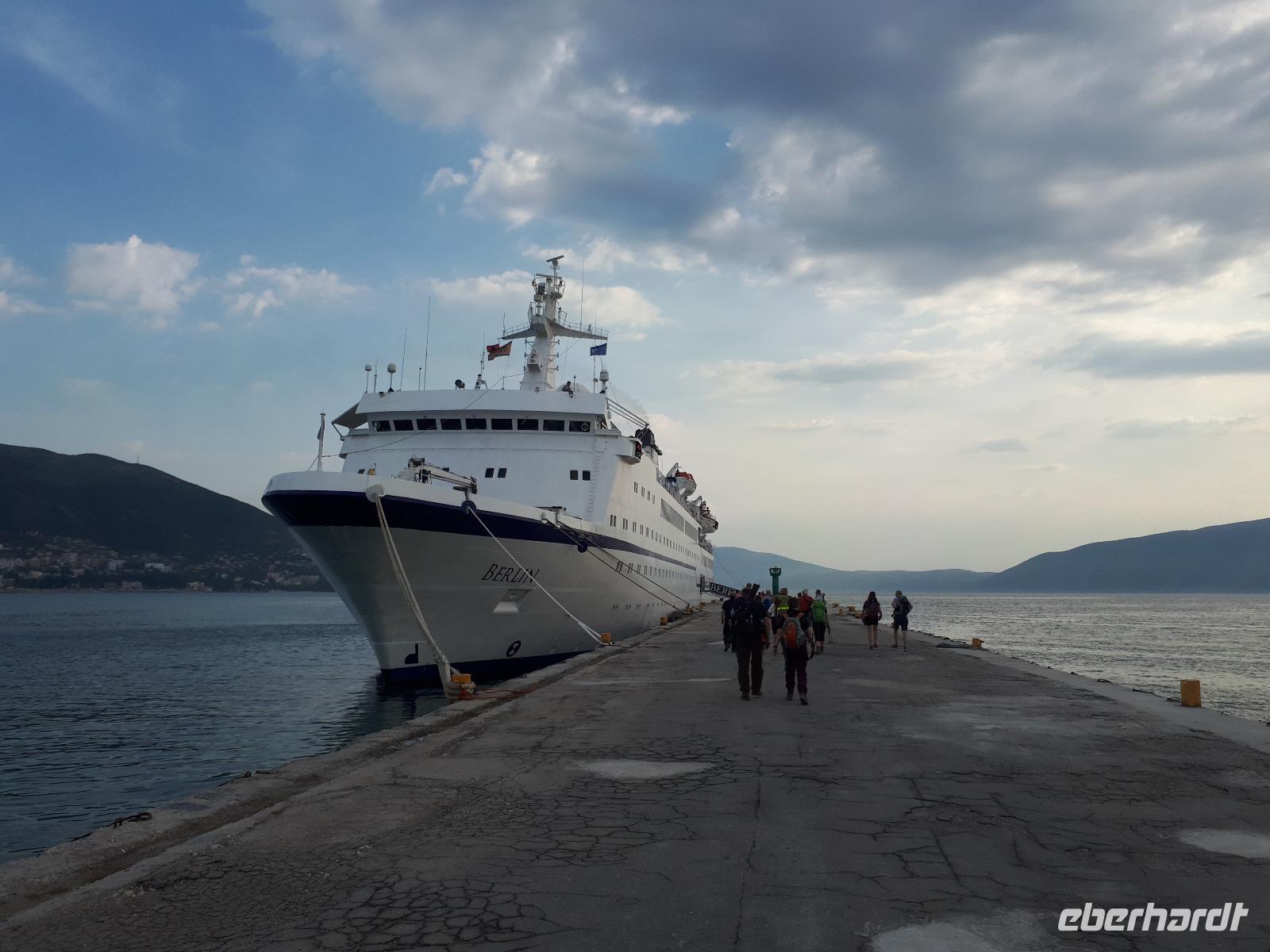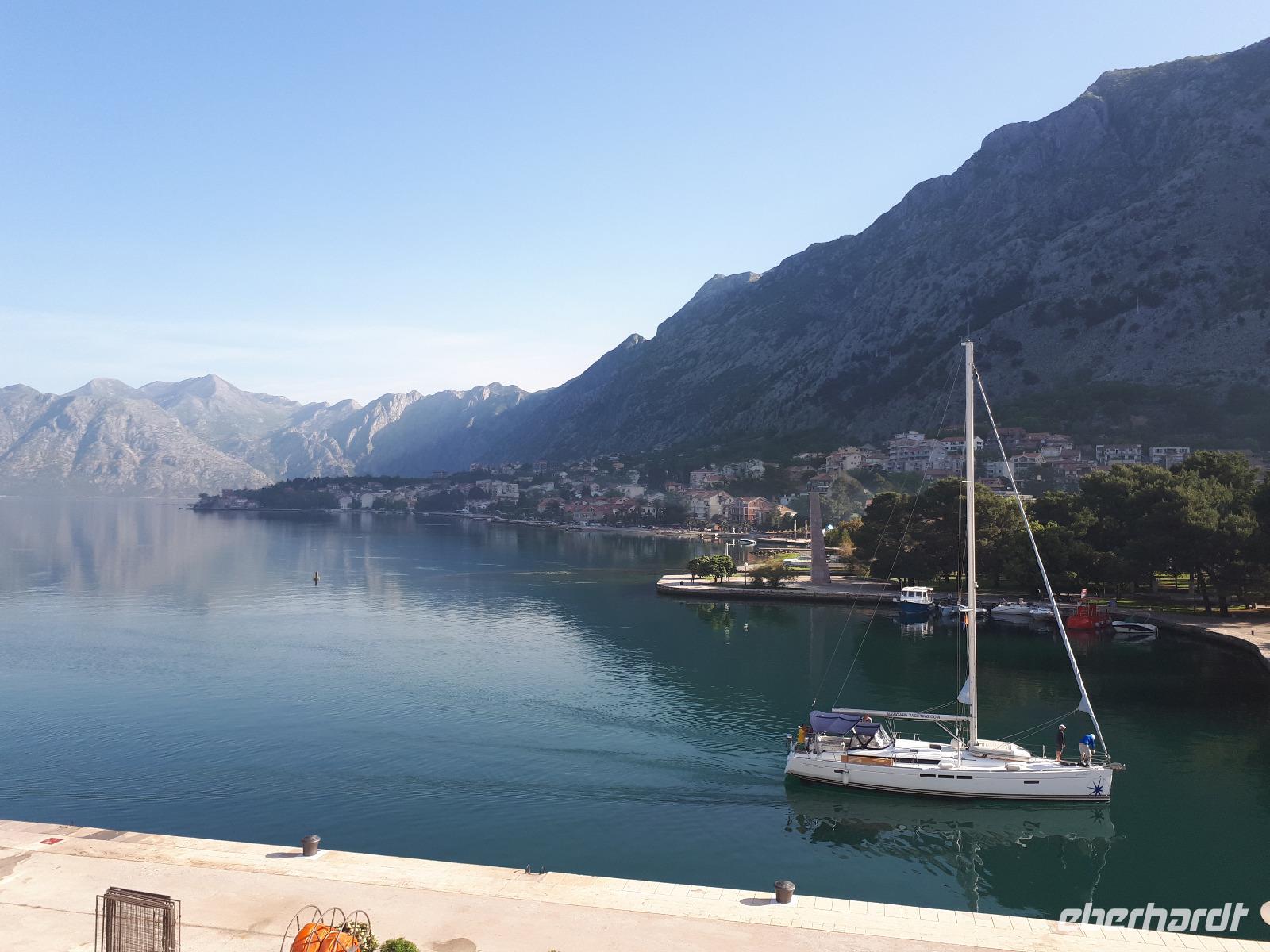 Wer die einmalige Einfahrt in den südlichsten Fjord Europas miterleben wollte, musste heute früh aufstehen, denn ab 6 Uhr kam der Lotse an Bord. Die Einfahrt war einmalig schön bei der aufgehenden Sonne. Nach einem guten Frühstück auf der Veranda und der Abholung der Lunchpakete konnte für einen Teil der Reisegruppe der Ausflug losgehen. Die Wanderer der langen Strecke stiegen vor uns aus, wir fuhren bis Perast weiter. Voller Elan stiegen wir den serpentinenartig angelegten Weg hinauf. Unser Ziel war eine kleine zerfallene Kapelle, daher schien der Weg ein alter Pilgerpfad zu sein. Der Aufstieg wurde durch die Hitze immer beschwerlicher aber je höher wir kamen, desto schöner wurde die Aussicht auf die innere Bucht von Kotor. Wir waren begeistert vom blauen Meer, den kleinen weißen Booten und den kleinen Inselchen, die meistens Klosterinseln sind. Glücklich kamen wir bei der kleinen Kapelle an und erkundeten diese auch kurz. Unsere wohlverdiente Pause nahmen wir bei einem schattigen Plätzchen ein. Jürgen erzählte von seinen Wandertouren mit Kindern und Jugendlichen und wir hörten belustigt seinen Erlebnissen zu. Der Abstieg war nicht weniger anstrengend, mussten wir doch genau hinschauen, wohin wir bei den teils losen Felsen und Geröll hintreten. Als wir wieder in Perast ankamen, nutzten wir die verbleibende Zeit bis zum Treff auf die anspruchsvollen Wanderer, um das kleine idyllische Örtchen direkt am Wasser zu erkunden. Zurück auf dem Schiff trafen wir uns alle gemeinsam zum Abendessen und erzählten von den Erlebnissen des Tages. Einige Gäste erkundeten auf eigene Faust die Stadt Kotor oder unternahmen einen Ausflug nach Budva und Perast mit kleiner Bootsfahrt quer über die Bucht. Am Abend wurden wir in Oktoberfest-Stimmung mit der Toroler-Stadl-Band gebracht.
