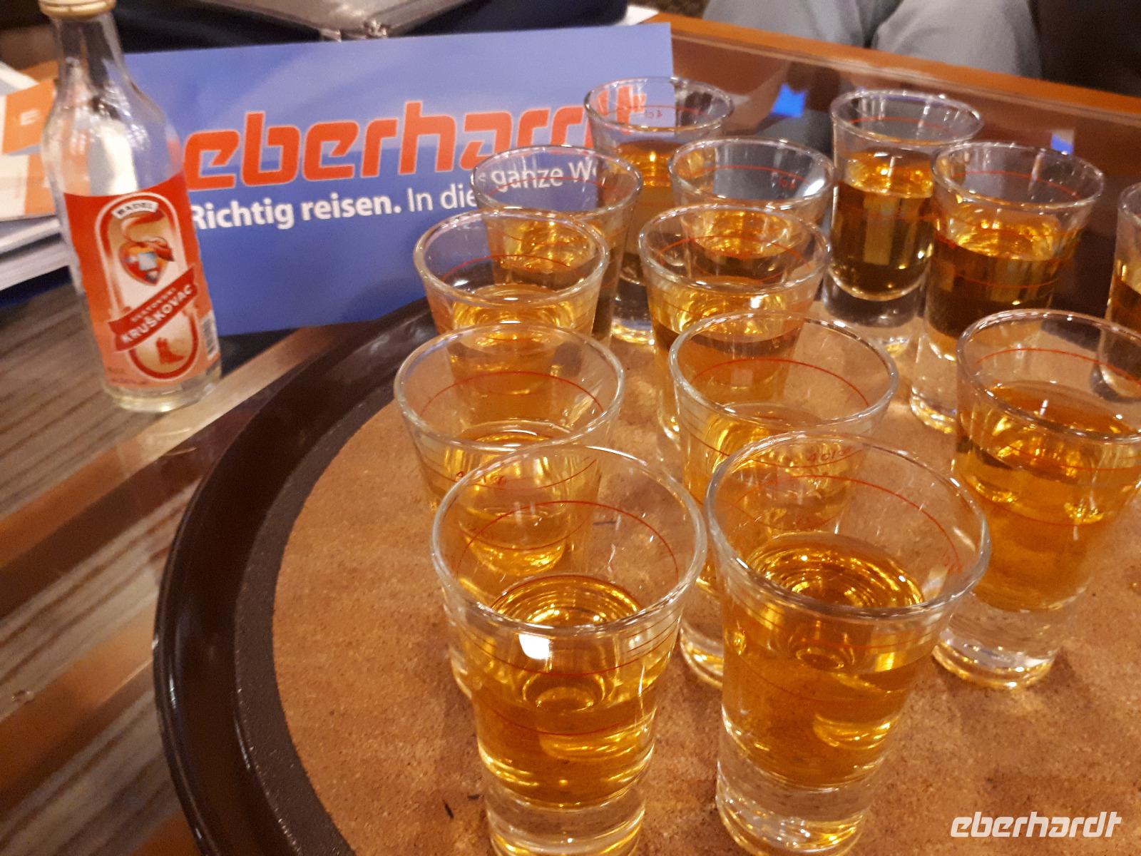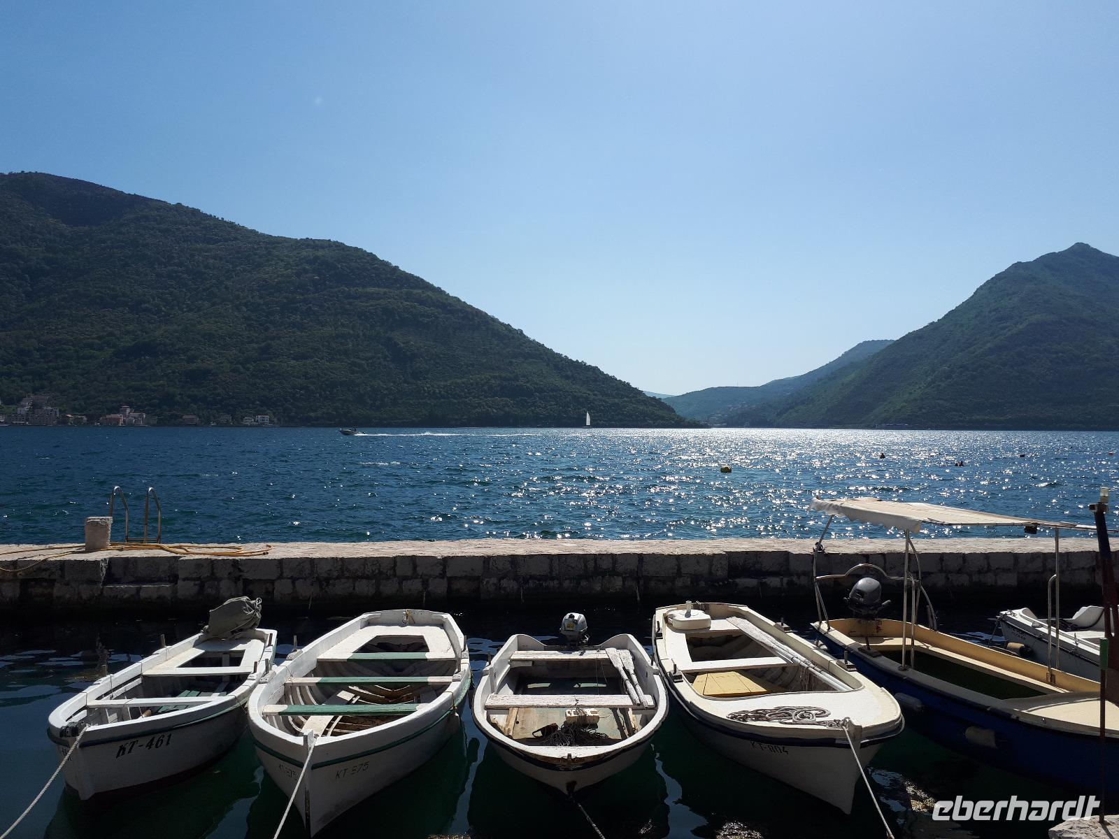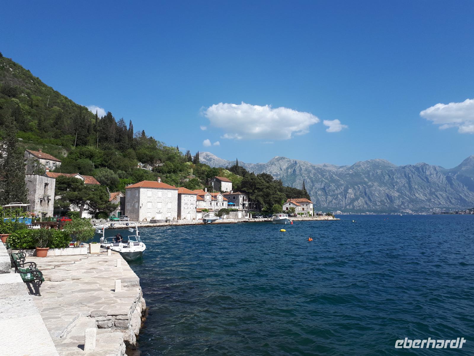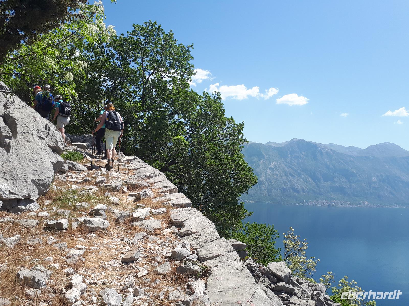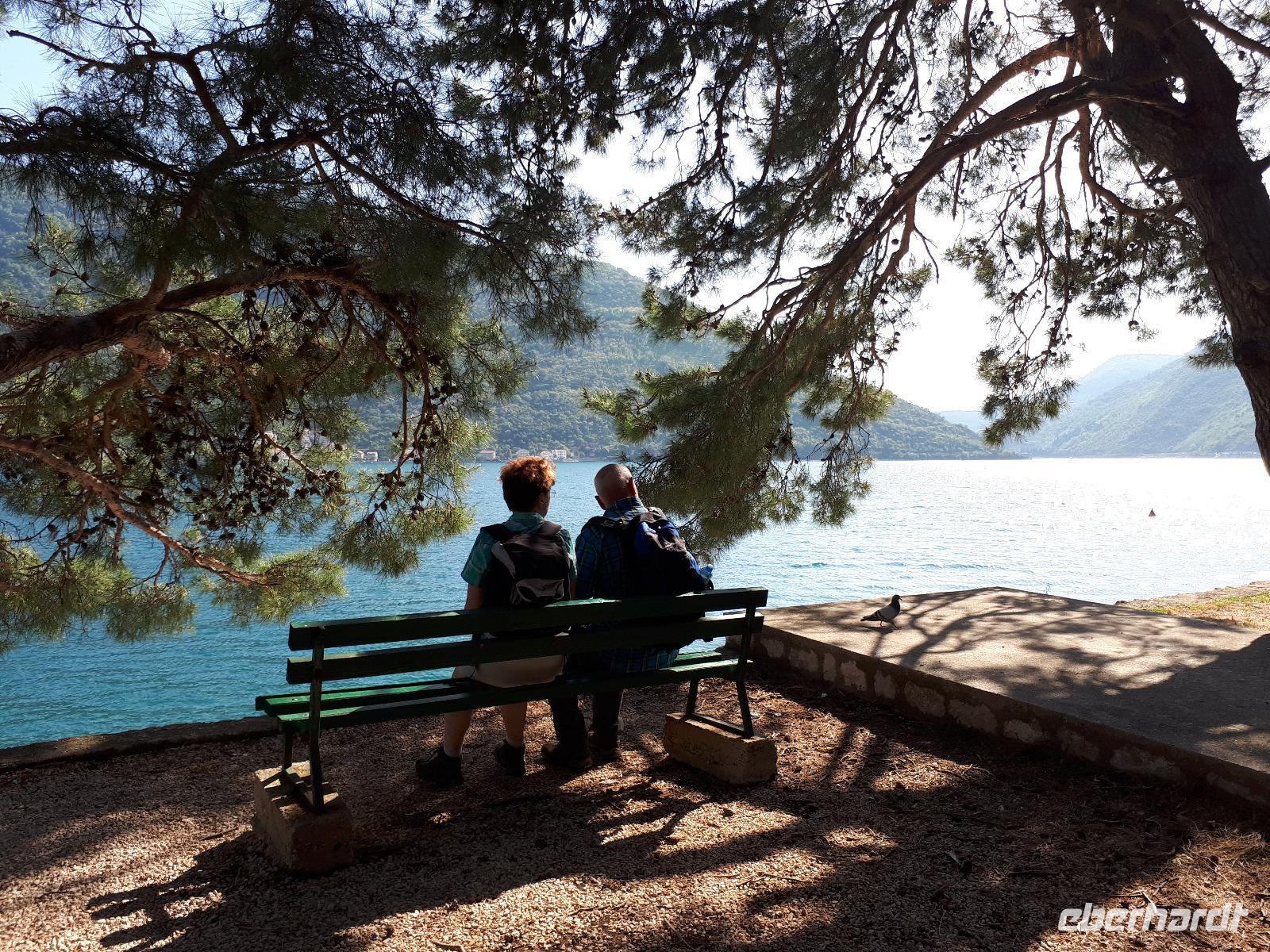 Wer die einmalige Einfahrt in den südlichsten Fjord Europas miterleben wollte, musste heute früh aufstehen, denn ab 6 Uhr kam der Lotse an Bord. Die Einfahrt war einmalig schön bei der aufgehenden Sonne. Nach einem guten Frühstück auf der Veranda und der Abholung der Lunchpakete konnte für einen Teil der Reisegruppe der Ausflug losgehen. Die Wanderer der langen Strecke stiegen vor uns aus, wir fuhren bis Perast weiter. Voller Elan stiegen wir den serpentinenartig angelegten Weg hinauf. Unser Ziel war eine kleine zerfallene Kapelle, daher schien der Weg ein alter Pilgerpfad zu sein. Der Aufstieg wurde durch die Hitze immer beschwerlicher aber je höher wir kamen, desto schöner wurde die Aussicht auf die innere Bucht von Kotor. Wir waren begeistert vom blauen Meer, den kleinen weißen Booten und den kleinen Inselchen, die meistens Klosterinseln sind. Glücklich kamen wir bei der kleinen Kapelle an und erkundeten diese auch kurz. Unsere wohlverdiente Pause nahmen wir bei einem schattigen Plätzchen ein. Jürgen erzählte von seinen Wandertouren mit Kindern und Jugendlichen und wir hörten belustigt seinen Erlebnissen zu. Der Abstieg war nicht weniger anstrengend, mussten wir doch genau hinschauen, wohin wir bei den teils losen Felsen und Geröll hintreten. Als wir wieder in Perast ankamen, nutzten wir die verbleibende Zeit bis zum Treff auf die anspruchsvollen Wanderer, um das kleine idyllische Örtchen direkt am Wasser zu erkunden. Zurück auf dem Schiff trafen wir uns alle gemeinsam zum Abendessen und erzählten von den Erlebnissen des Tages. Einige Gäste erkundeten auf eigene Faust die Stadt Kotor oder unternahmen einen Ausflug nach Budva und Perast mit kleiner Bootsfahrt quer über die Bucht. Am Abend wurden wir in Oktoberfest-Stimmung mit der Toroler-Stadl-Band gebracht.