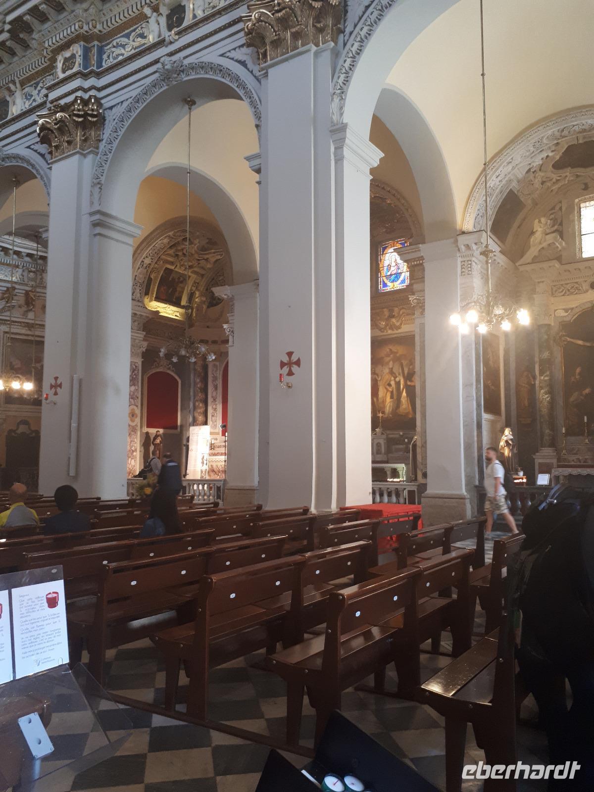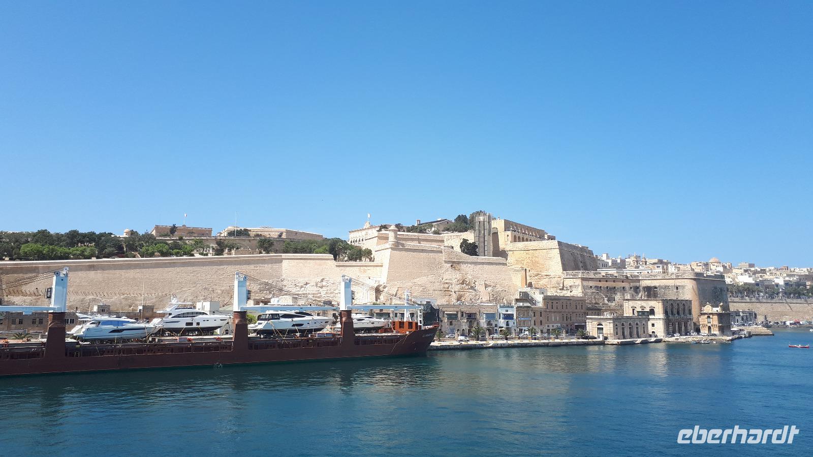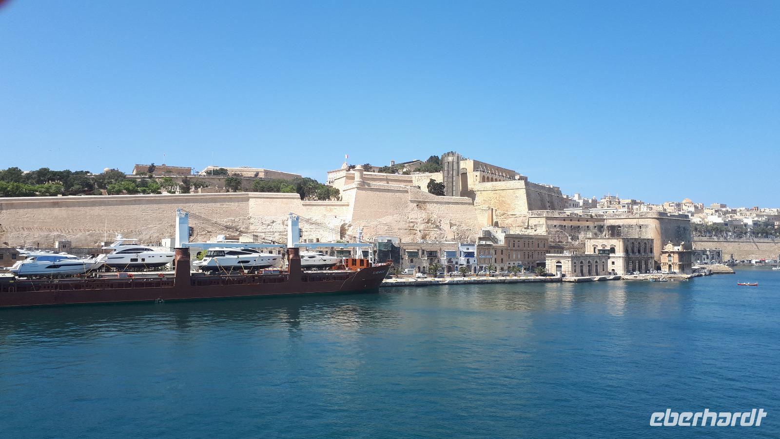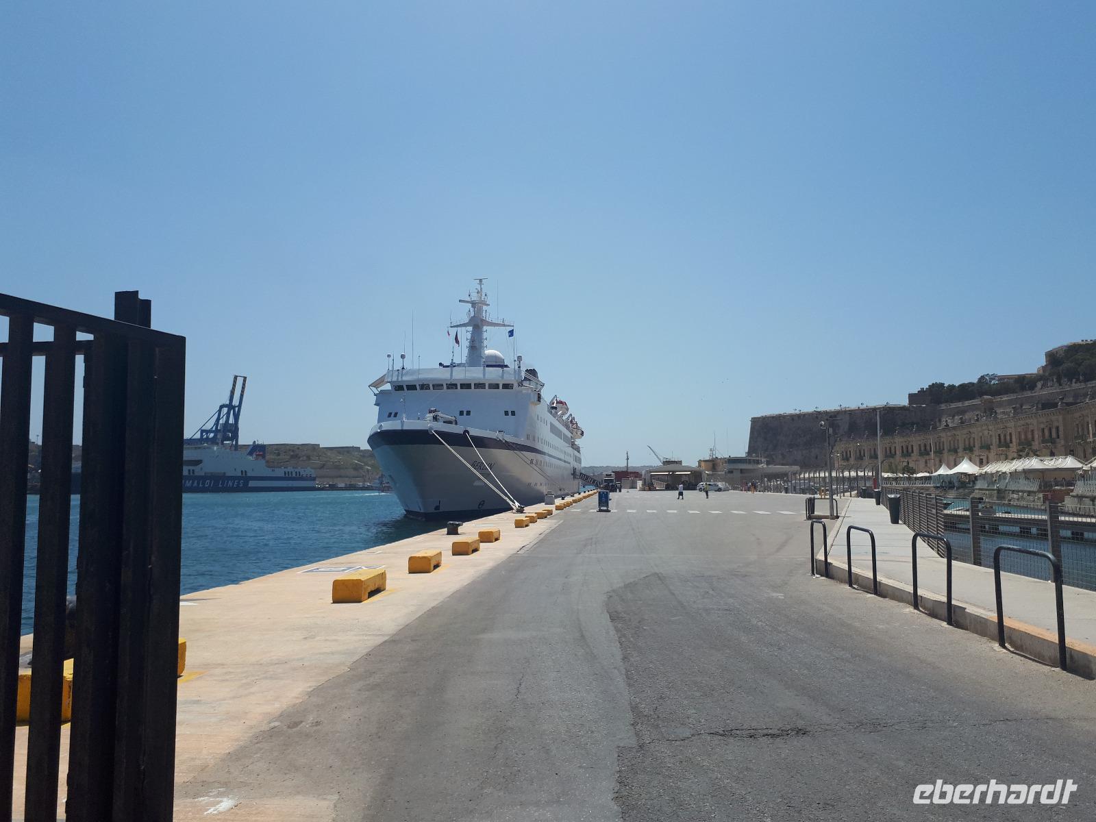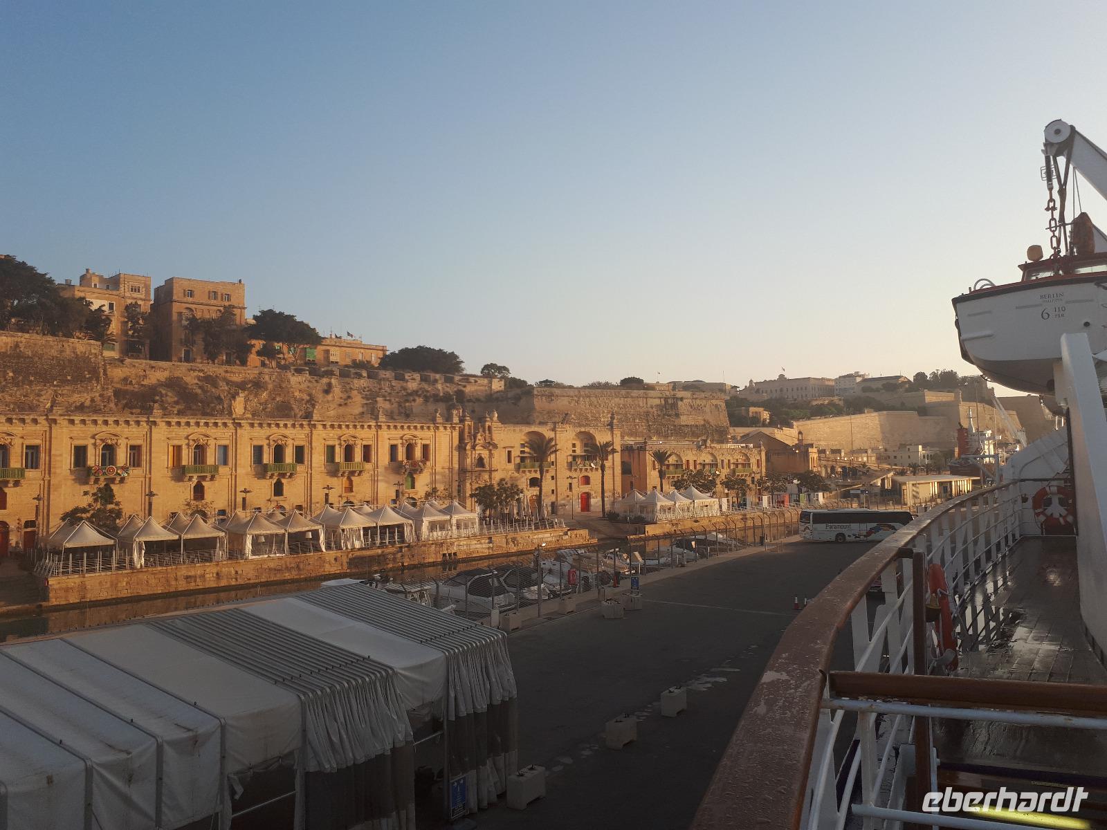 Heute erreichte die Berlin den Hafen von Valletta, die Hauptstadt des kleinen Staates Malta im Mittelmeer. Unsere Reisegruppe teilte sich auf einige Ausflüge auf. Einige namen an den zwei Wanderungen entlang der Dingli-Klippen teil oder besuchten die Städte Mdina und Rabat. Wir fuhren gemeinsam mit der Gruppe der langen Wanderung vorbei an Mdina in die Mitte der Insel. Unsere leichte Wanderung führte uns vorbei an kleinen Gemüsefeldern, alten Kapellen und durch kleine Dörfer, deren Wächter uns stets freundlich begrüßten. zum Teil begleiteten uns die Hunde auch ein Stück unseres Weges. Wir sahen zahlreiche blühende Pflanzen, die stets unsere Aufmerksamkeit bekamen, weil sie so besonders hübsch aussahen. Bei den Dingli-Klippen angekommen, genossen wir die Weite des Meeres bei einem kleinen Picknick. Die Klippen wurden nach dem englischen Ritter Sir Thomas Dingley benannt und zeichnen sich dadurch aus, dass die Felsen steil ins Mittelmeer abfallen. Wir erreichten den Ort Dingli und beschlossen, ein wenig den kleinen Ort zu erkunden. Leider war unsere Liegezeit im Hafen nicht sehr lang, daher mussten wir nach unserer Ankunft in Valletta gleich auf das Schiff gehen. Um so schöner war dann das Auslaufen aus dem Naturhafen. Wir standen lange an Deck und bewunderten das immer kleiner werdende Malta. Den Abend verbrachten wir wieder bei einem gemeinsamen Abendessen in unserer lustigen Runde.