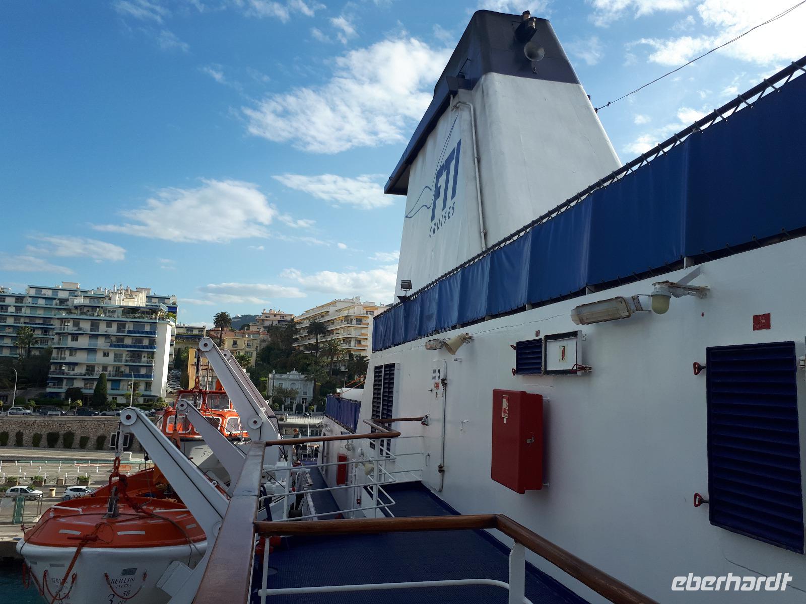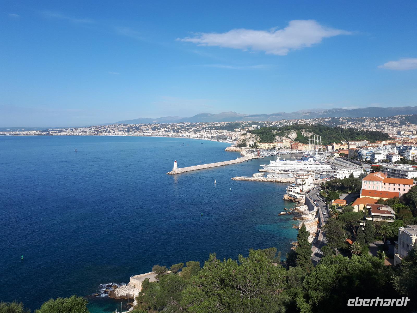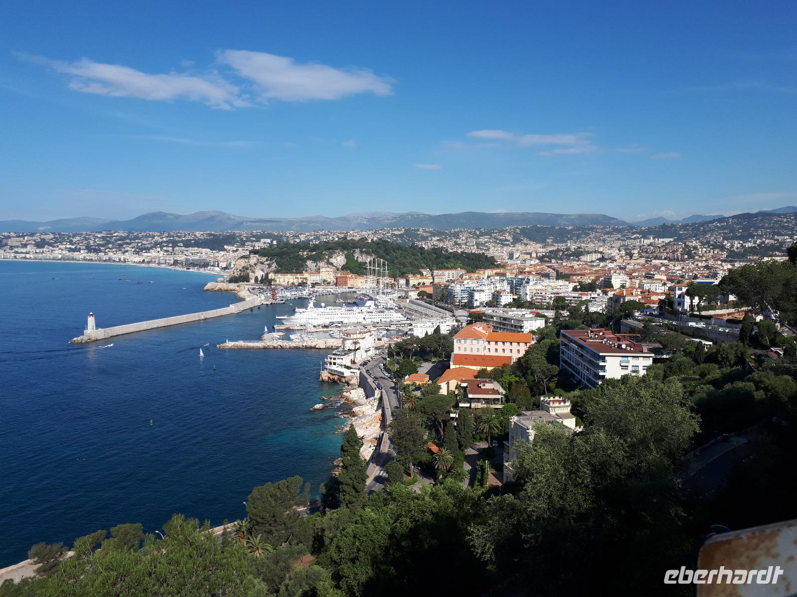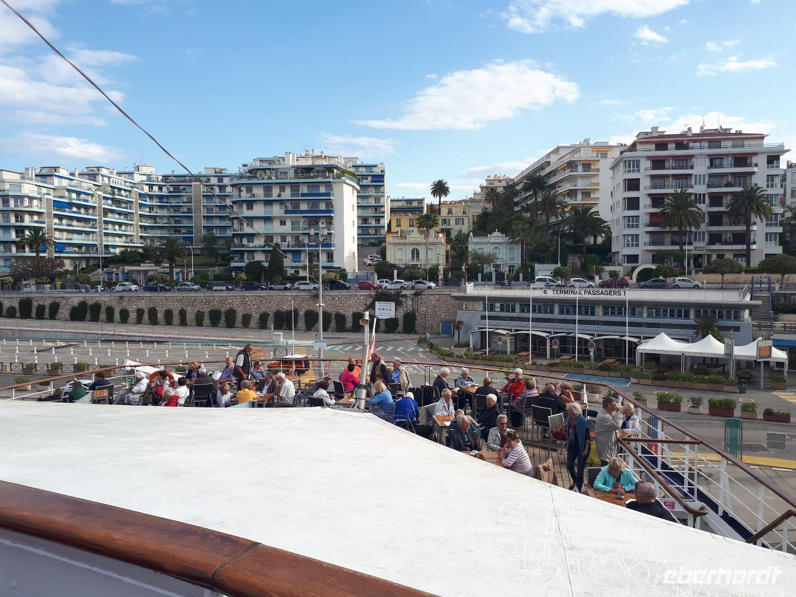 Die Berlin legte früh am Morgen in Nizza an der französischen Cote d'Azur an. Hier endete unsere Kreuzfahrt. Wir verabschiedeten uns von unserem schwimmenden Hotel und begrüßten den Reiseleiter Richard und Busfahrer Michelle. Zuerst besichtigten wir Nizza vom Bus aus und hielten an tollen Aussichtspunkten. So konnten wir die alte Dame auch noch einmal von der Ferne aus betrachten. Anschließend bummelten wir mit Richard durch das hübsche Zentrum mit den zahlreichen kleinen Gassen, Cafés und Souvenirlädchen. Den berühmten Blumenmarkt konnten wir in unserer freien Zeit erkunden. Nun hieß es auch Abschied nehmen von den Berliner Gästen. Als Richard und Michelle wieder zurück kamen, ging unser Ausflug in die Filmstadt Cannes weiter. Das berühmte Filmfest stand in einer Woche bevor, daher lagen schon die ersten Yachten vor Anker und überall konnte man sehen, dass die Vorbereitungen in vollem Gang waren. Wir spazierten entlang der Strandmole und hielten leider vergeblich nach einem Promi Ausschau. Es wurde Zeit und wir mussten nun zum Flughafen fahren. Michelle verabschiedete uns und wir flogen pünktlich nach Frankfurt. Leider fanden es unsere Koffer in Frankfurt so schön, dass sie erst am folgenden Tag den Weg zu uns nach Hause fanden. Aber es ist alles gut gegangen.