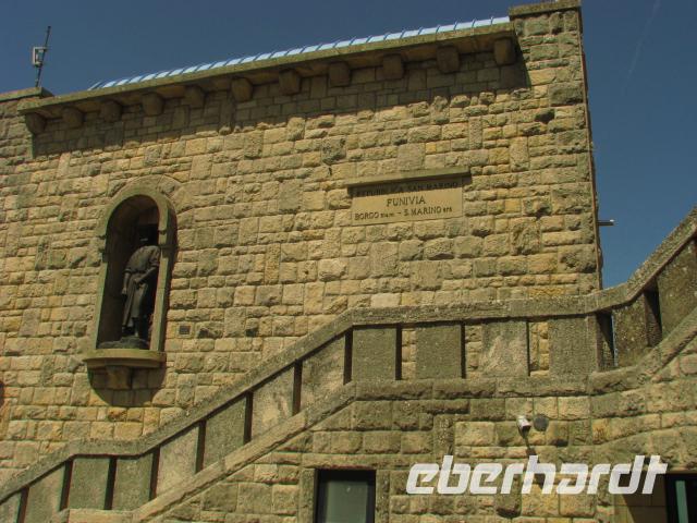 Obwohl wir mit der Seilbahn hinaufgefahren sind, gilt es dennoch einige Steigungen zu überwinden, um zu den Türmen San Marinos zu gelangen. Wir begnügen uns mit dem Anstieg zum ersten Turm und schauen von hier auf den zweiten Turm und die Landschaft.