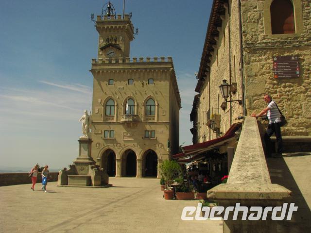 Heute heißt es wieder Koffer packen. Auf unserem Programm steht mit San Marino die älteste Republik Europas. Zuvor jedoch genießen wir noch die Landschaft bei einer kleiner Panoramafahrt. Vorbei an San Leo, welches ebenso wie San Marino auf einem Felsen thront, erreichen wir die Seilbahn, mit der wir nach oben in den alten Teil San Marinos gelangen. Mit unserem Stadtführer Leonardo erkunden wir diese Republik, die nicht nur ein eigenes Autokennzeichen hat, sondern auch gleich zwei Präsidenten.
