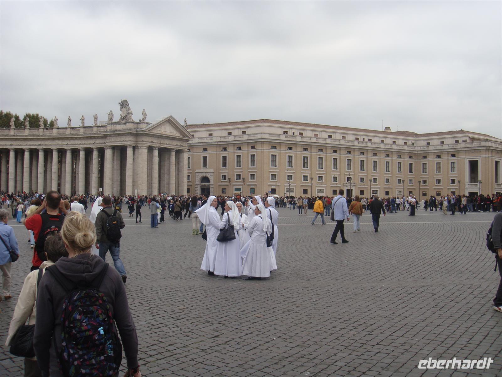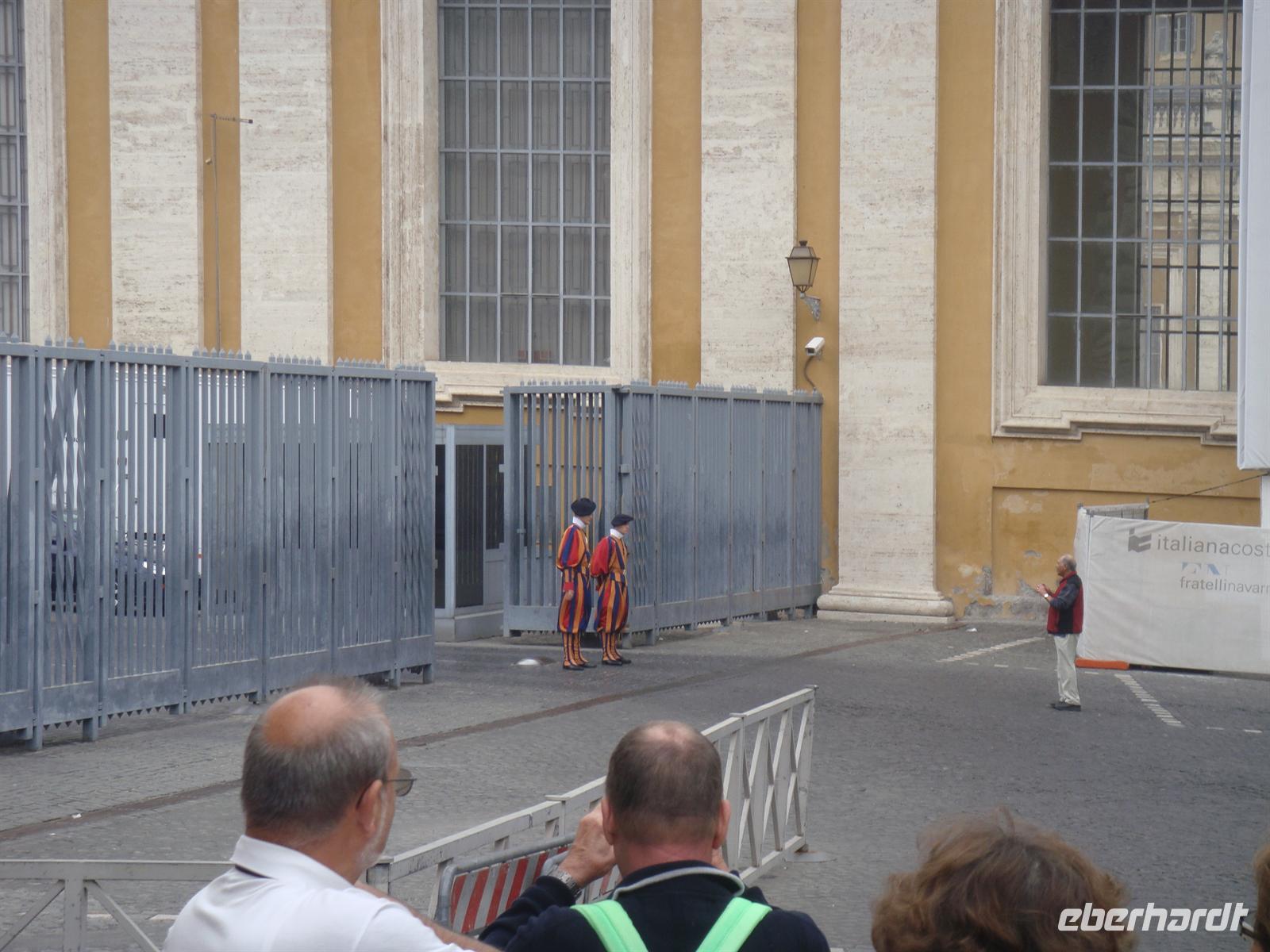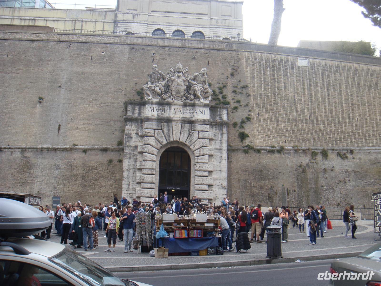 Rom erkundet man am besten zu Fuß! Wir machen uns also nach einem guten Frühstück auf zur Bushaltestelle und fahren die schon bekannte Strecke bis zur Metrostation Colosseo. Dort steigen wir in den Bus, der uns in die Nähe des kleinsten Staates der Welt bringt - zum Vatikan! Wir schlendern über den Petersplatz uns bestaunen zunächst die Menschenmassen, die sich in einer endlos langen Schlange zusammenfinden, um an die Sicherheitskontrollen des Petersdoms gelangen. Wir aber gehen zunächst zur Vatikan-Post, um die vorgeschriebenen Postkarten zu verschicken. Da wir den Besuch der Vatikanischen Museen und des Petersdoms erst am