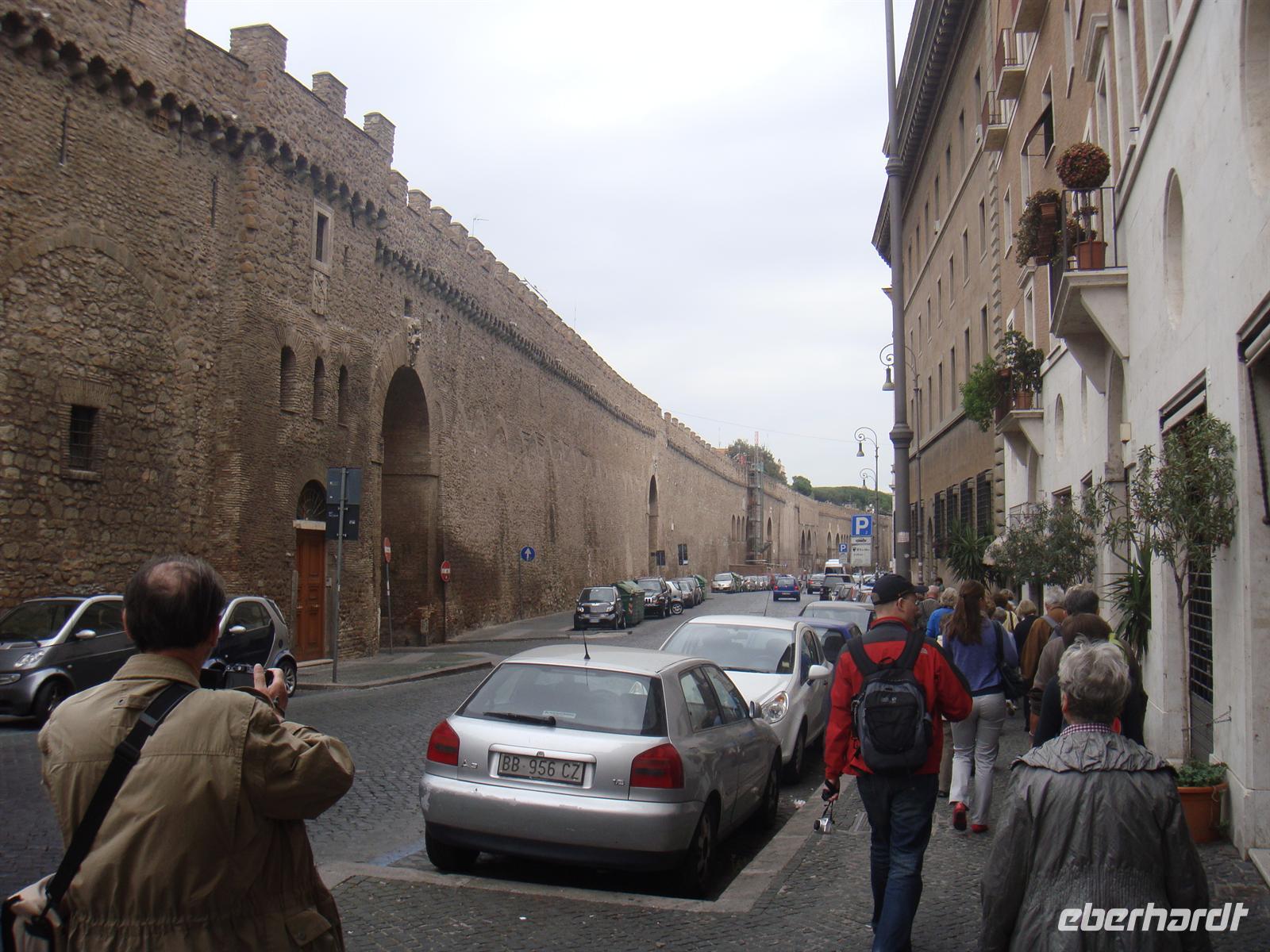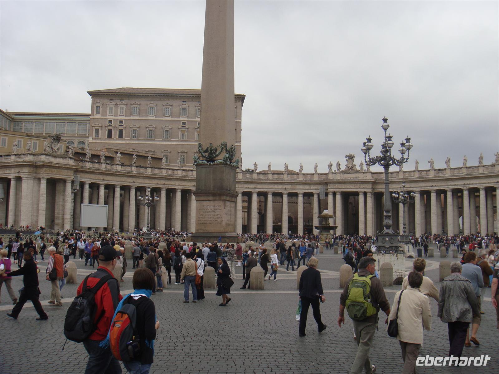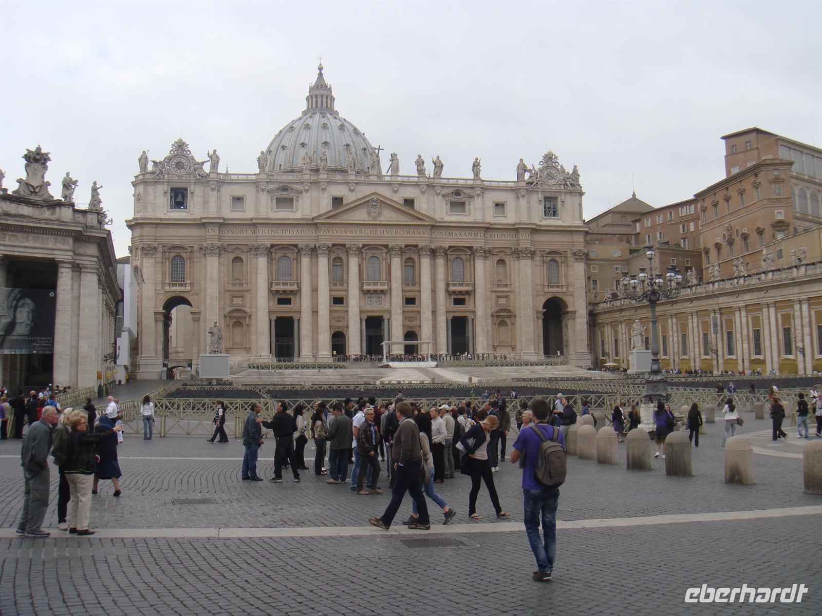 Rom erkundet man am besten zu Fuß! Wir machen uns also nach einem guten Frühstück auf zur Bushaltestelle und fahren die schon bekannte Strecke bis zur Metrostation Colosseo. Dort steigen wir in den Bus, der uns in die Nähe des kleinsten Staates der Welt bringt - zum Vatikan! Wir schlendern über den Petersplatz uns bestaunen zunächst die Menschenmassen, die sich in einer endlos langen Schlange zusammenfinden, um an die Sicherheitskontrollen des Petersdoms gelangen. Wir aber gehen zunächst zur Vatikan-Post, um die vorgeschriebenen Postkarten zu verschicken. Da wir den Besuch der Vatikanischen Museen und des Petersdoms erst am