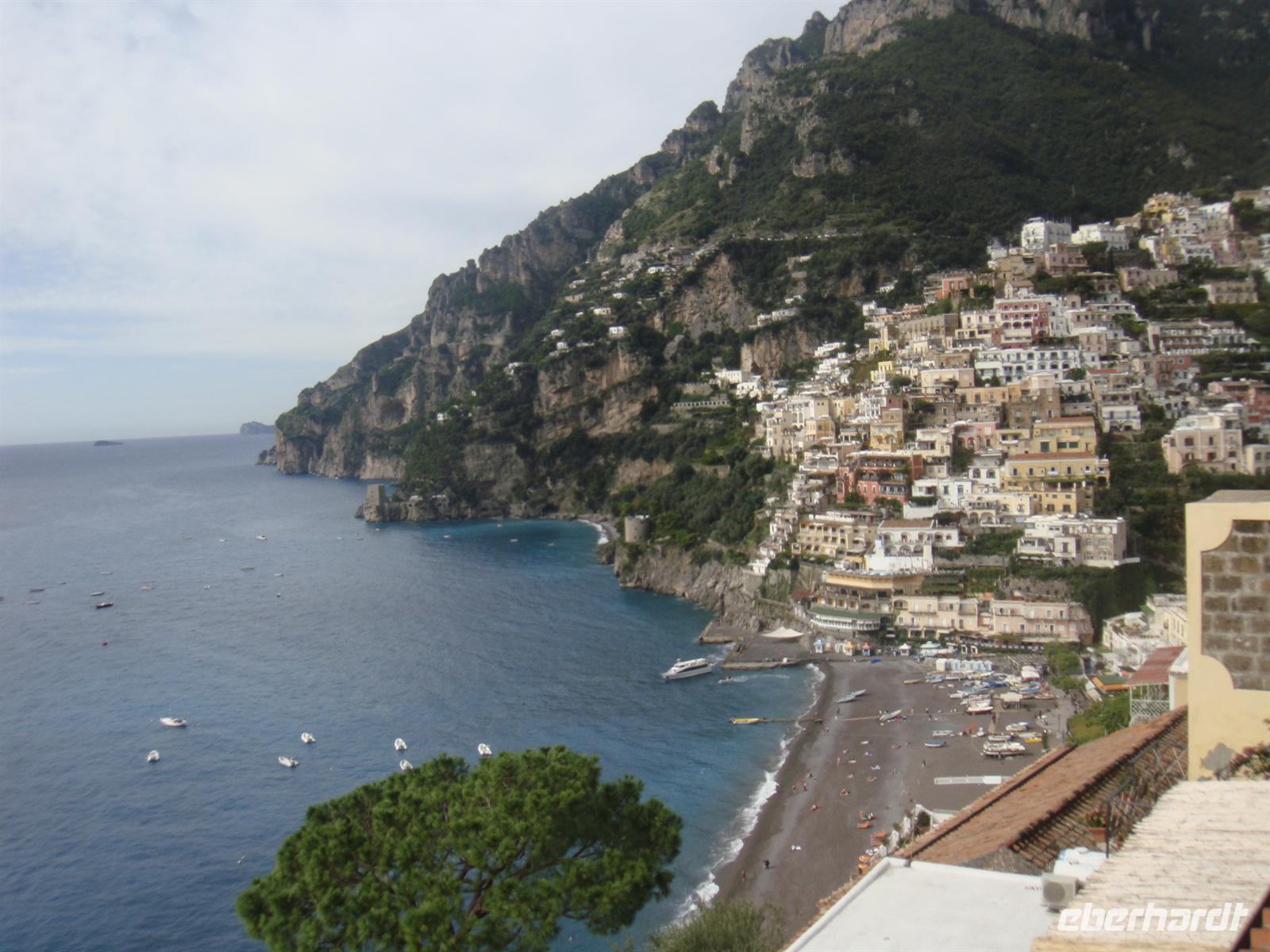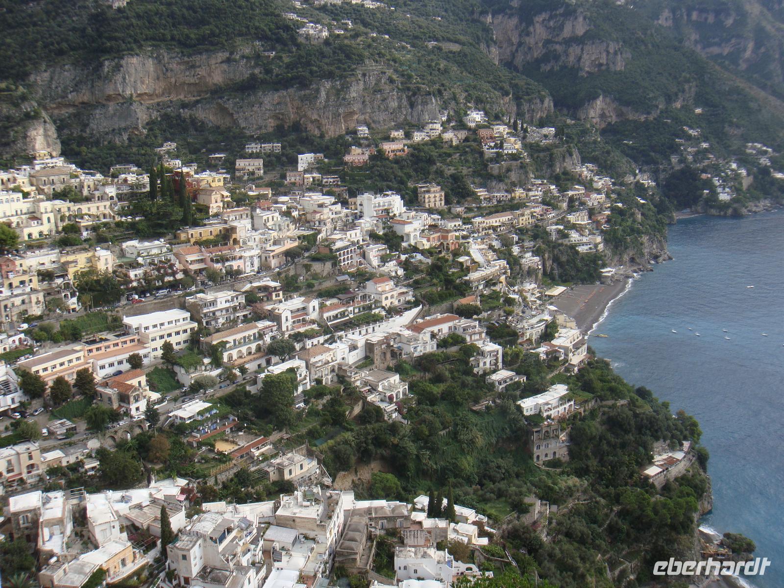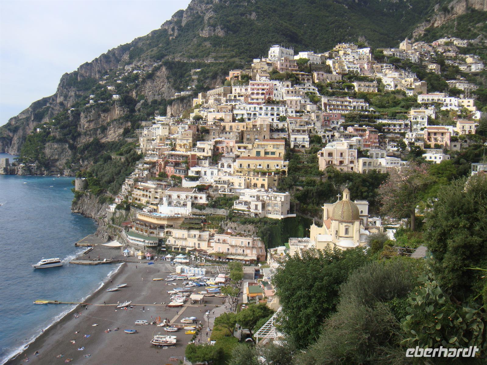 Positano gilt als die Perle der Amalfiküste. Die weißen und rosafarbenen Häuschen wurden an den steilen Hängen des und des erbaut und fallen terrassenartig zum Meer ab. Ihre märchenhaften kuppelförmigen Dächer erinnern an ein maurisches Dörfchen. Berühmt wurde Positano auch durch die in den 50er Jahren entstandene bunte und die handgefertigten Sandalen, die man in den exklusiven Boutiquen des Städtchens erstehen kann.