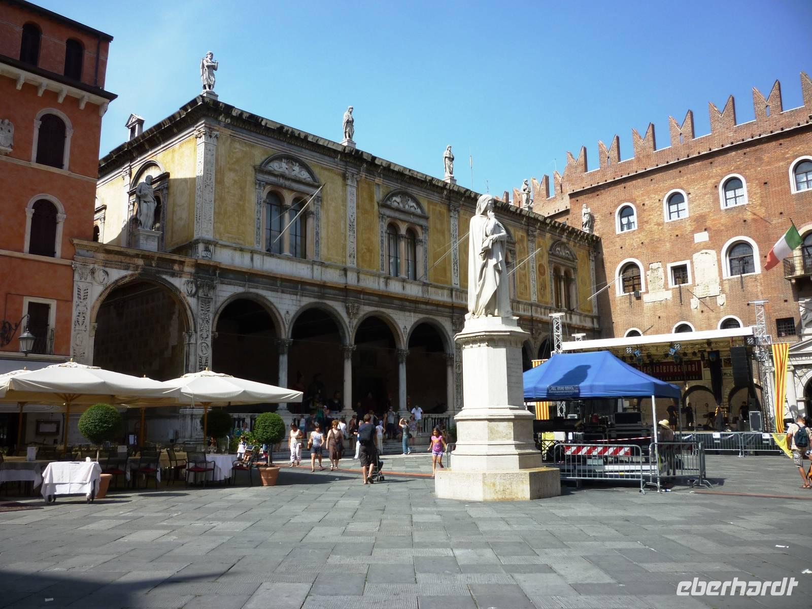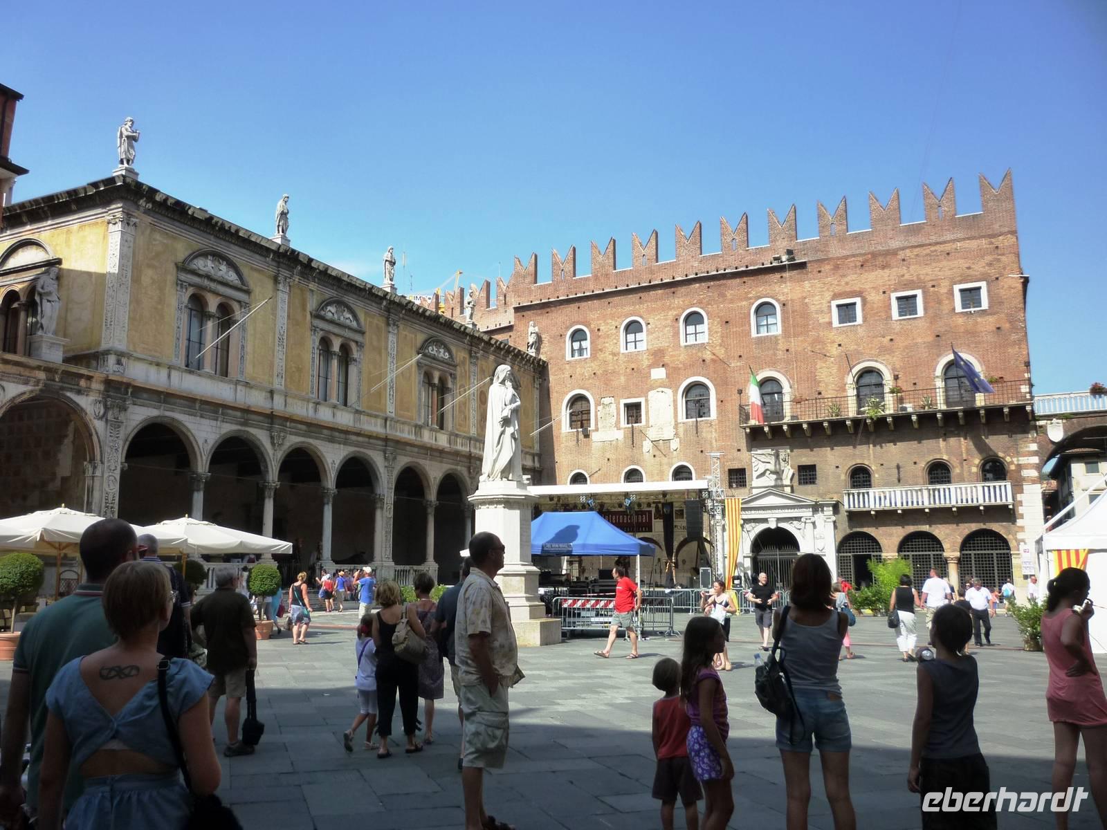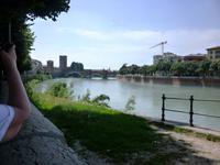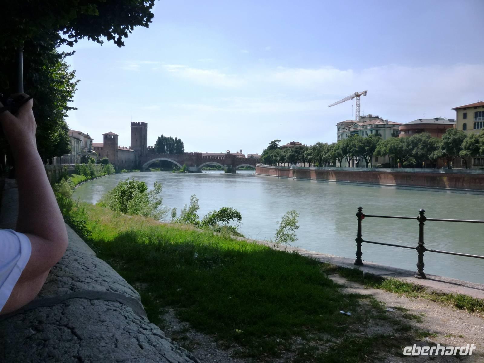 Nach zwei Stunden ging die Fahrt weiter, zunächst kurz zum Hotel, danach in die Stadt Verona, wo Stefano, der örtliche Stadtführer, schon auf uns wartete. Zunächst fuhren wir mit dem Bus an der Etsch entlang und verließen unterhalb des Castelvecchio den Bus, um zu Fuß durch die Altstadt zu laufen. Stefano vermittelte stets mit Witz und auch leichter Ironie sein Wissen über Stadt, über Bauten, Geschichte und Gegenwart.