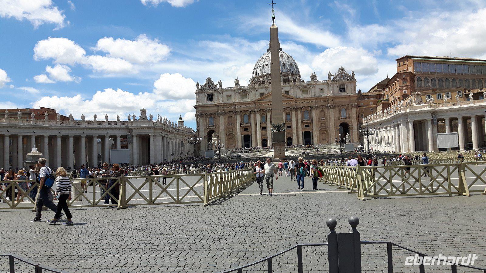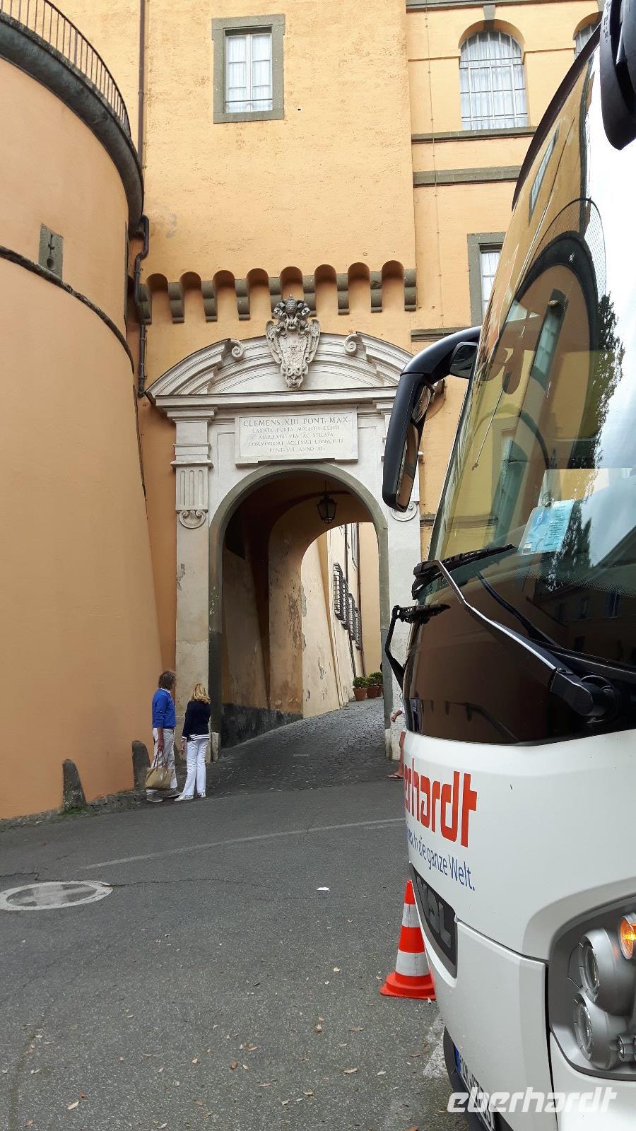 Nun dürfen wir mit „Polizeischutz" direkt vor dem Petersplatz aussteigen.