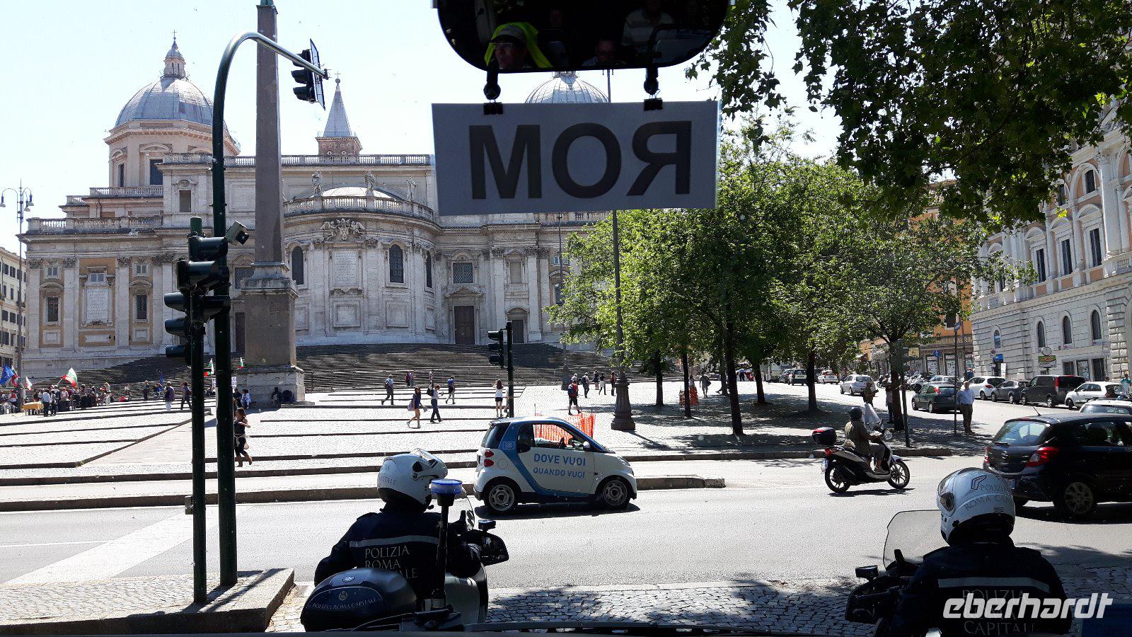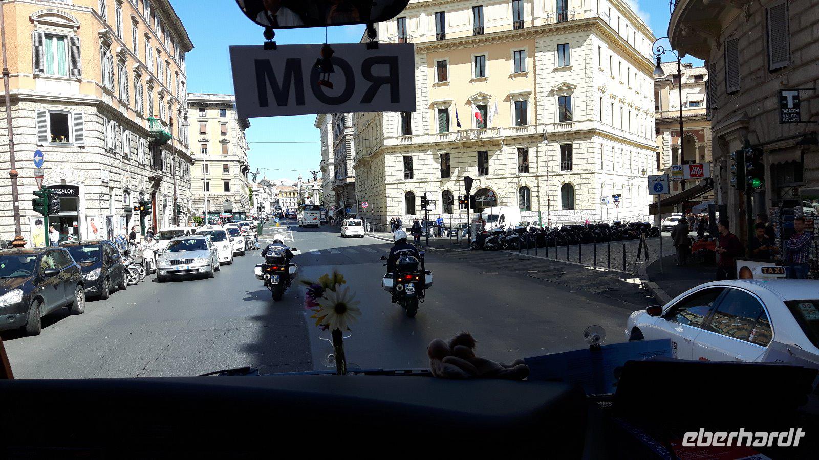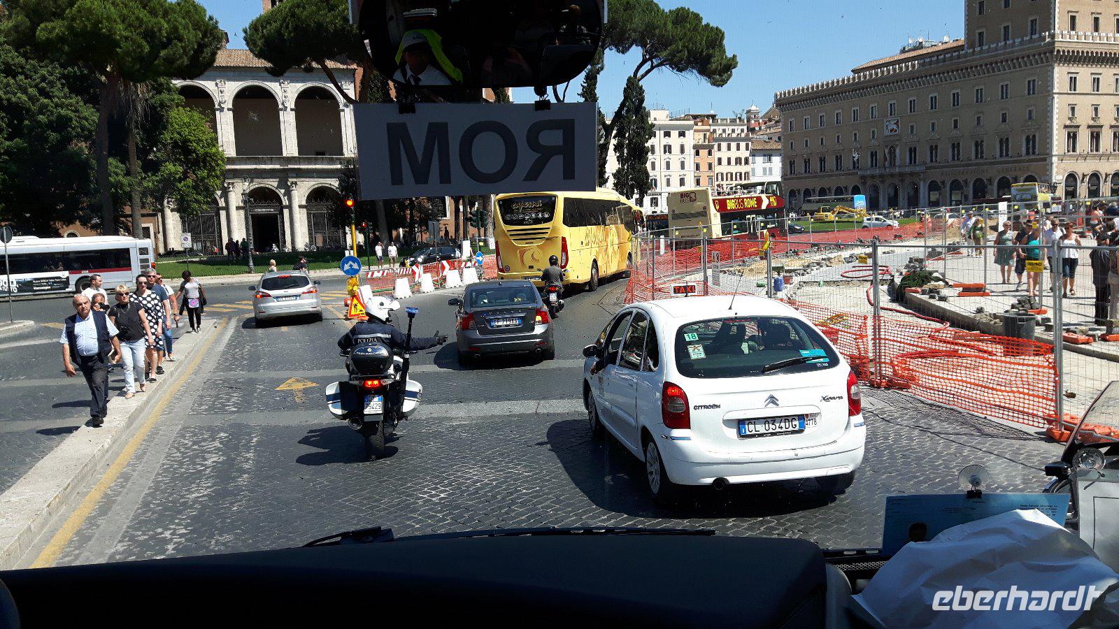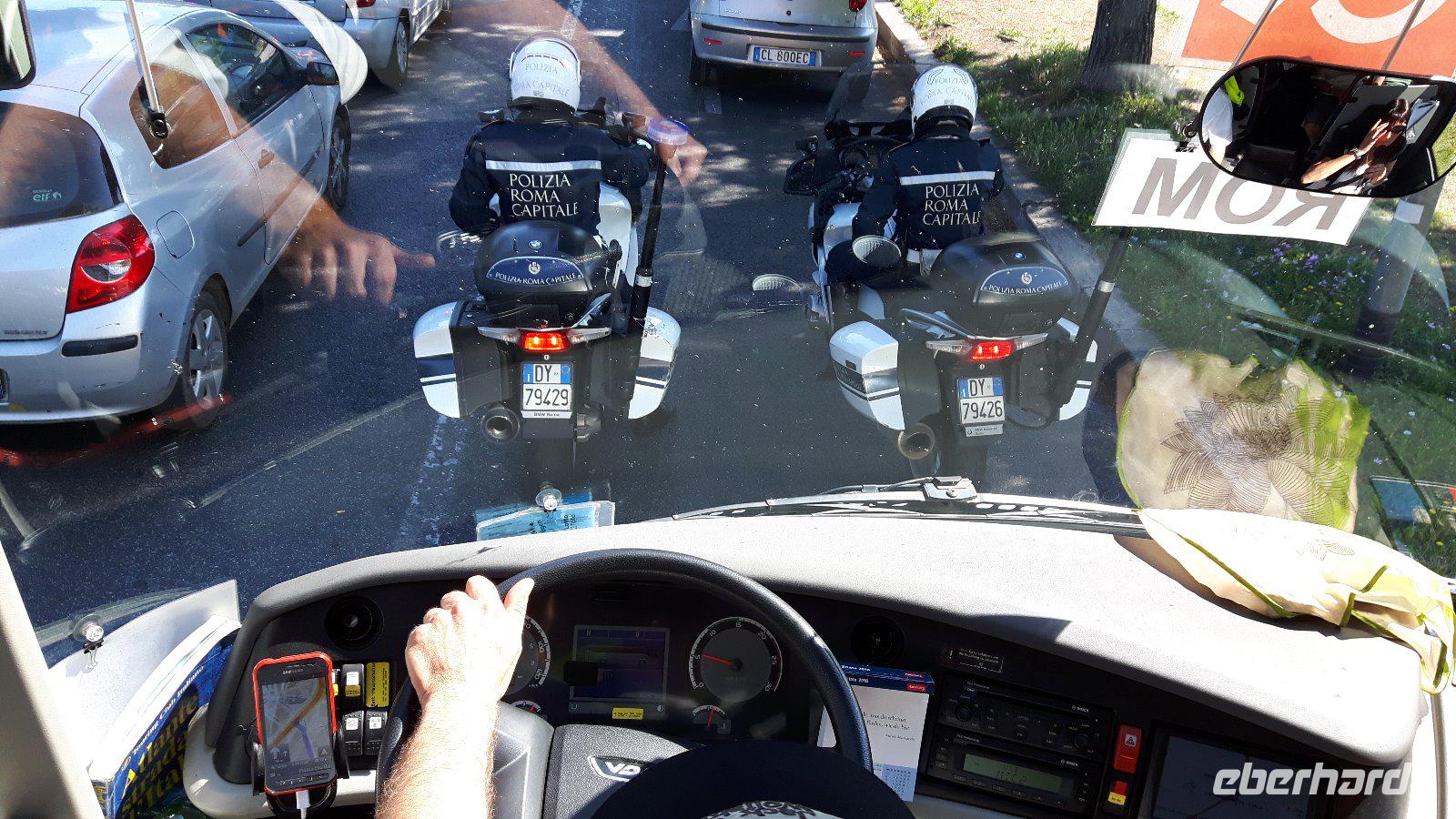 Die Polizeieskorte sorgt noch dafür, dass wir schnell wieder aus der Metropole herauskommen. Arrivederci Roma!
