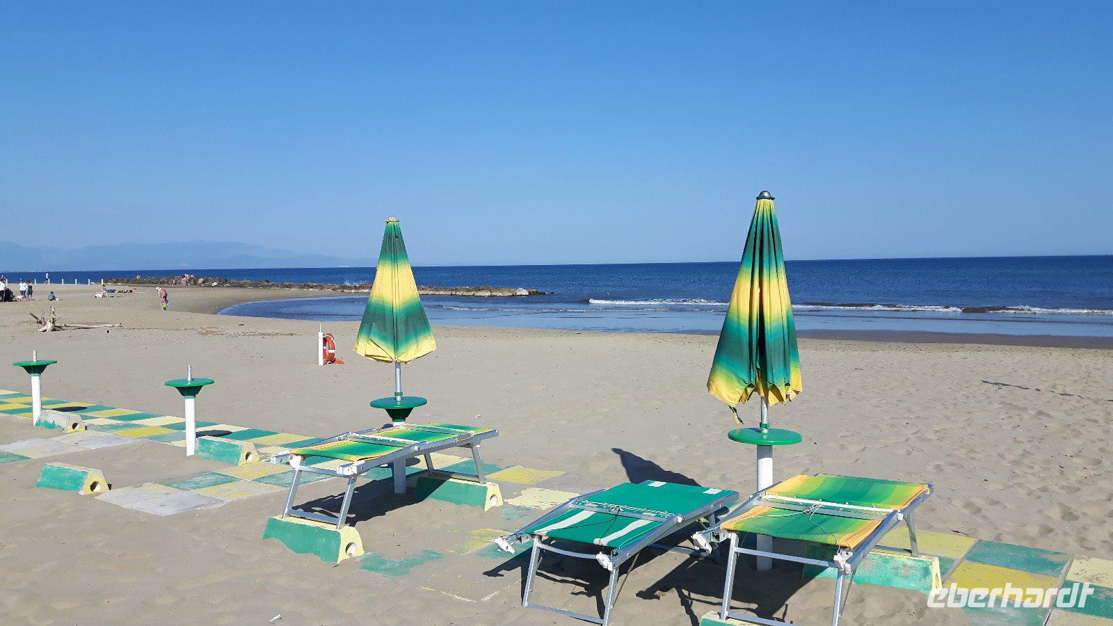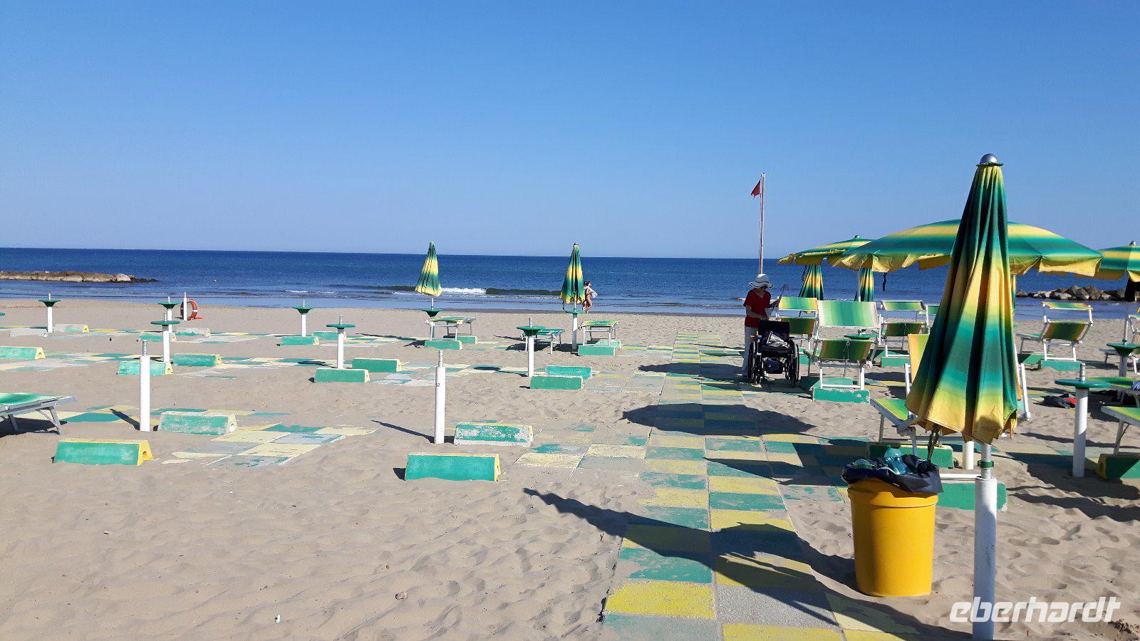 Am Nachmittag lockt uns dann das herrliche Wetter wieder an die herrlich rollstuhlgerechte Strandanlage unseres Feriendomizils.
