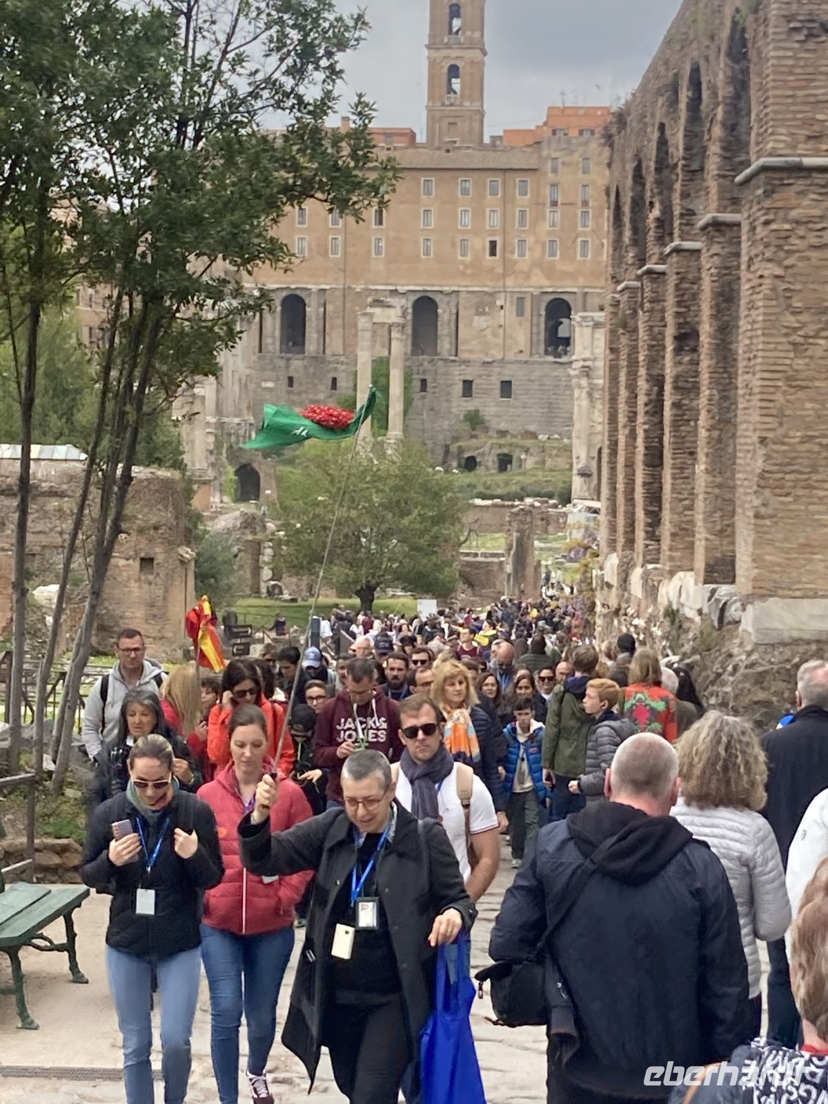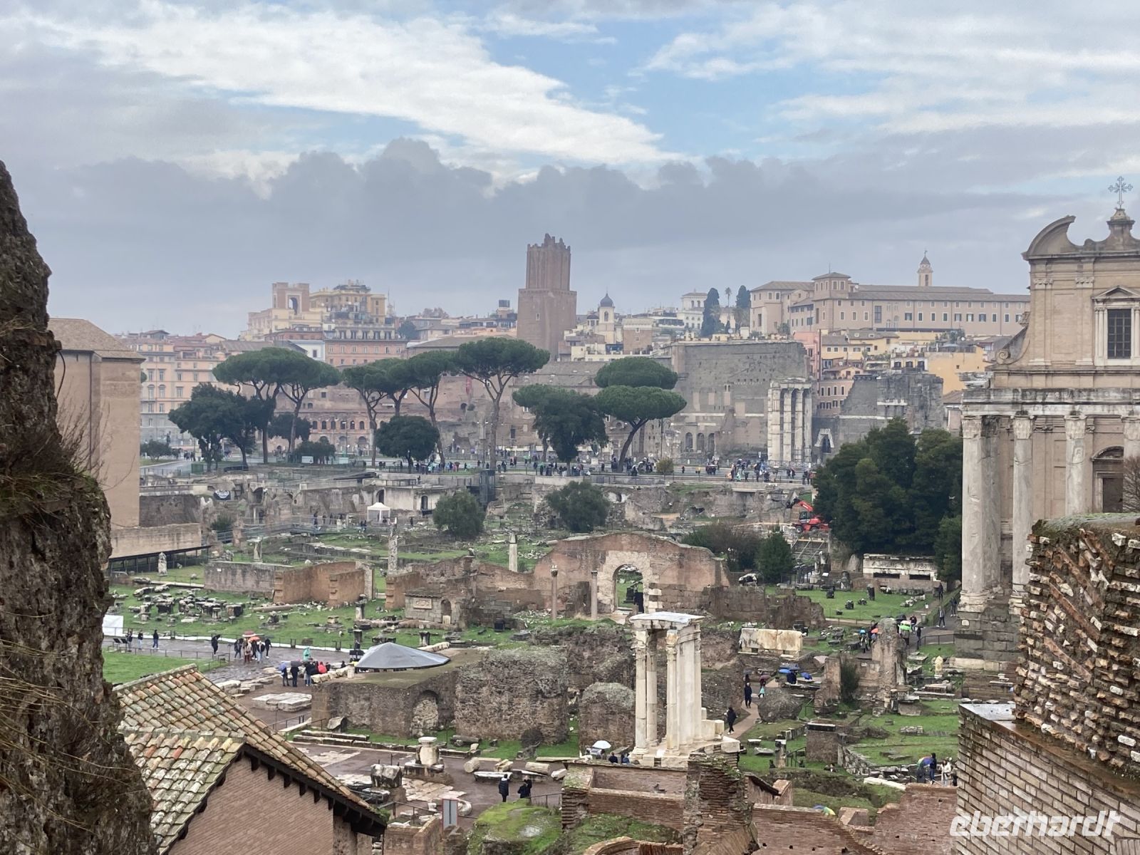 Mit der Metro gehts wieder zur Haltestelle Coloseum. Dieses lassen wir allerdings links liegen, denn unser Weg führt uns erst mal zum Forum Romanum. Wir sind früh unterwegs und so hält sich die Schlange am Eingang in Grenzen. Agnieszka unsere Stadtführern erläutert uns die historischen Zusammenhänge dieses Areals, zeigt uns die wichtigsten Gebäude und weißt uns auf Details hin, die wir glaube ich ohne Sie nicht entdeckt hätten.