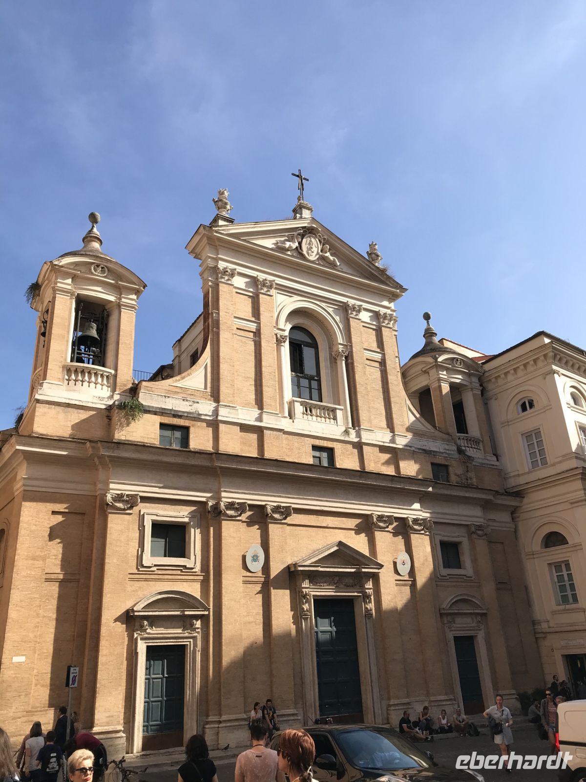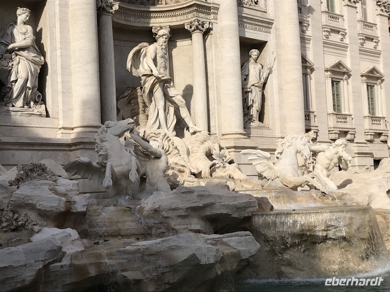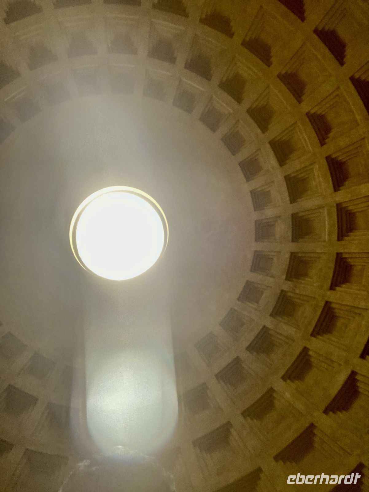 Ziele sind die markantesten Straßen, Plätze und Bauwerke, den Trevibrunnen, die Spanische Treppe, die eigentlich eine französische ist, Piazza Novona und das Pantheon. Das möglicherweise bereits unter Kaiser Trajan um 114 n. Chr. begonnene und unter Kaiser Hadrian zwischen 125 n. Chr. und 128 n. Chr. fertiggestellte Pantheon hatte mehr als 1700 Jahre lang, bezogen auf den Innendurchmesser, die größte Kuppel der Welt. Die Kuppel des Pantheons ist der bemerkenswerteste Teil des Gebäudes. Mit einem Innendurchmesser von 43,44 m ist sie bis heute das Größte, das jemals aus unbewehrtem Beton gebaut wurde. Am Scheitelpunkt der Kuppel befindet sich eine kreisrunde Öffnung von neun Metern Durchmesser, das Opaion, das neben dem Eingangsportal die einzige Lichtquelle des Innenraums darstellt. Um das hierdurch eindringende Regenwasser abzuleiten, ist der Boden des Kuppelsaals leicht zum Zentrum hin geneigt und an günstigen Stellen mit 22 kleinen Abflüssen versehen.