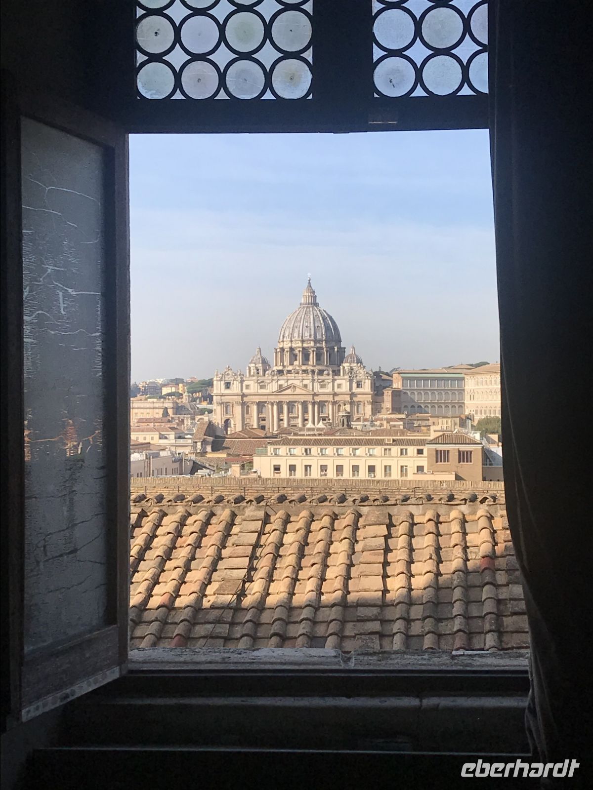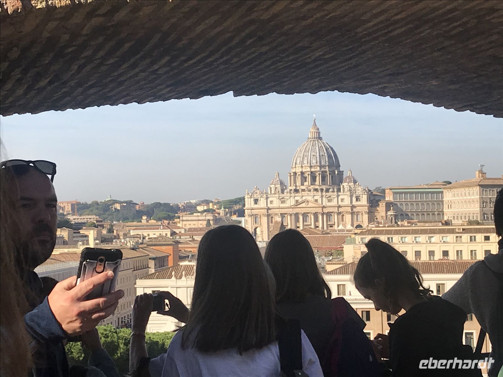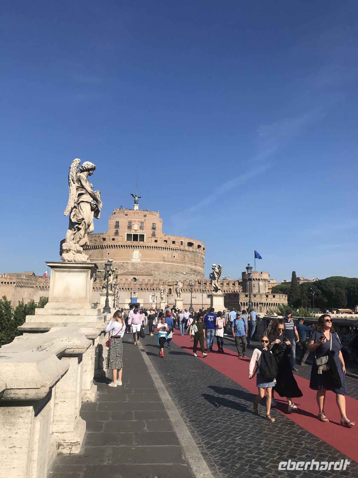 Dann war es so weit und er zeigte sich am Fenster und hielt die Neujahrsansprache. Dies war für uns alle ein erhebender Moment, der sich wohl in uns tief fest gesetzt hat. Wir genießen noch etwas den Moment um uns anschließend mit unserer Stadtführerin an der Engelsburg zu treffen. So beginnt unser heutiger Stadtrundgang und wir nähern uns über die Engelsbrücke schlendernd der Innenstadt.