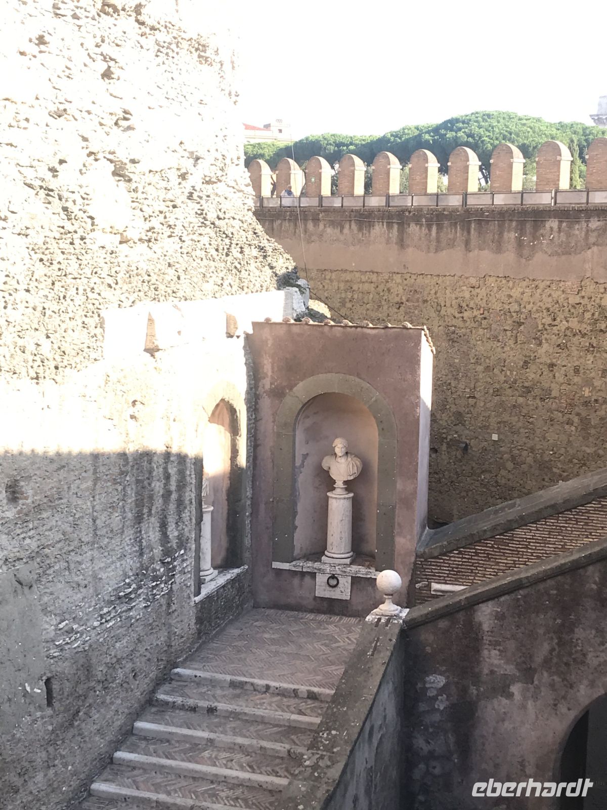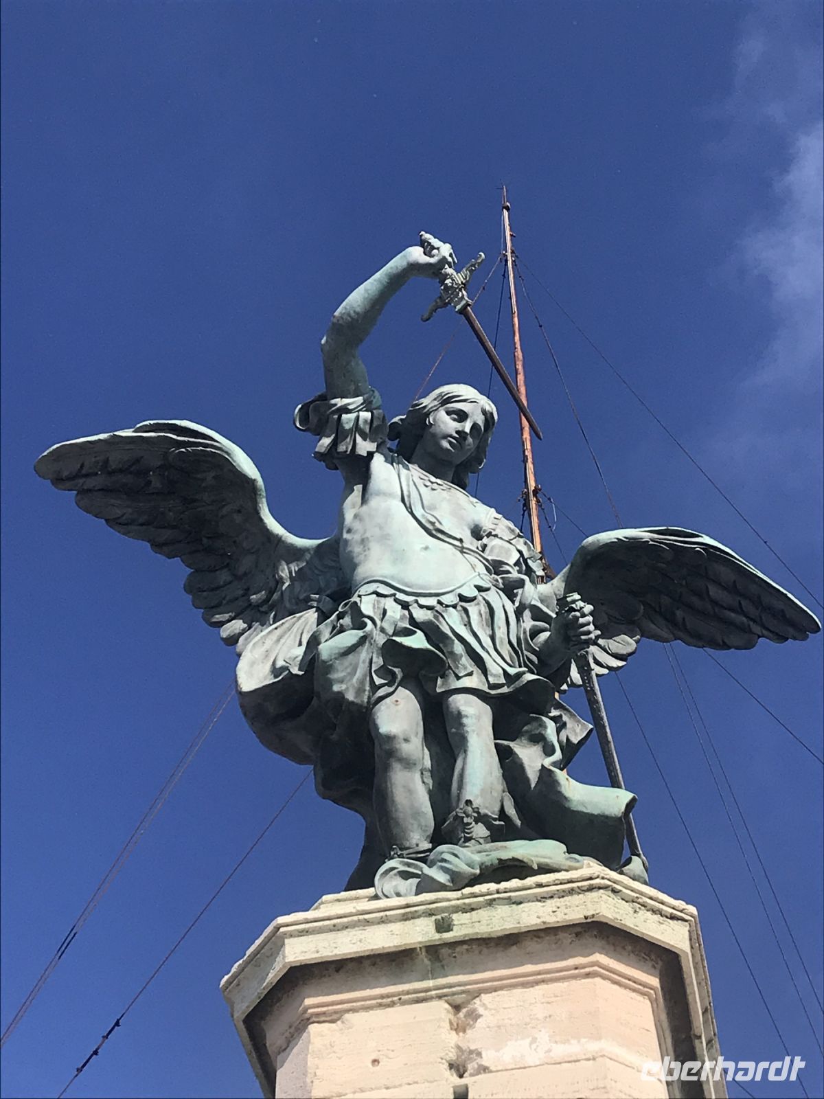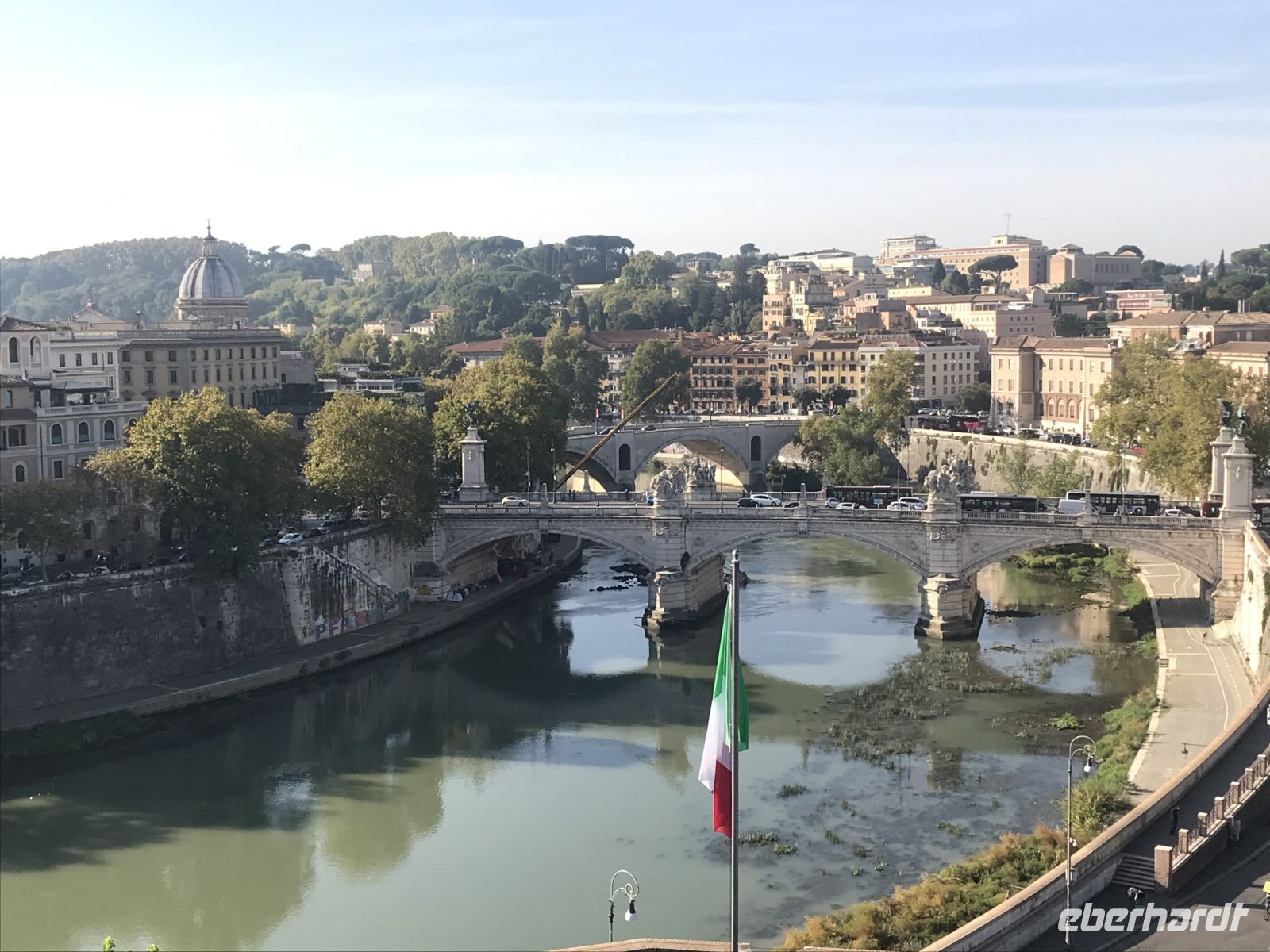 Dann war es so weit und er zeigte sich am Fenster und hielt die Neujahrsansprache. Dies war für uns alle ein erhebender Moment, der sich wohl in uns tief fest gesetzt hat. Wir genießen noch etwas den Moment um uns anschließend mit unserer Stadtführerin an der Engelsburg zu treffen. So beginnt unser heutiger Stadtrundgang und wir nähern uns über die Engelsbrücke schlendernd der Innenstadt.