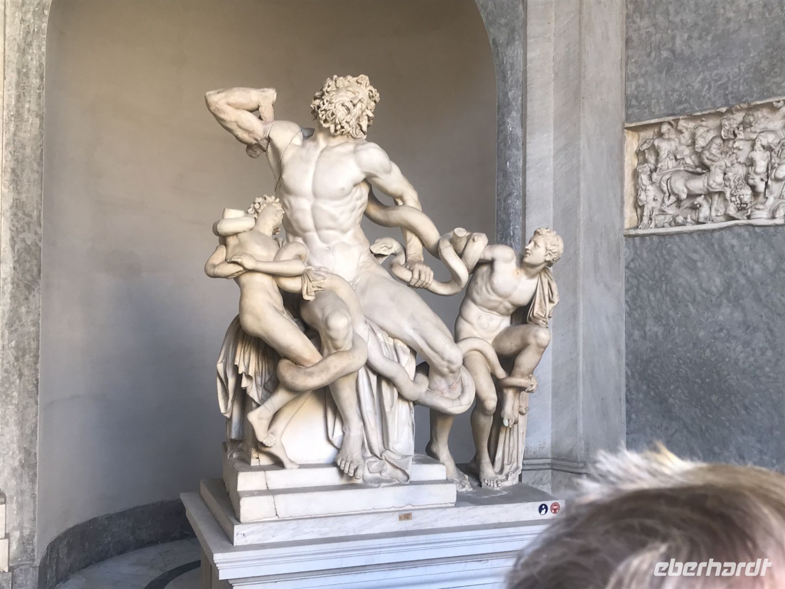Da wir bereits zu 9:00 Uhr Karten für die Vatikanischen Museen haben, werden wir mit Taxen gefahren. Obwohl sehr viele Menschen das gleiche Ziel haben, erreichen wir recht schnell die Ausstellungsräume. Tage könnte man hier verbringen, wenn man alles sehen möchte. Als Begründer der Vatikanischen Sammlungen des Vatikans gilt Papst Julius II., der bereits damals über eine nur ausgewählten Besuchern zugängliche, private Antikensammlung verfügte. Julius II. ließ an den um 1487 errichteten Palast den Cortile delle Statue anbauen. Zwischen 1506 und 1513 erwarb er für den Belvedere die berühmtesten antiken Skulpturen seiner Zeit.