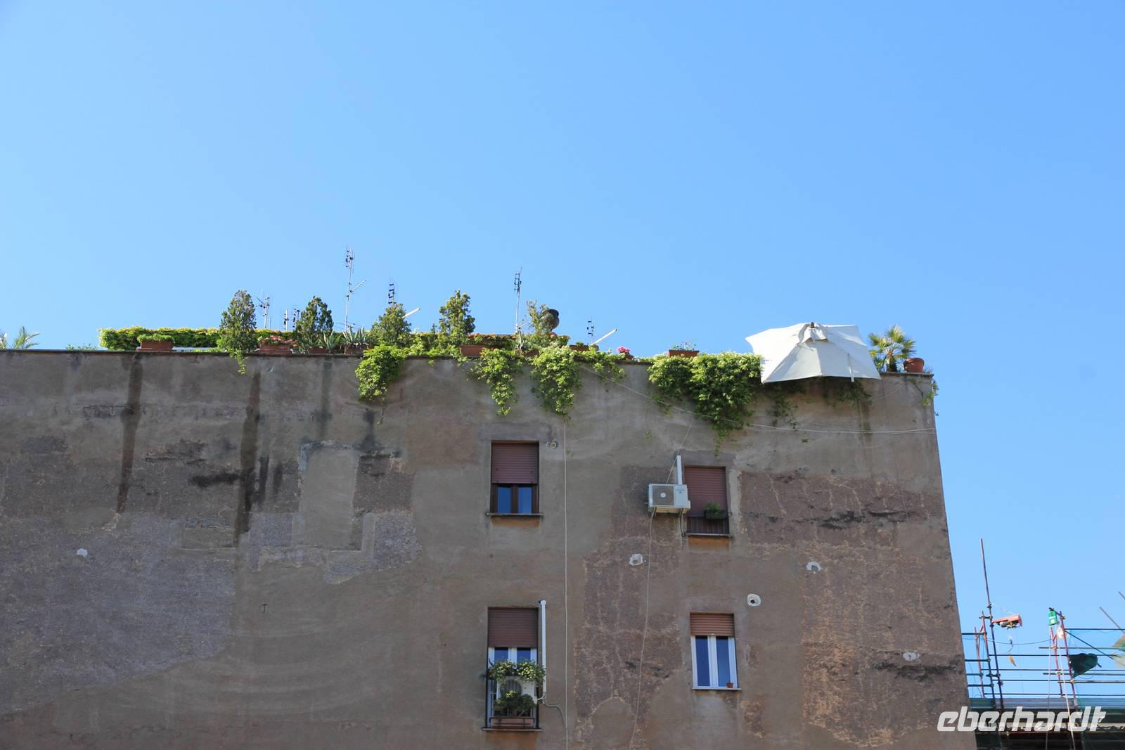 Bis zum Bustransfer zur Nachmittagsmaschine von Rom nach Berlin haben wir am Vormittag Zeit für ein ausgedehntes Frühstück und einen letzten römischen Latte Macchiato im sonnigen Innenhof des Klosters. Die Omas und Opas - und den einen Papa - treibt es zum Einkauf von Souveniren und Mitbringseln in die Geschäftsstraßen von Trastevere. Auf dem Flughafen von Fiumicino riecht es noch nach Rauch von dem Großbrand wenige Tage zuvor. Wir sind aber froh, dass wir ungehindert abgefertigt werden und pünktlich abfliegen.