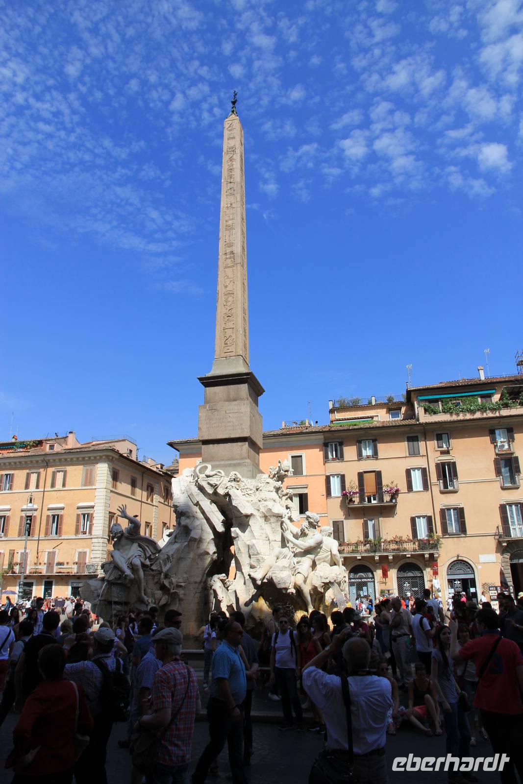 Über die Engelsbrücke mit von Schülern Berninis geschmückten Engeln, die die Marterinstrumente Jesu tragen, gelangen wir ins Straßengewirr des mittelalterlichen Roms. Auf der Piazza Navona erfahren wir Interessantes über den Barock Roms und seine Unterschiede zum uns vertrauten Dresdner Barock.