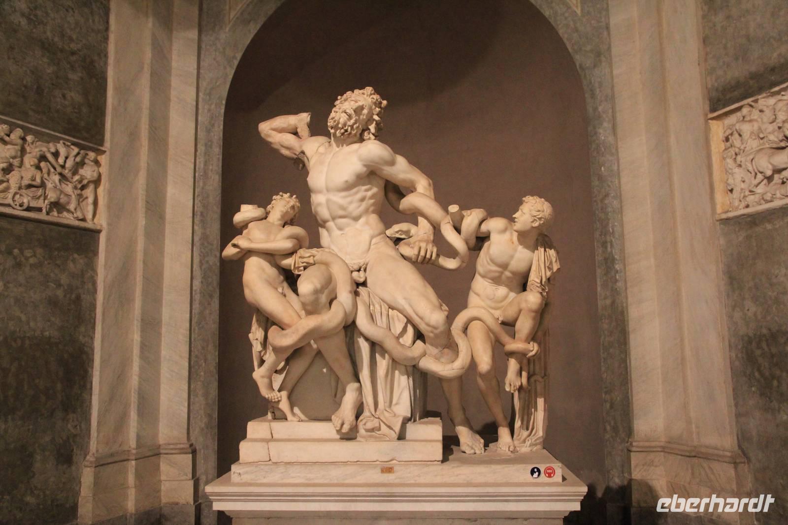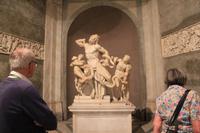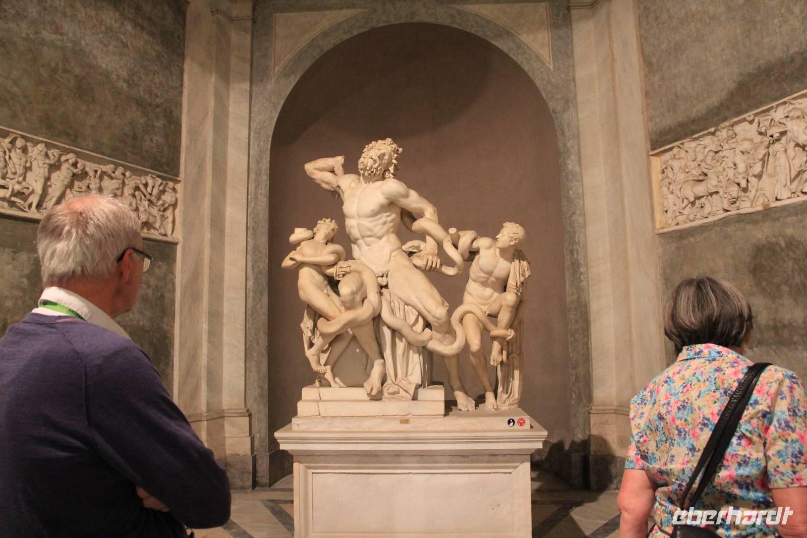 Nach einer Erholungspause im Hotel gehen wir zum frühen Abendessen ins Ristorante Osteria Rugantino. Ein Bus bringt uns dann pünktlich 20 Uhr zur Abendbesichtigung in den Vatikanischen Museen. Der warme, sommerliche Abend, das besondere Licht der blauen Stunde und die kluge Beleuchtung der Ausstellungsräume intensivieren unser Erleben der Kunstwerke aus zweieinhalb Tausend Jahren. Wir bestaunen insbesondere die Laokoon-Skulptur, den Bronze-Herkules und den Torso von Belvedere in den Antikensammlungen, durchqueren die Pinakothek und streben dem Höhepunkt der Besichtigung zu. Die Sixtinische Kapelle, zu der wir vor der Besichtigung durch Agnieszka intensiv-inhaltsreich vorbereitet wurden, erleben wir ohne dichtes Gedränge und inmitten ergriffener, schweigender und nach oben schauender Besucher. Michelangelos Deckenfresco und Jüngstes Gericht, aber auch die eine Generation älteren Gemälde Ghirlandaios, Peruginos, Rosellis und Boticellis erstrahlen farbenfroh und gut beleuchtet. Beeindruckt von dem erhebenden Kunsterlebnis verlassen wir die Vatikanstadt und fahren wir zum Hotel zurück. Wir haben fast 20.000 Schritte und 13 Kilometer Fussweg hinter uns.