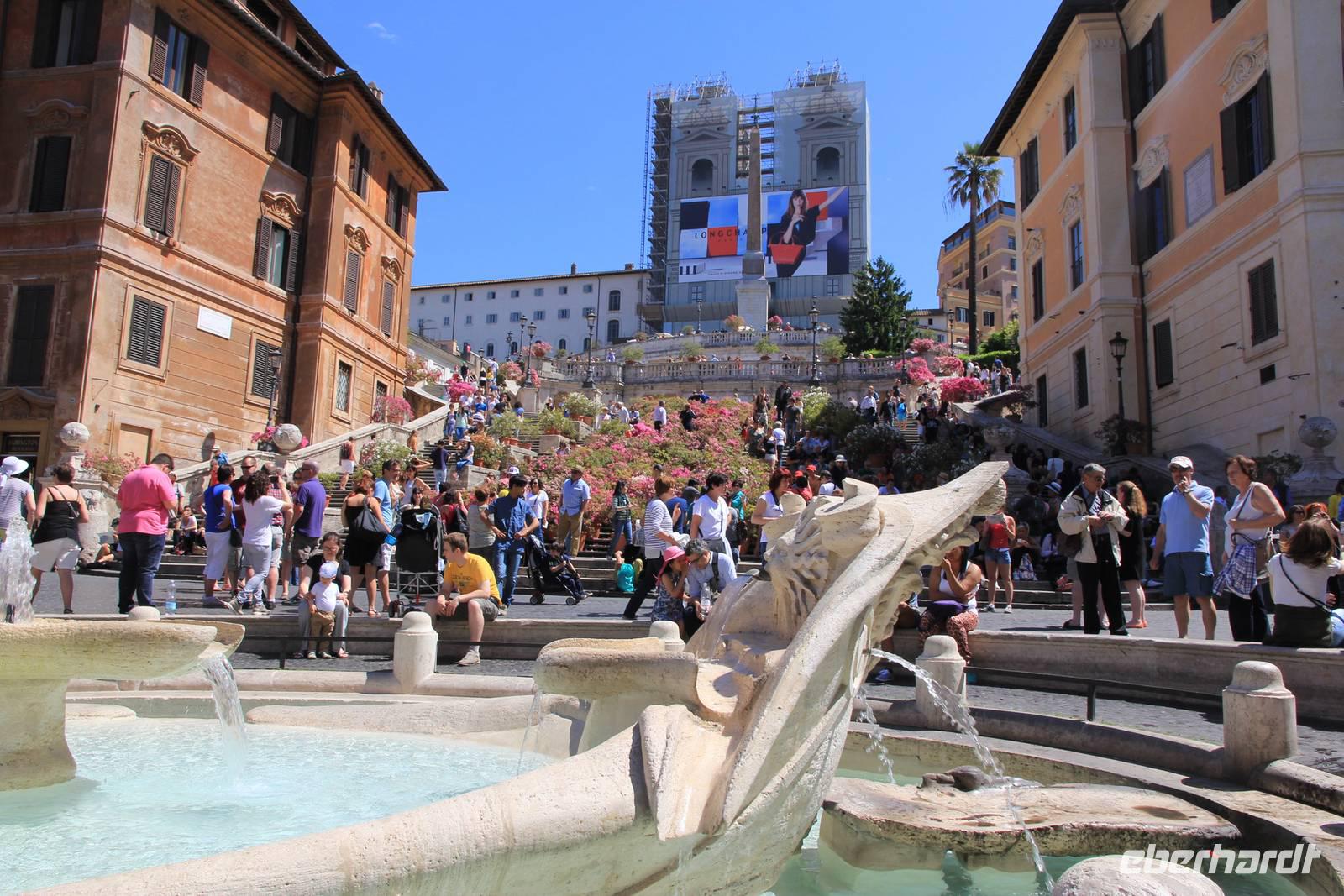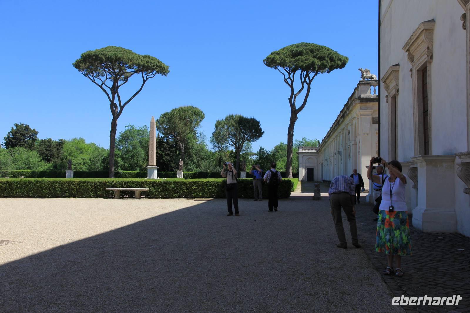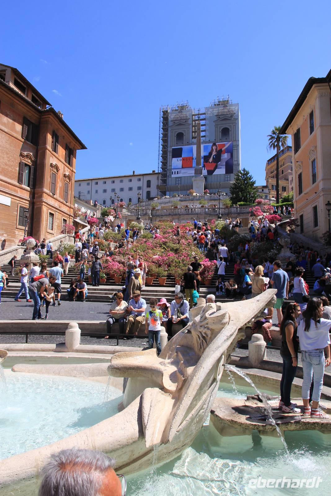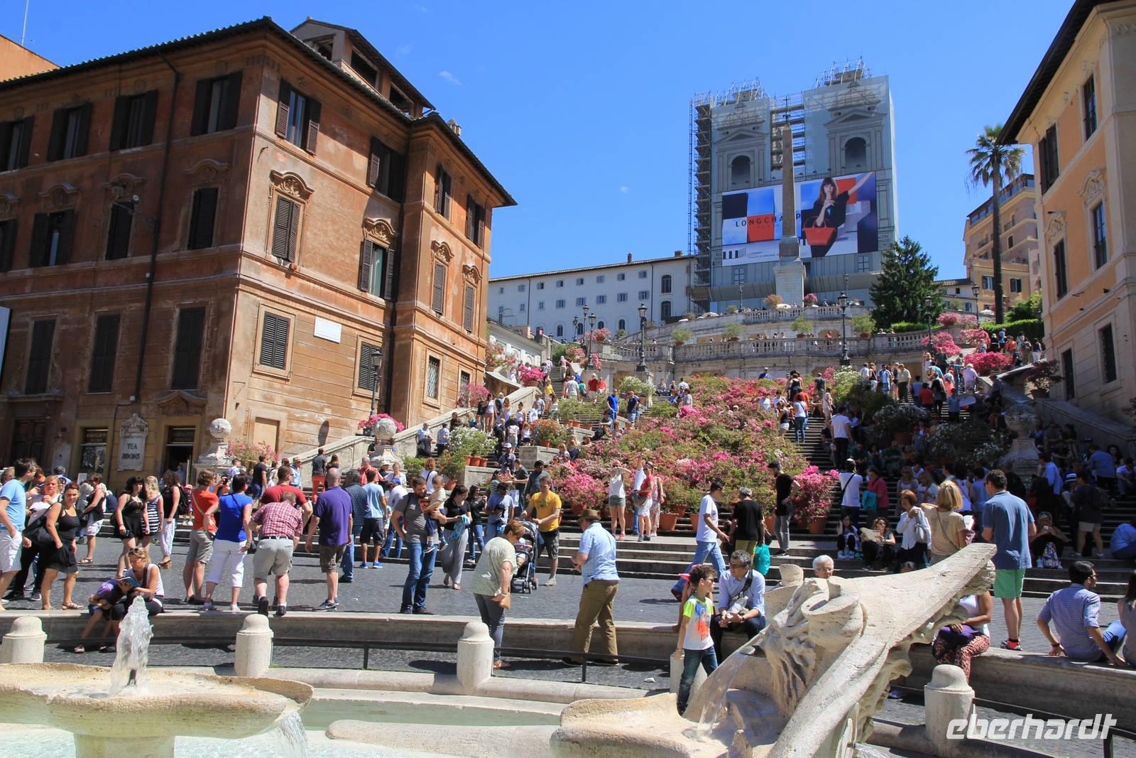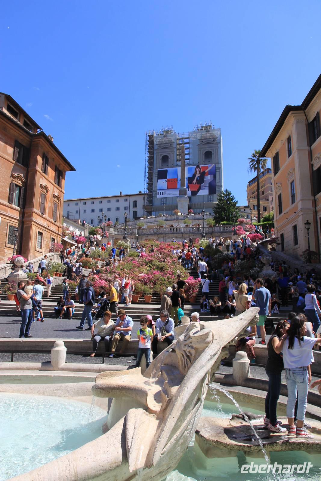 Heute führt uns Reiseleiterin Susanne durch den Tag: wir beginnen am Largo Argentina, besichtigen das Pantheon, streifen den Trevi-Brunnen, der immer noch wegen der Restaurierung ohne Wasser und eingerüstet ist, und streben wir der Spanischen Treppe zu. Nach ihrer Besteigung gelangen wir zu einem weißen Renaissance-Gebäude, welches wir schon von allen Aussichtspunkten der Stadt aus sehen konnten: