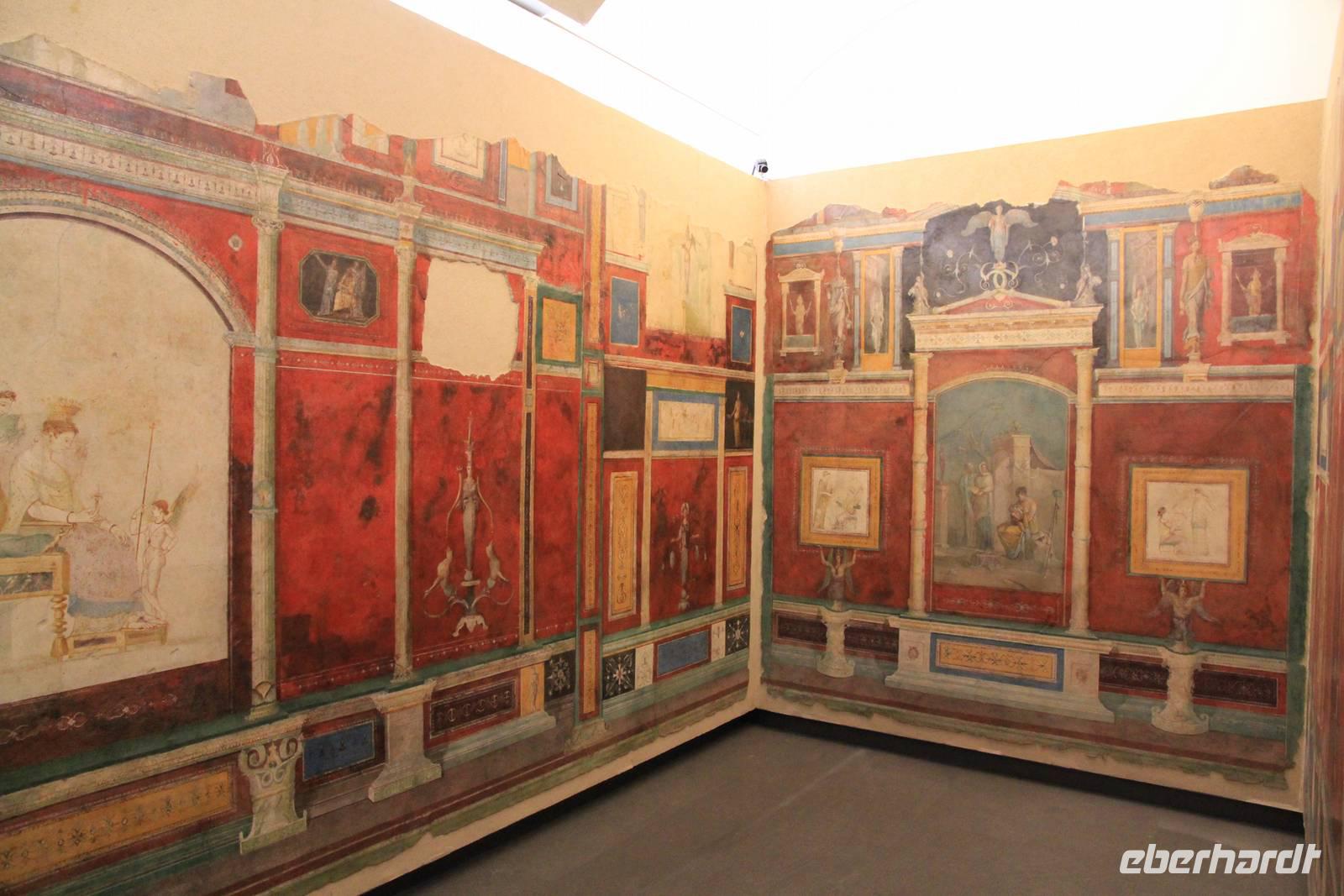 Nach der Metrofahrt Richtung Stazione Termini besuchen wir die nach Athen wichtigste Sammlung antiker Kunst im Palazzo Massimo, das Museo Nazionale Romano. Diese Sammlung verändert unser Vorstellungsbild von der Antike als einer Welt hell gekleideter Menschen in hellen, fast weißen Marmorpalästen. Wir sehen in Ausgrabungen gerettete antike Frescen, z.B. aus dem Esszimmer (Triclinum) der Villa Livia a Prima Porta, deren Ruinen erst Ende des 19. Jhdt. auf dem Gelände Villa Farnesini entdeckt wurde, die uns die Farbigkeit und lebendige Malerei der Wohnungen nachweist. Antike Skulpturen, die den menschlichen Körper vollendet darstellen und reich verzierte Sarkophage unterstreichen die Reife und Kultur und die Kunstfertigkeit der Römischen Antike. Unglaublich, dass dieser Kunstsinn und das entstprechende Handwerk nach dem Ende Roms für Jahrhunderte bis zur Wiederentdeckung in der Zeit der Renaissance verlorenging...