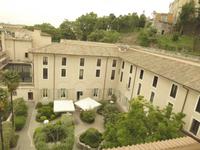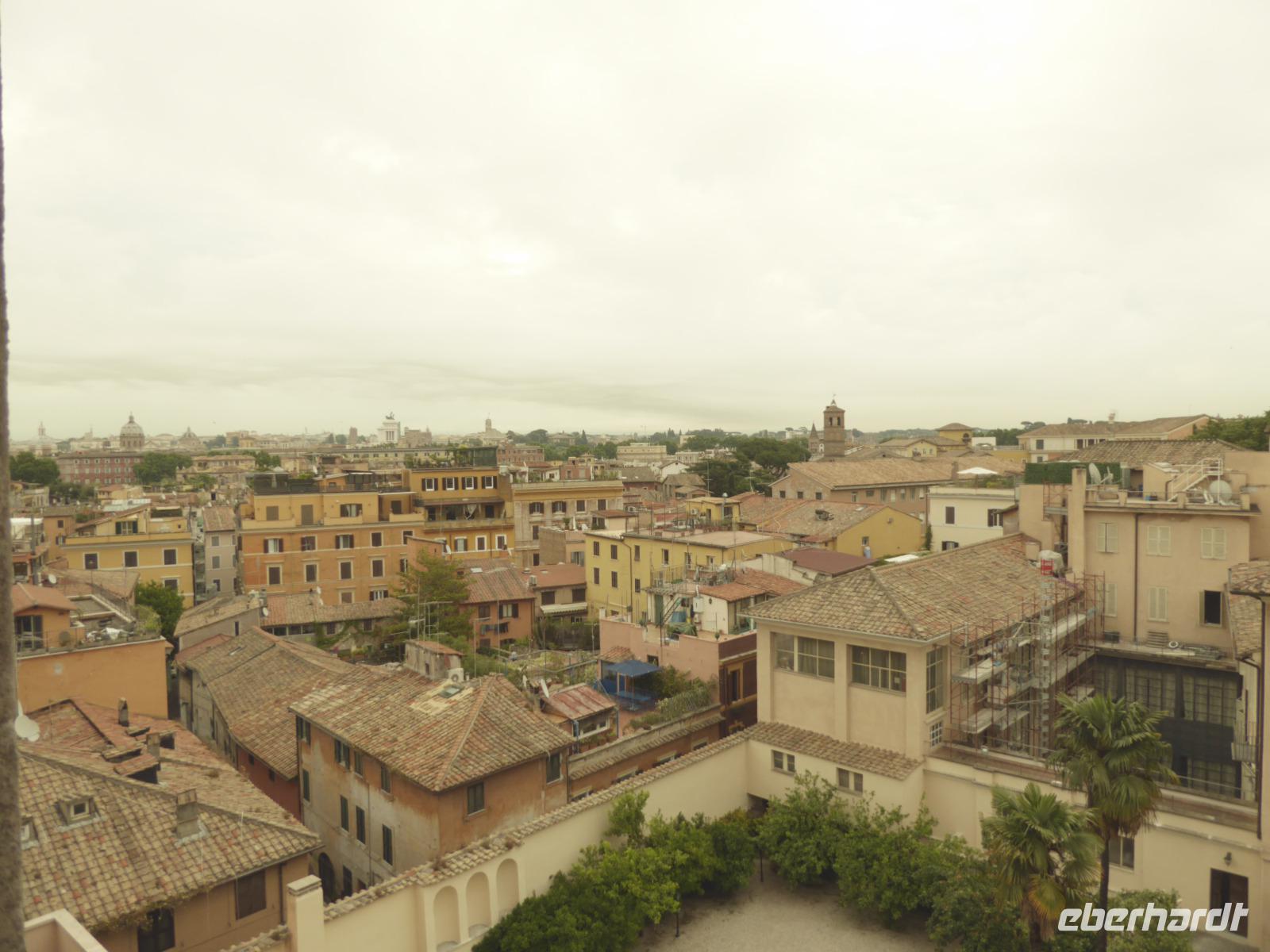 Die Rom-Reisegruppe Eberhardt wurde pünktlich durch Zubringer zum Flughafen Tegel gebracht und traf gegen 13.30 Uhr im Hotel Donna Camilla Savelli an der Via Garibaldi in Trastevere ein. Dem Hotel merkt man an seiner Bausubstanz bei näherem Hinschauen an, dass es früher als Kloster diente. Kein anderer als der Baumeister Bernini hatte im damaligen frühen 17.Jahrhundert Entwürfe für die Errichtung dieses Klosters erstellt.