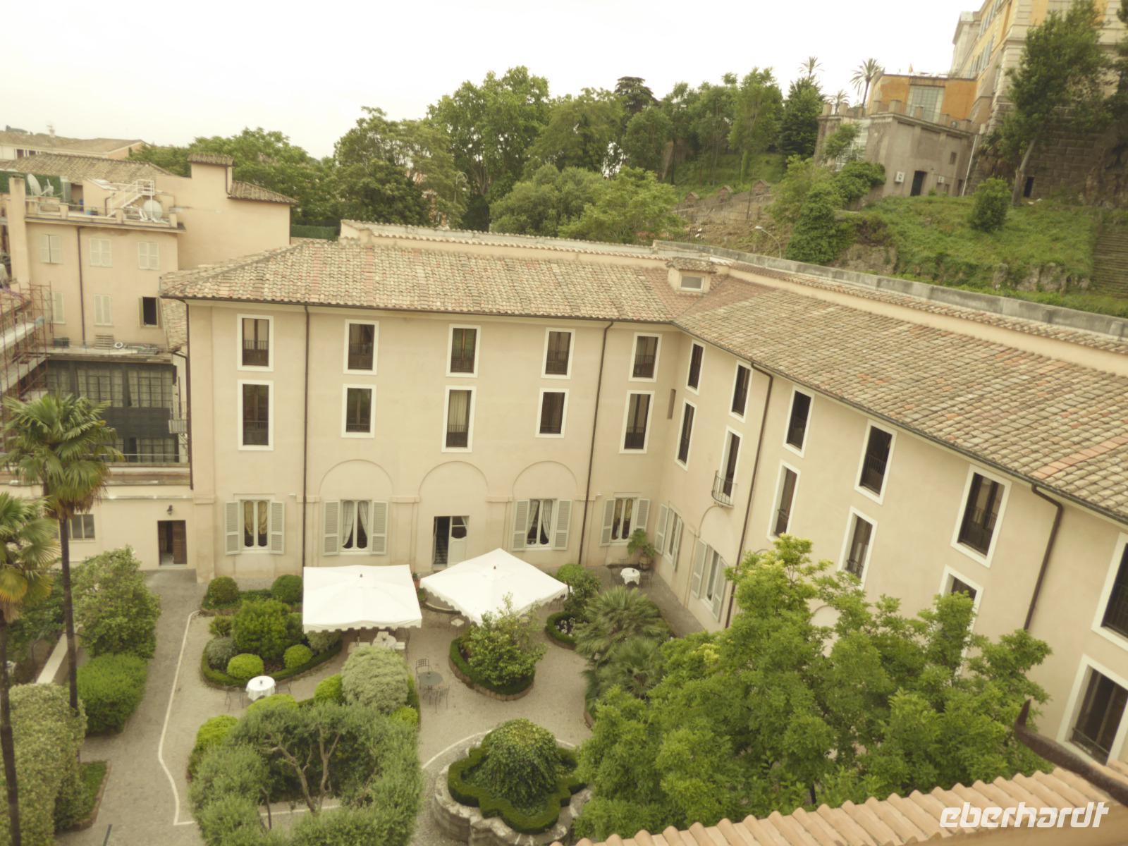Alle Müdigkeit war schnell verflogen und so trafen wir uns nach einer Ruhepause und dem Empfang der Gäste, die nicht mit unserer Gruppe von Berlin nach Rom geflogen waren, zunächst zu einem Begrüßungsdrink im Garten des Hotels ein.