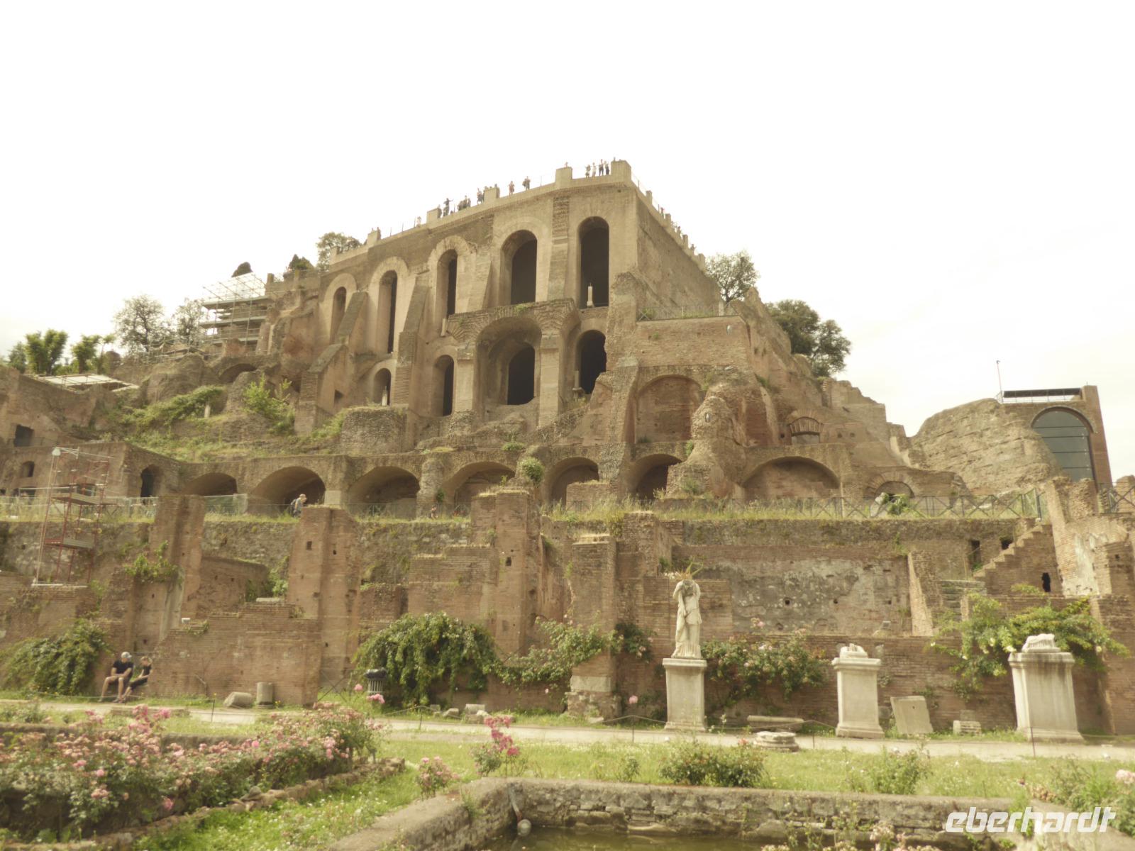 Aber auch das Forum Romanum bietet grandiose Eindrücke, denn dieser heutige archäologische Park mit Ruinen aus allen Epochen des römischen Imperiums läßt etwas von der Atmosphäre der Stadt zur damaligen Zeit aufleben.Nach einer Mittagspause gelangten wir zum Aventin gegenüber des Domus Augustana, und zu unseren Füßen lag der Circus Maximus mit seinen gewaltigen Dimensionen. Die „Vergnügungsmeile" zu römischer Zeit ist heute nach vielen Zerstörungen trotzdem noch gut zu erkennen.