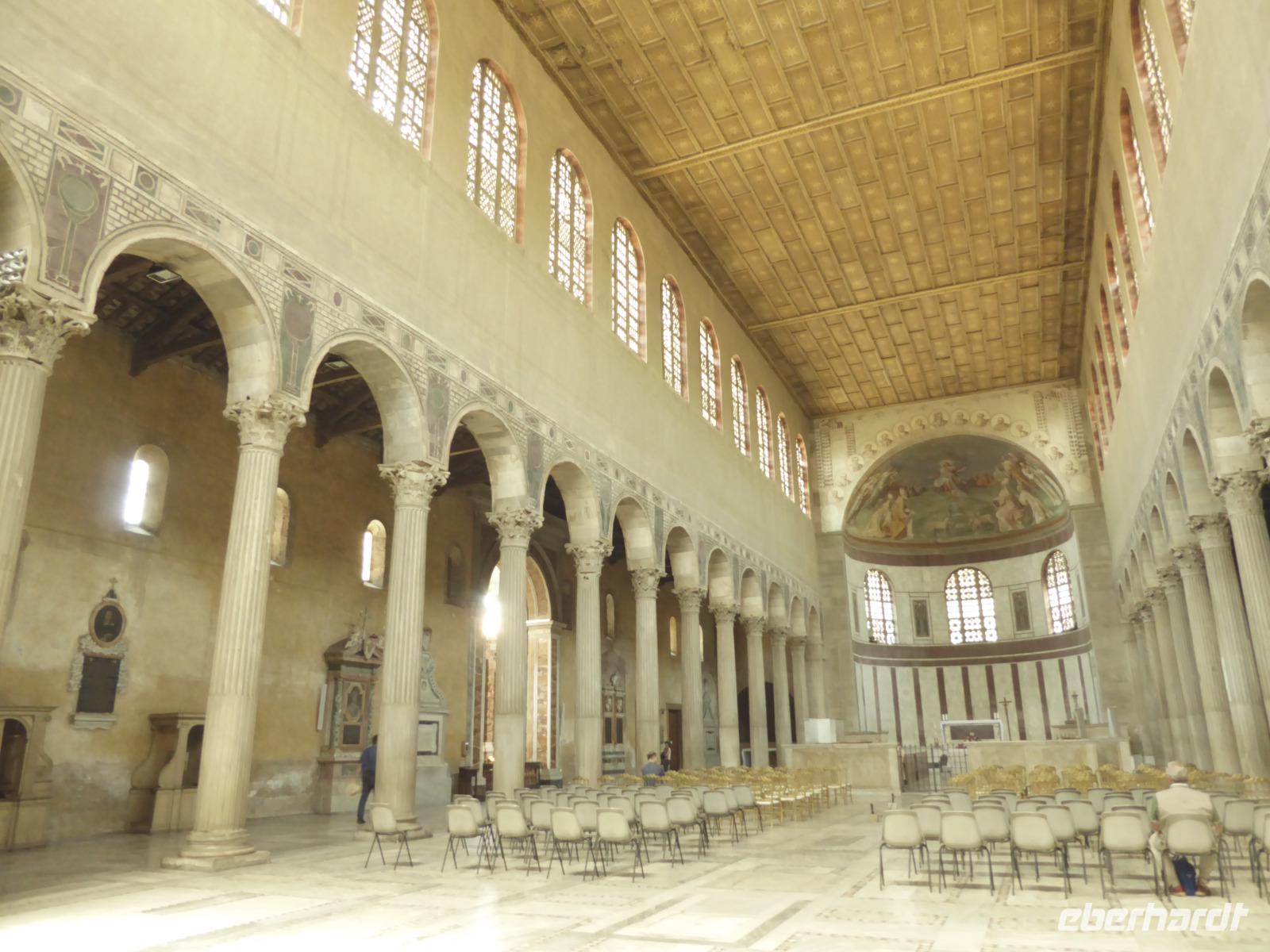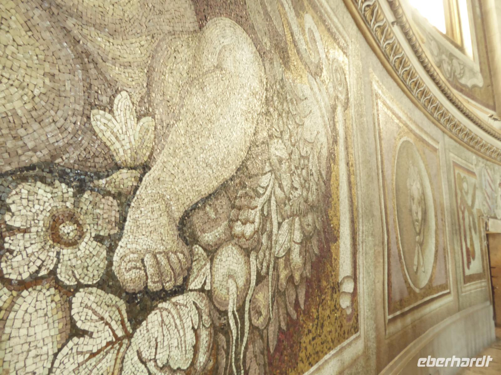 Der Weg zur Cestius-Pyramide war nicht weit und von dort aus fuhren wir mit der Bahn nach Trastevere. Zum Abschluss dieses Tages befanden wir uns, nach einem Spaziergang über die Tiberinseln, wieder in diesem uns schon vertrauten Stadtviertel und erkundeten die mit reichhaltigem Golddekor geschmückte älteste Marienkirche Roms, St. Maria in Trastevere.