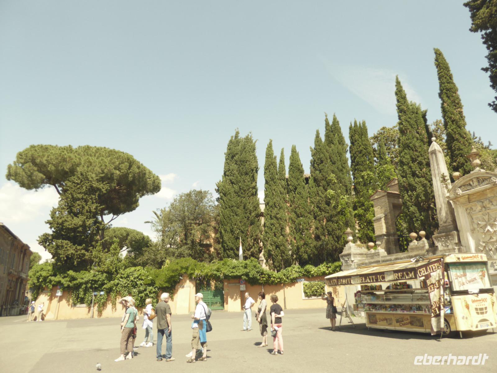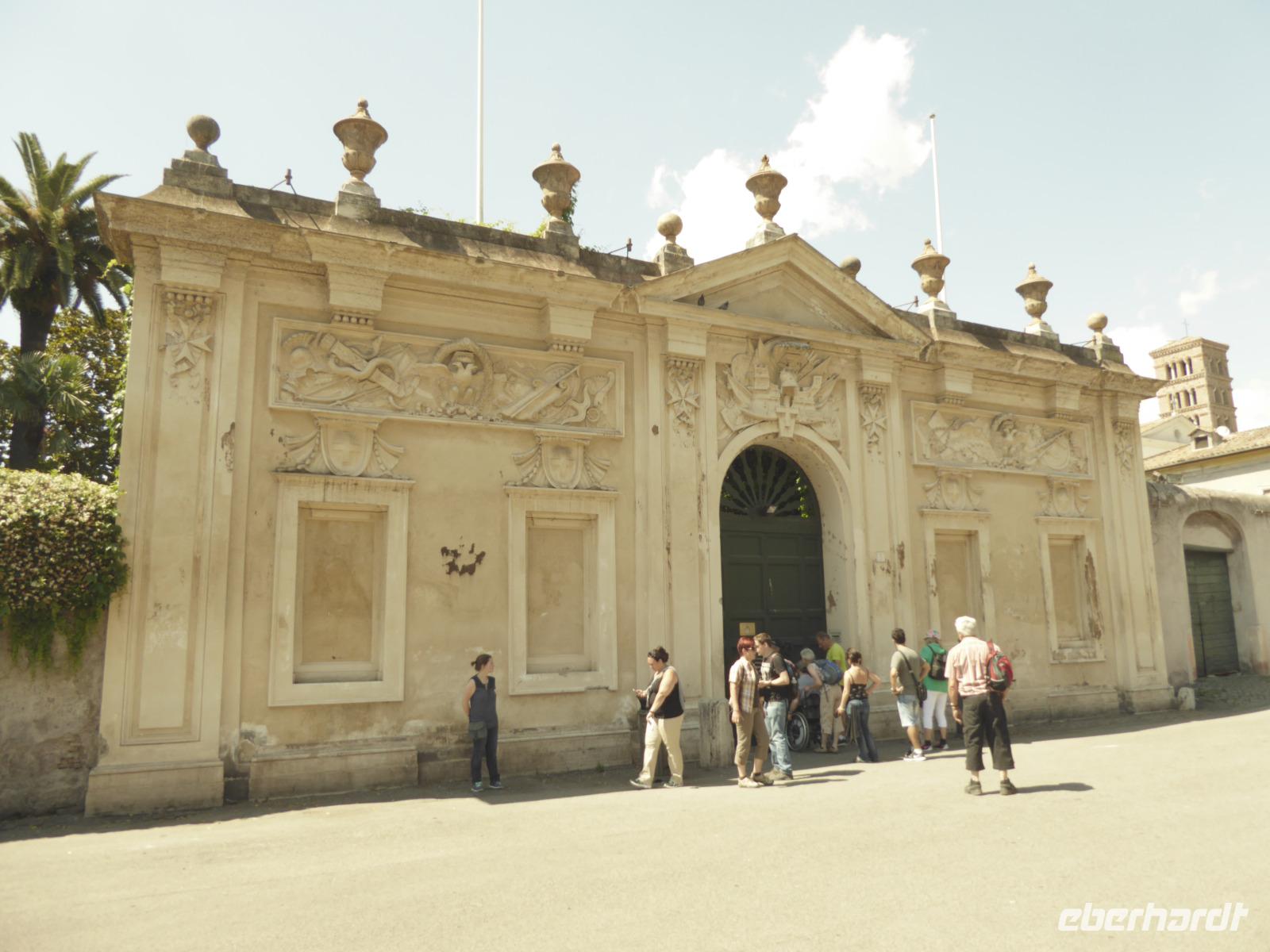 Anschließend besichtigten wir den Rosengarten und den Orangengarten auf dem Aventin und konnten sogar einen Schlüssellochblick am Tor der Villa dei Cavalieri di Malta auf den Petersdom wagen.