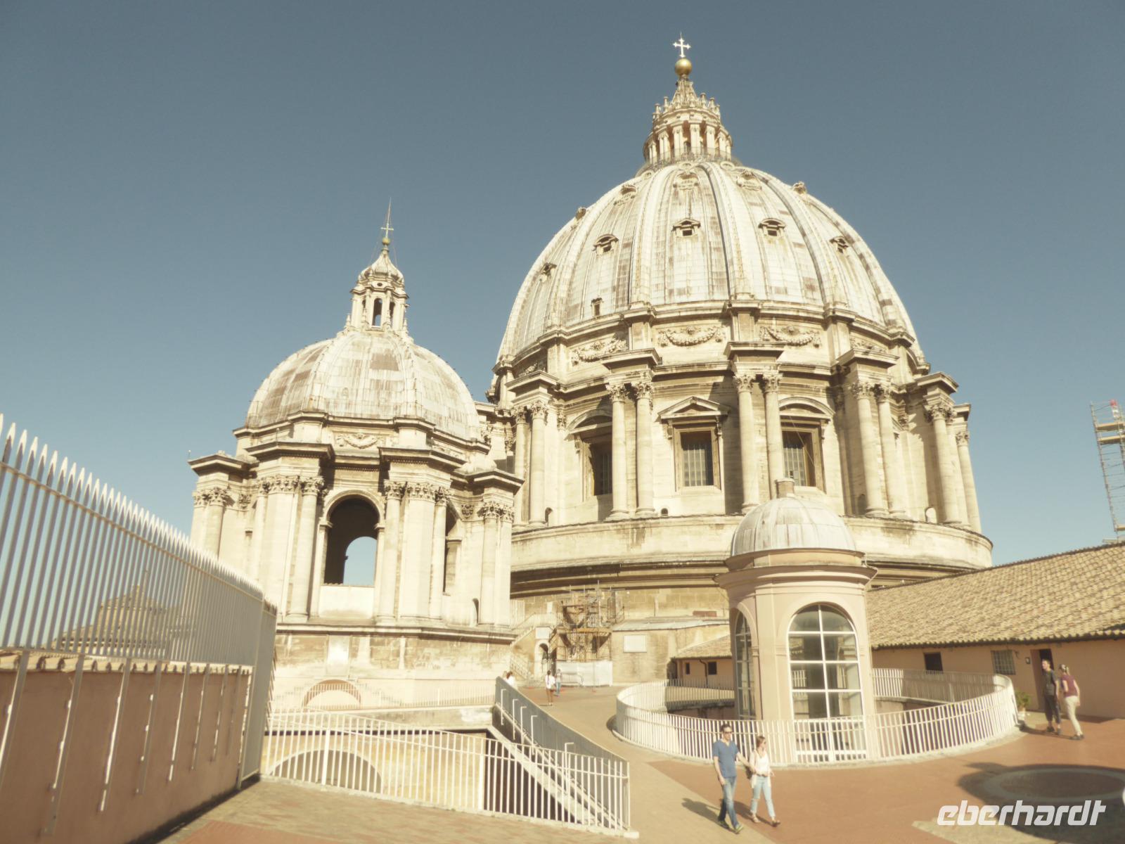 Durch den Dom, vorbei an der ergreifenden Pieta des Michelangelo, führte uns der Umgang zum Hauptaltar, zur Kuppel des Michelangelo, zur Cathedra Petri in der Apsis und endete schließlich wieder auf dem Petersplatz.