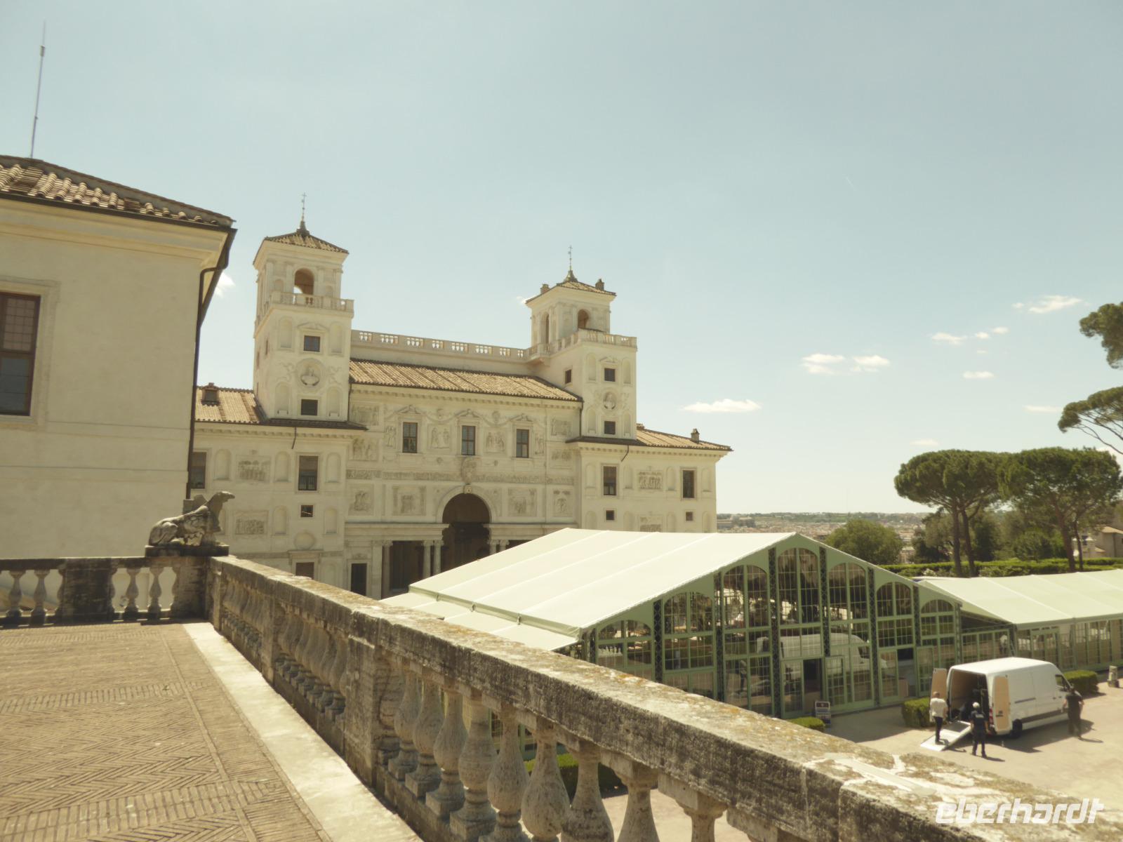 Die üppige Natur und der im Hintergrund stets überragende Petersdom bildeten ein Ensemble von Anmut und gleichzeitig Erhabenheit, dem sich niermand entziehen konnte.Nach der Mittagspause begaben wir uns zur Spanischen Treppe,und vorbei an Trinita dei Monti erreichten wir bald die Villa Medici. Sie wurde1564 von Nanni di Baccio Bigio errichtet und gehört zur französischen Akademie, die Ludwig XIV. 1666 in Rom gegründet hat. Die Villa dient heute Stipendiaten, französischen Künstlern, ihren Studienaufenthalt in inspirierender Umgebung zu absolvieren.Nach einem gemeinsamen Abendessen in der Gaststätte Antica Osteria Rugantino