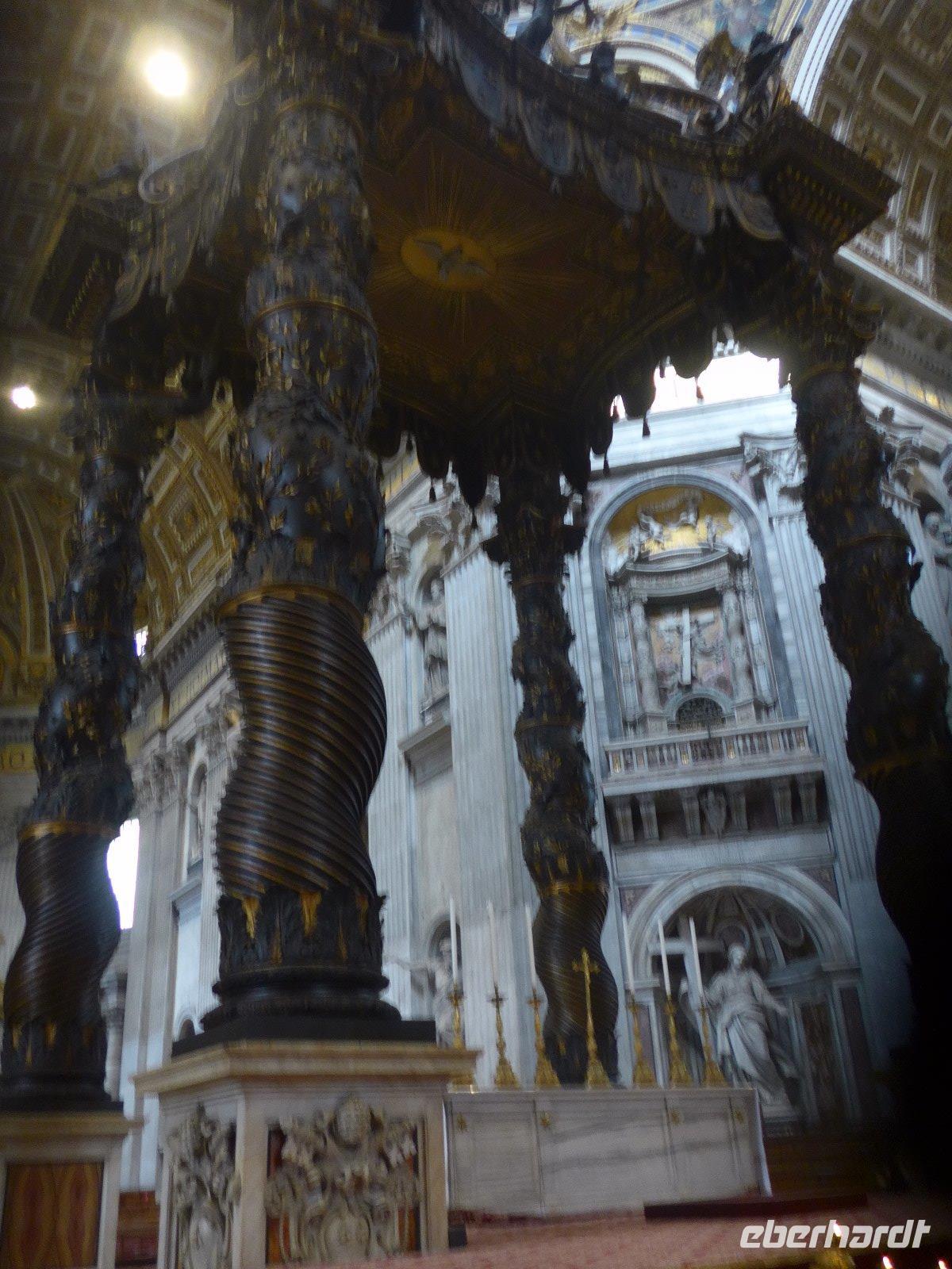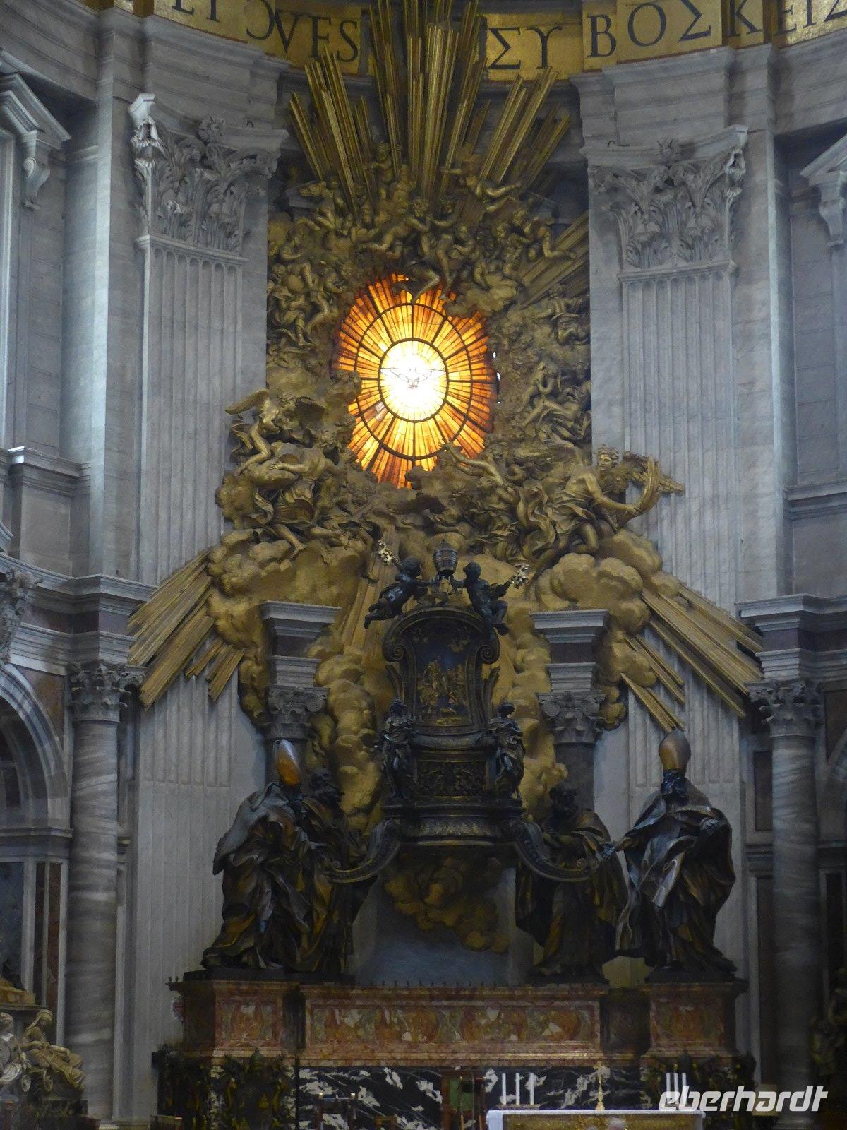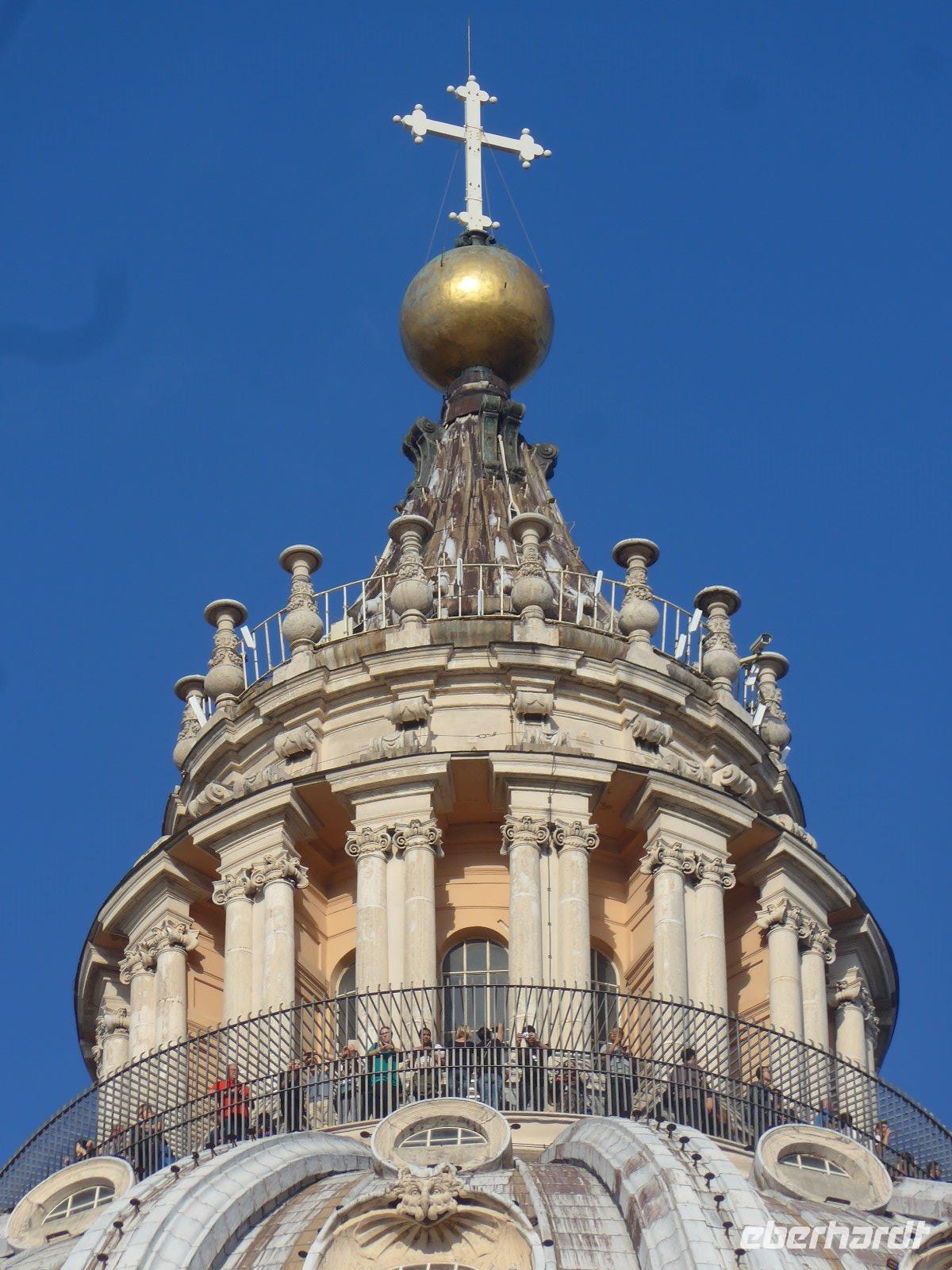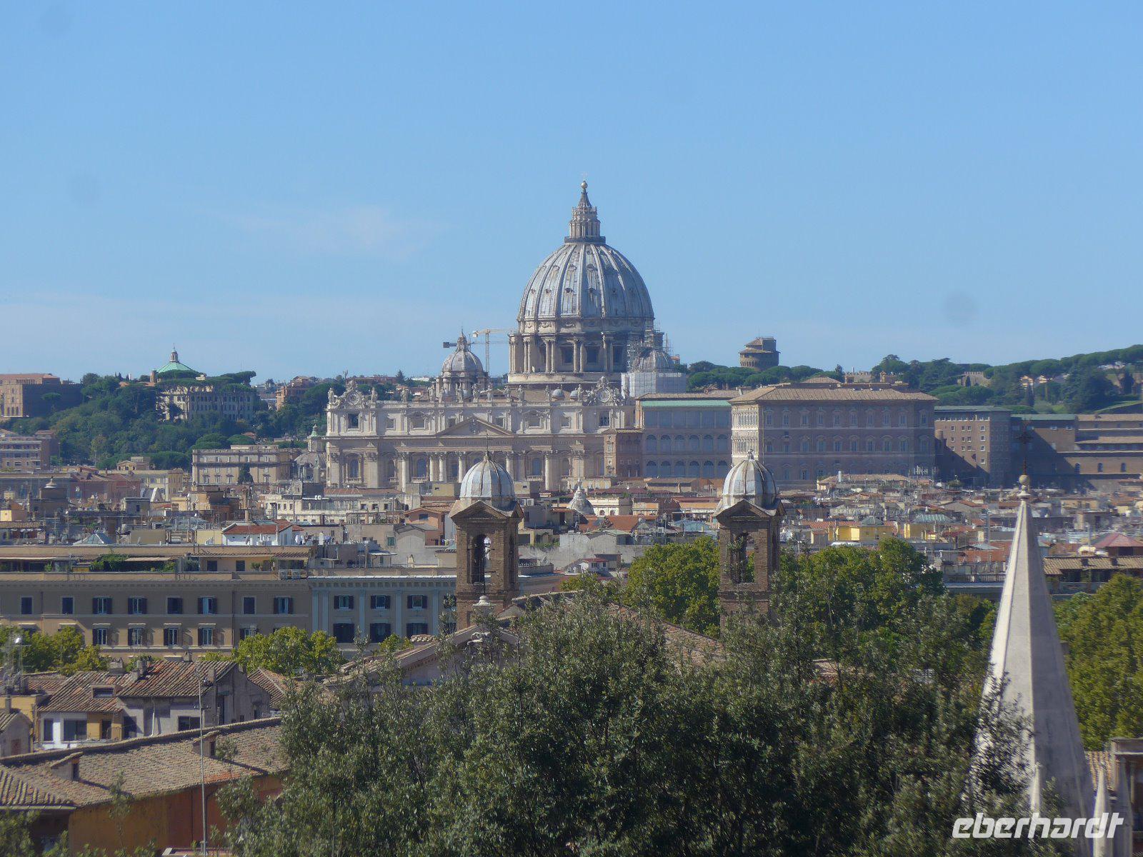 Heute führte uns der Weg in den Kirchenstaat. Es ist wohl für jeden der Höhepunkt seiner Romreise, vor der größten Kirche der Welt zu stehen. Sehr zeitig stellten wir uns für die Besichtigung der Kuppel an. Nach Liftfahrt und zahlreichen Treppen wurden wir mit einem herrlichen Blick über den Vatikanstaat u. ganz Rom entschädigt. Vorher ein gigantischer Blick aus der Kuppel in das Innere der Kathedrale. Menschen wirken aus dieser Perspektive wie Ameisen. Dann hinunter und dann standen wir selbst in der Basilika. Einst am Grab von Apostel Petrus ließ Kaiser Konstantin eine erste Basilika errichten. Der heutige Bau entstand nach einer wechselvollen Baugeschichte. Auch wir waren von der symbolträchtigen Basilika beeindruckt. Ob Pieta, Kuppel oder Baldachin. Bei solchen Kunstwerken erscheint der Mensch verschwindend klein. Zu dieser Zeit konnte man den Blick auf die wichtigsten Dinge im Petersdom problemlos erhaschen. Bei so viel Glanz verblassen oft die dazugehörigen Erläuterungen. Und als wir vor dem Baldachin standen und zur Kuppel hoch schauen wir das Können der damaligen Baumeister so richtig deutlich. Ob Bramante, Rafael, Bernini oder Michelangelo - alle hatten sich hier unsterblich gemacht. Am Petersplatz mit seinen berühmten Kolonnaden von Bernini angekommen legten wir die wohlverdiente Mittagspause ein.