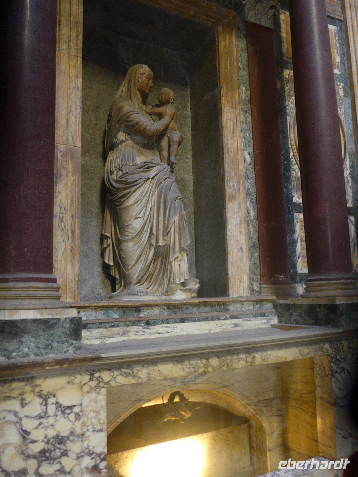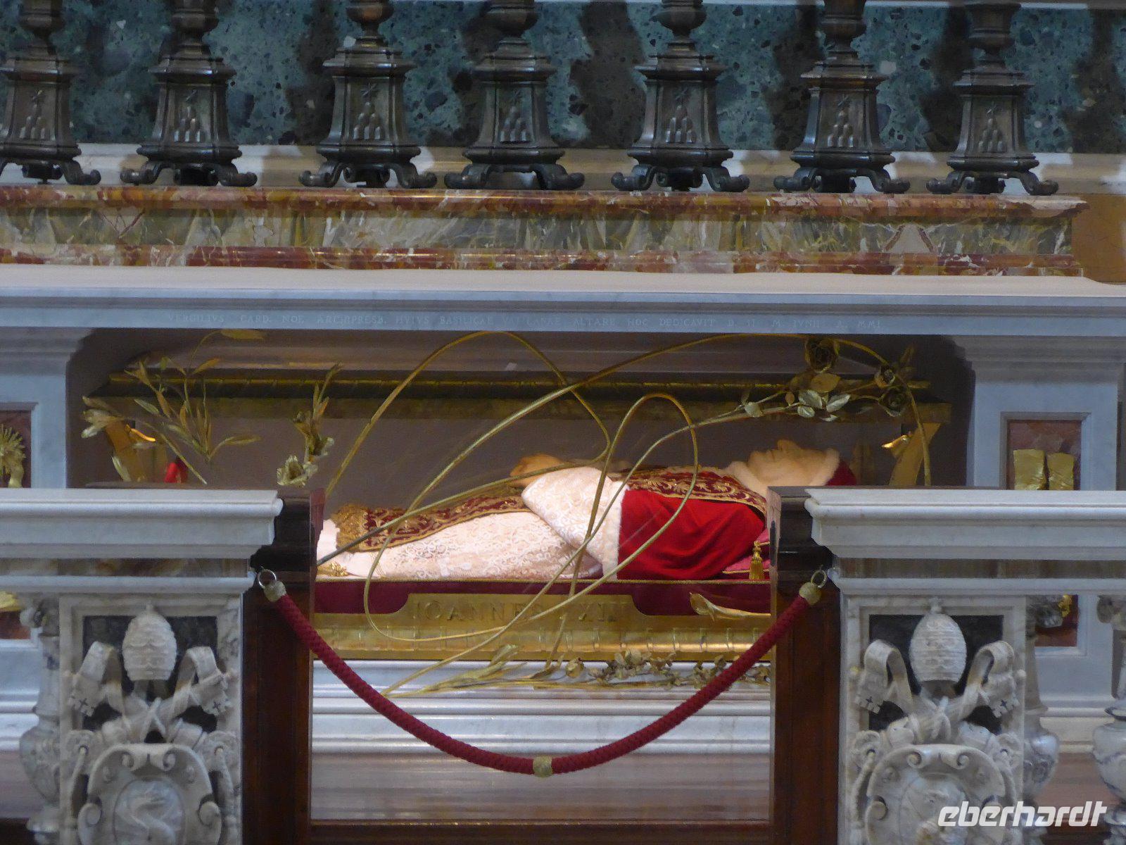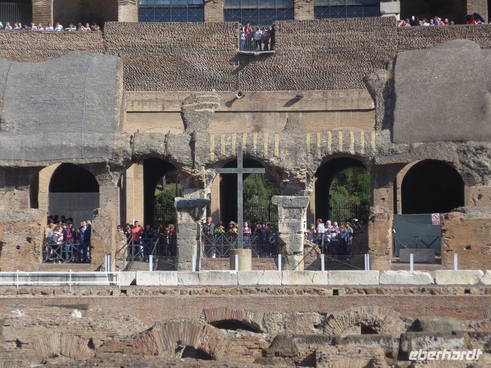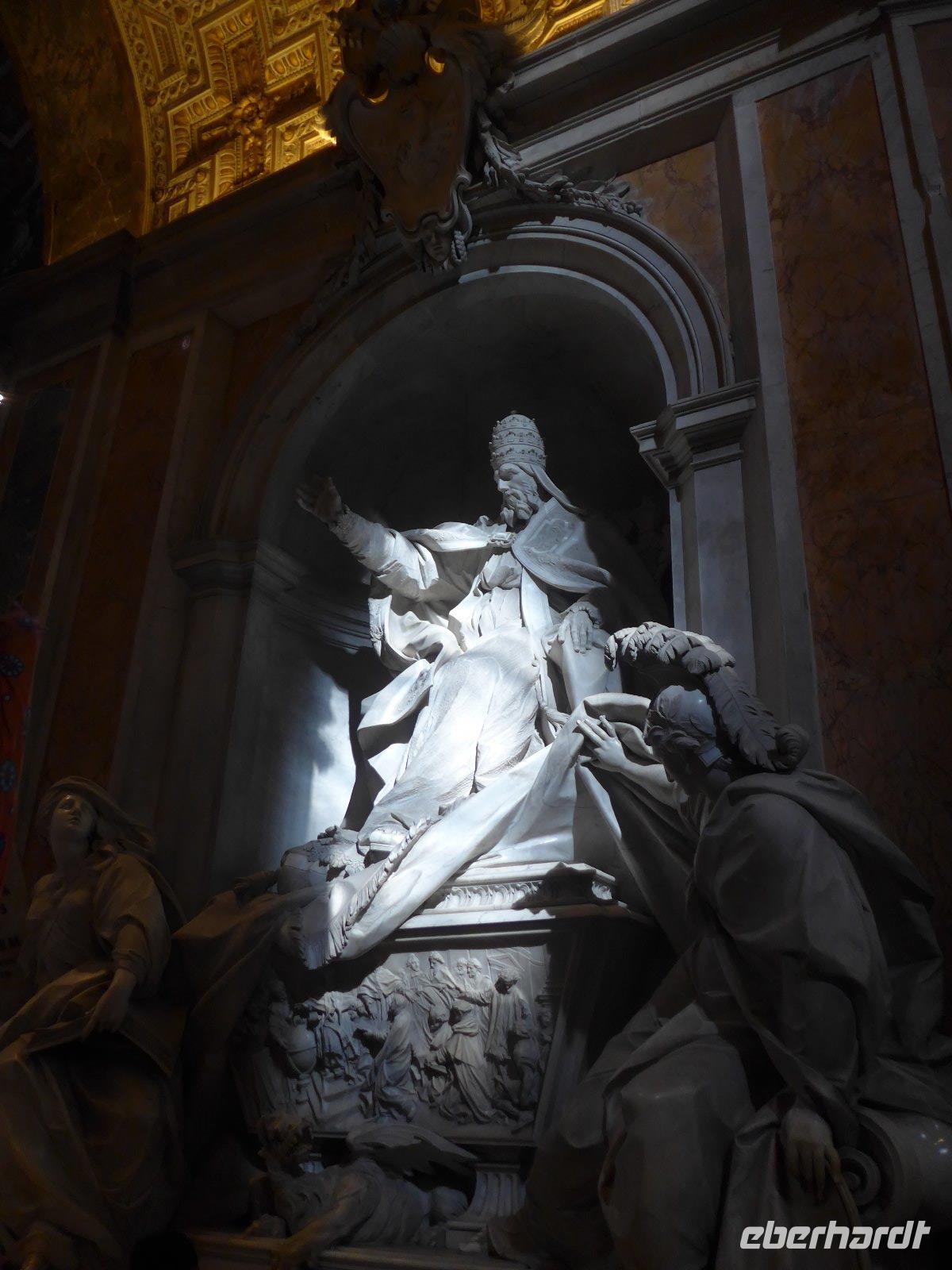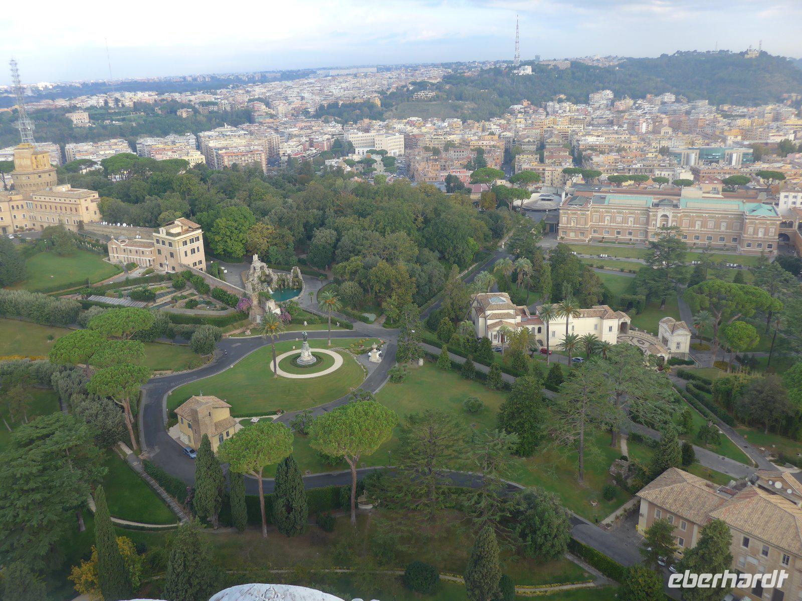 Heute führte uns der Weg in den Kirchenstaat. Es ist wohl für jeden der Höhepunkt seiner Romreise, vor der größten Kirche der Welt zu stehen. Sehr zeitig stellten wir uns für die Besichtigung der Kuppel an. Nach Liftfahrt und zahlreichen Treppen wurden wir mit einem herrlichen Blick über den Vatikanstaat u. ganz Rom entschädigt. Vorher ein gigantischer Blick aus der Kuppel in das Innere der Kathedrale. Menschen wirken aus dieser Perspektive wie Ameisen. Dann hinunter und dann standen wir selbst in der Basilika. Einst am Grab von Apostel Petrus ließ Kaiser Konstantin eine erste Basilika errichten. Der heutige Bau entstand nach einer wechselvollen Baugeschichte. Auch wir waren von der symbolträchtigen Basilika beeindruckt. Ob Pieta, Kuppel oder Baldachin. Bei solchen Kunstwerken erscheint der Mensch verschwindend klein. Zu dieser Zeit konnte man den Blick auf die wichtigsten Dinge im Petersdom problemlos erhaschen. Bei so viel Glanz verblassen oft die dazugehörigen Erläuterungen. Und als wir vor dem Baldachin standen und zur Kuppel hoch schauen wir das Können der damaligen Baumeister so richtig deutlich. Ob Bramante, Rafael, Bernini oder Michelangelo - alle hatten sich hier unsterblich gemacht. Am Petersplatz mit seinen berühmten Kolonnaden von Bernini angekommen legten wir die wohlverdiente Mittagspause ein.